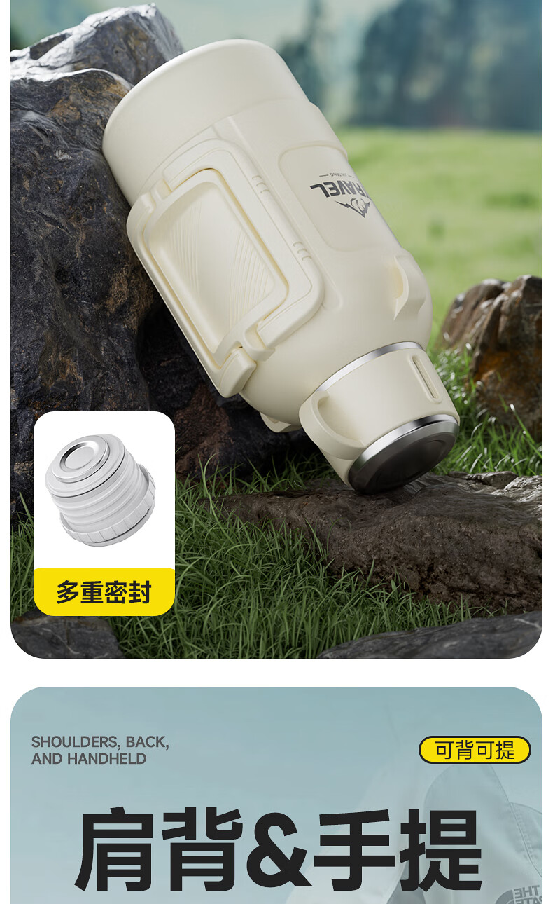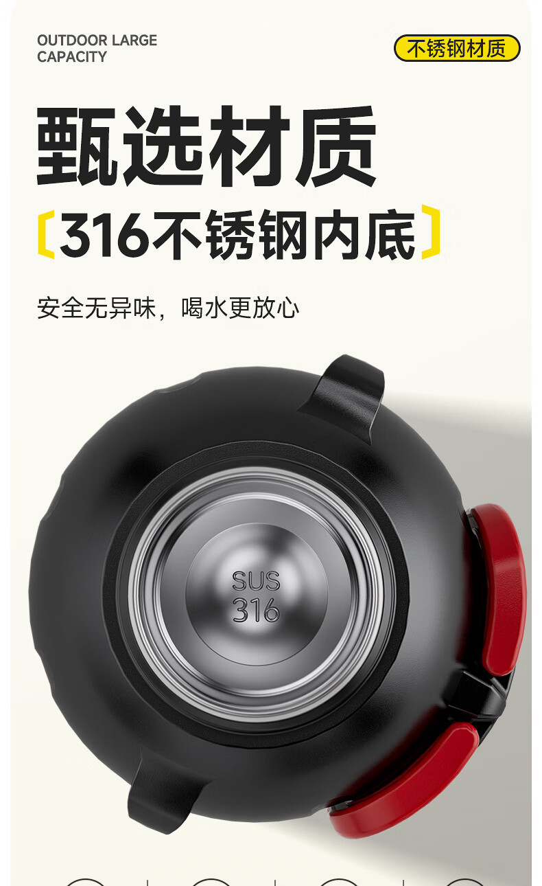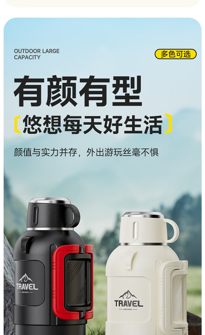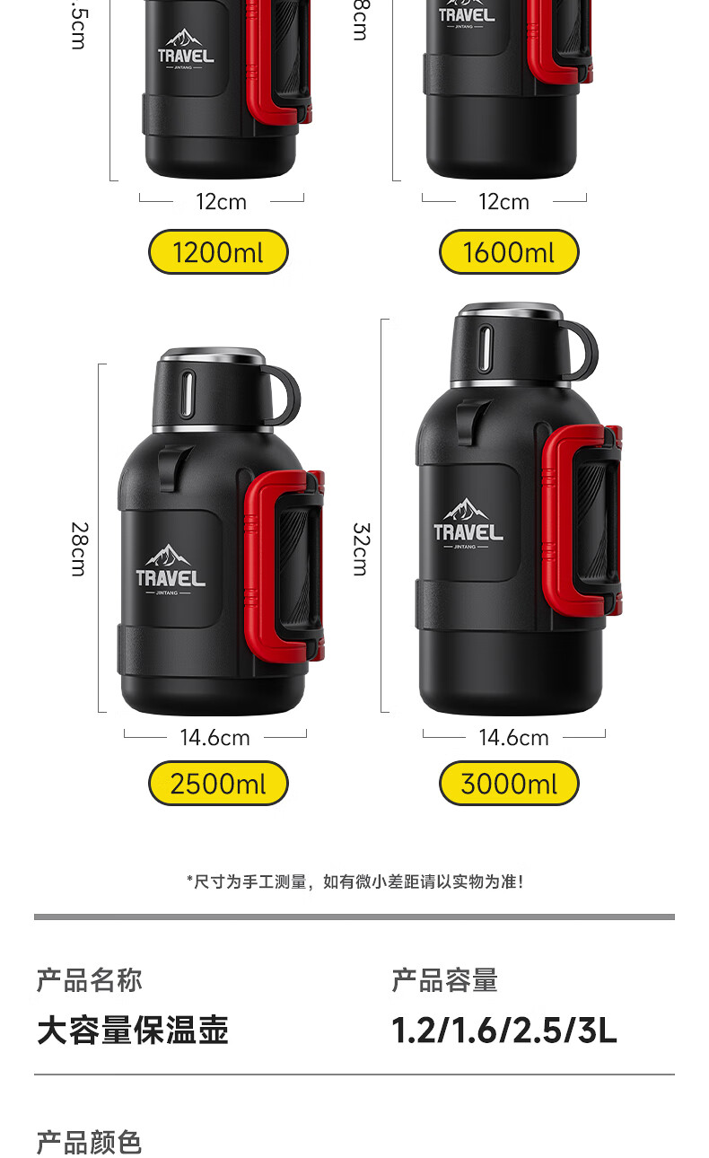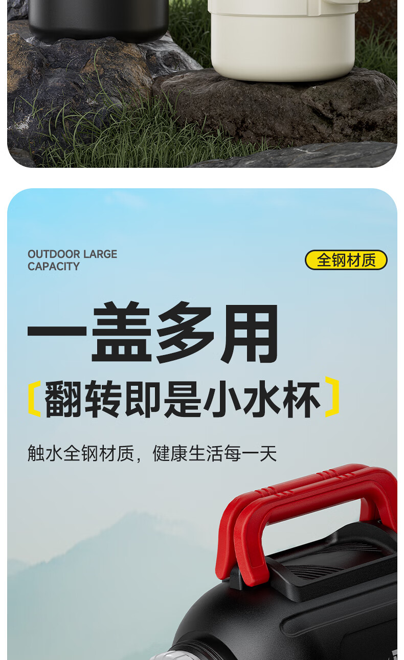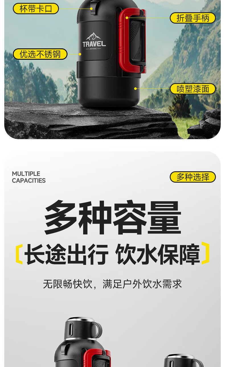 316 stainless steel thermos kettle large capacity thermos cup outdoor camping thermos kettle folding handle one cover dual use 2500ml black + folding handle + one cover dual use