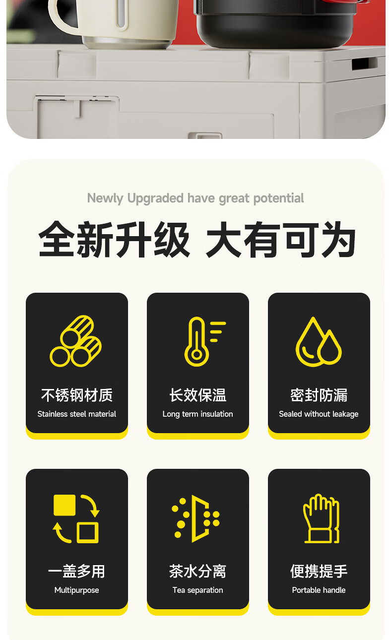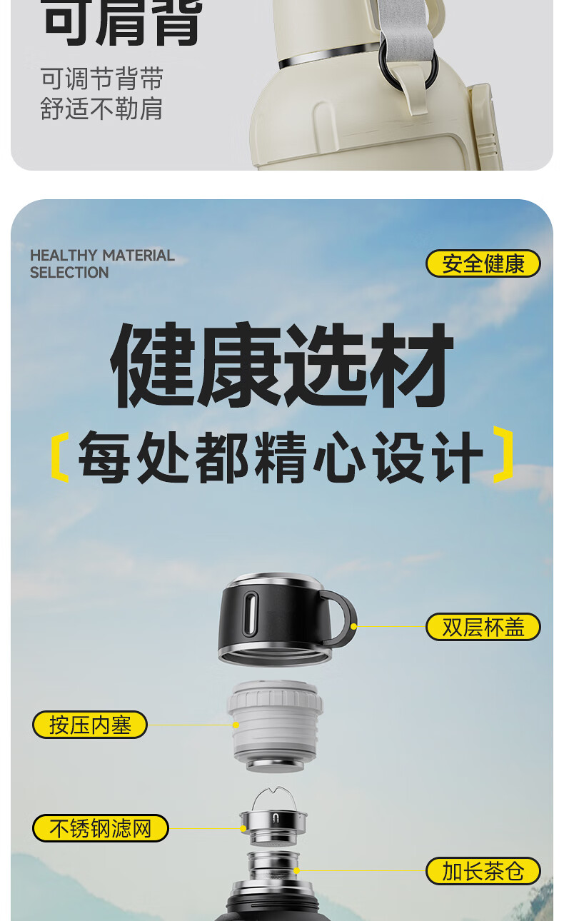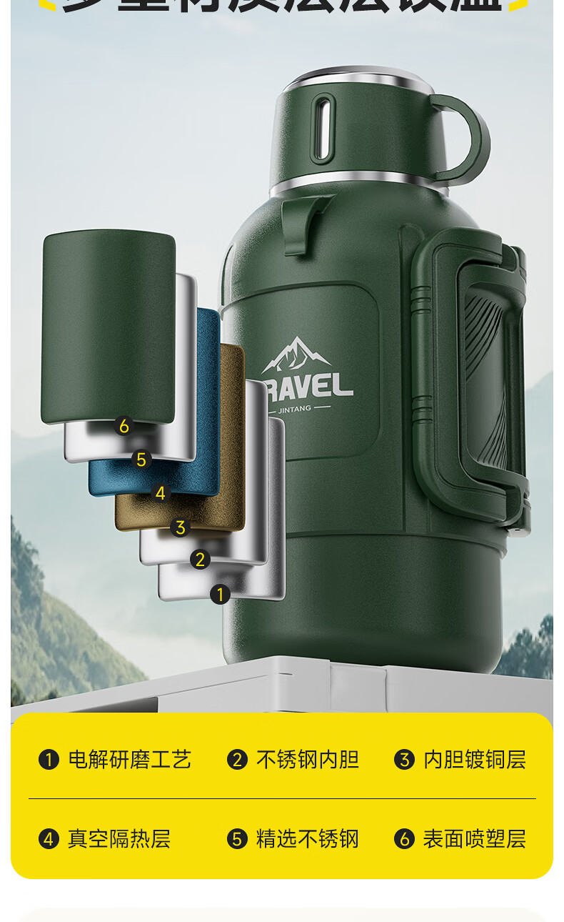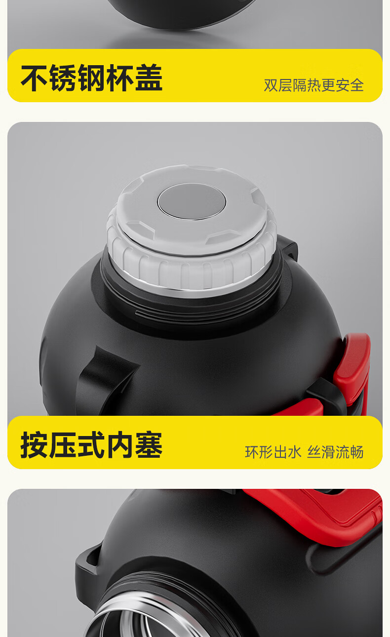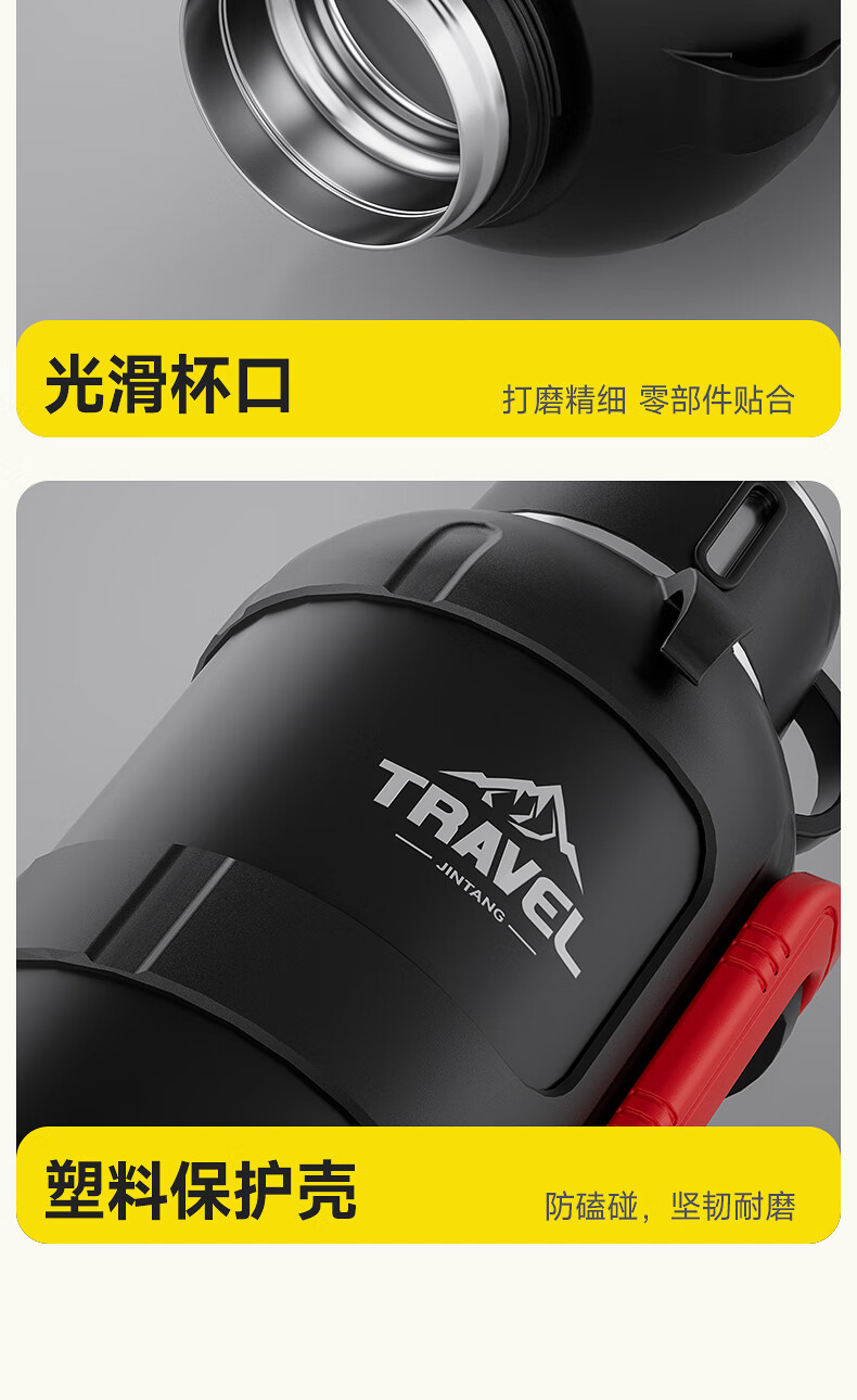 316 stainless steel thermos kettle large capacity thermos cup outdoor camping thermos kettle folding handle one cover dual use 2500ml black + folding handle + one cover dual use