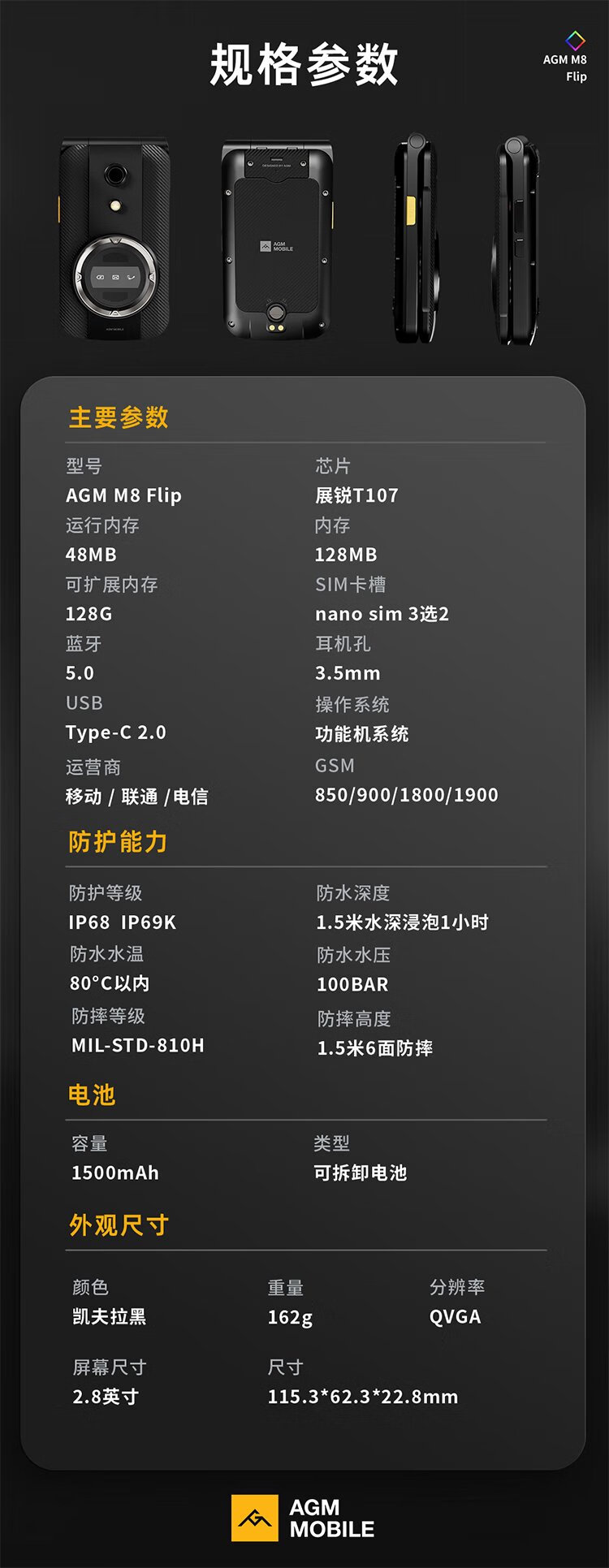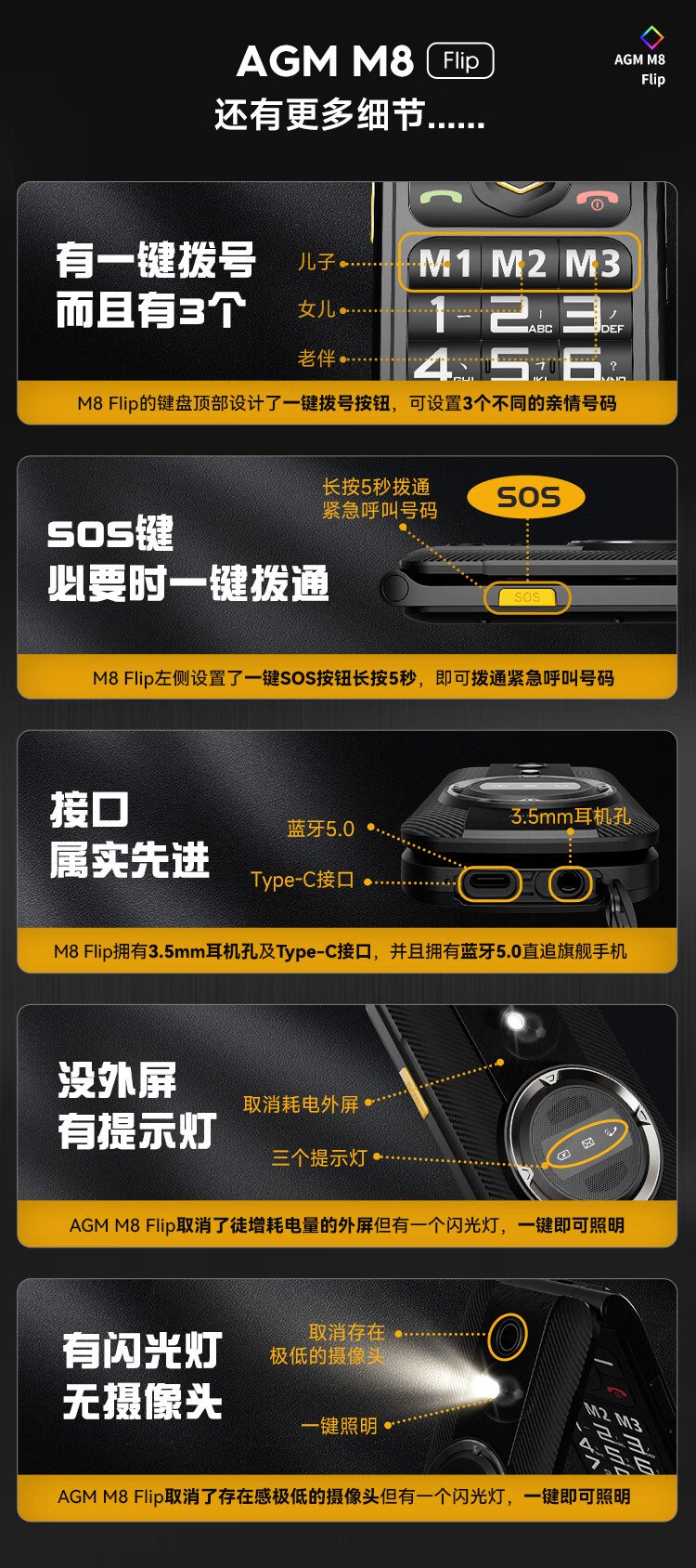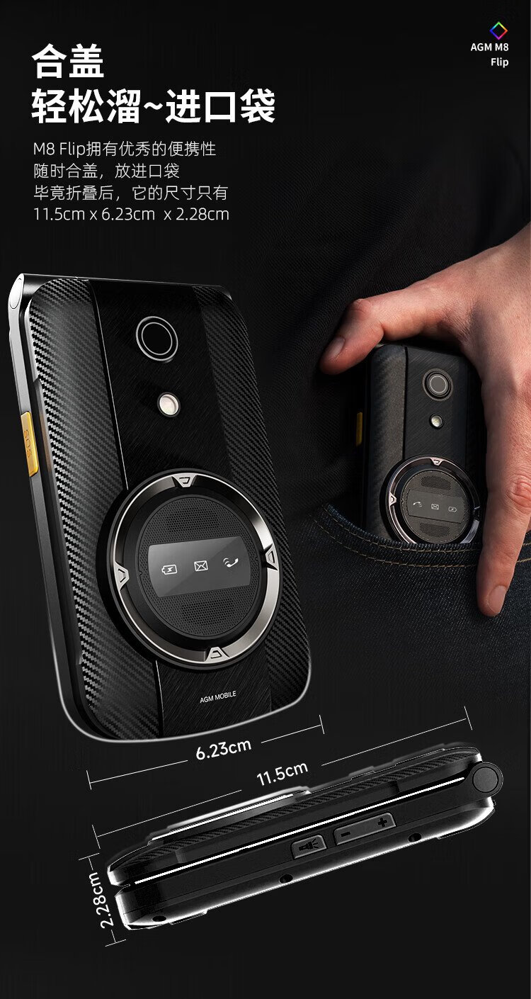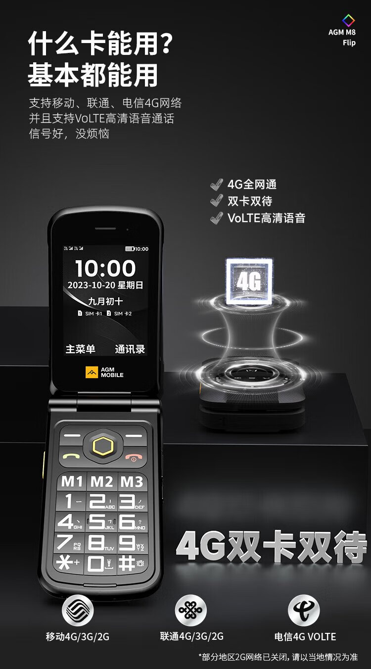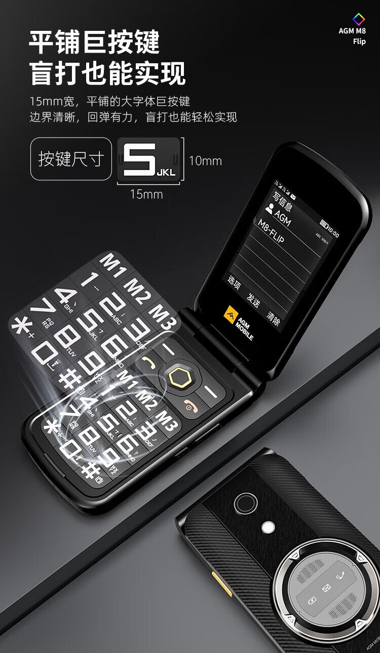 AGMM8 FLIP three-proof 4G full network clamshell phone for the elderly with key functions M8+ cradle and charger set