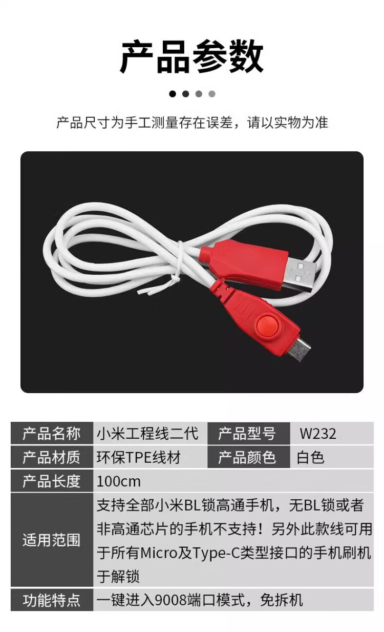 Weizhou Qualcomm 9008 engineering line flashing line is suitable for Xiaomi to force open 9008 port mobile phone deep flashing data cable is suitable for Xiaomi engineering line to force open 9008 port W232 Qualcomm engineering line second generation type-c integrated line