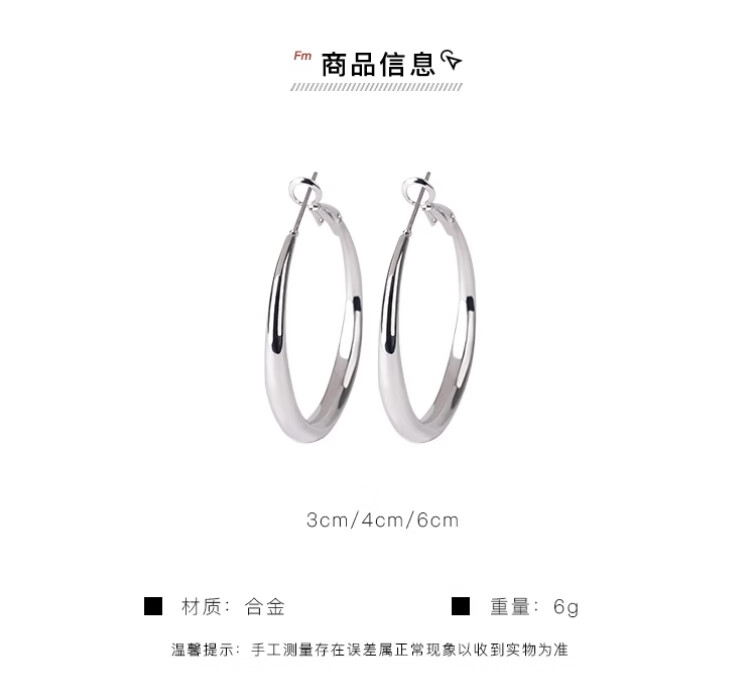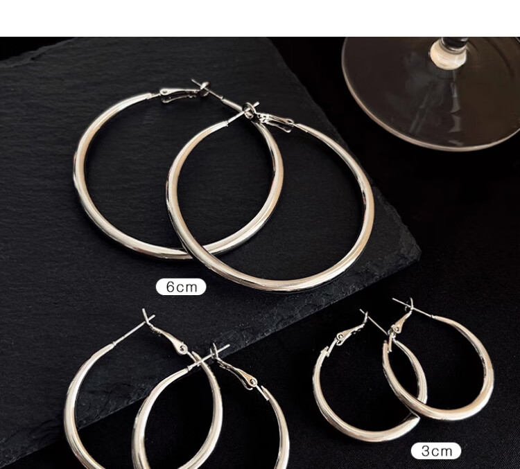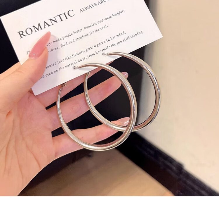 Xinshe 2025 new hot style silver earrings for women plain hoop earrings for women high-end light luxury niche temperament large hoop earrings medium hoop earrings 4CM main picture style