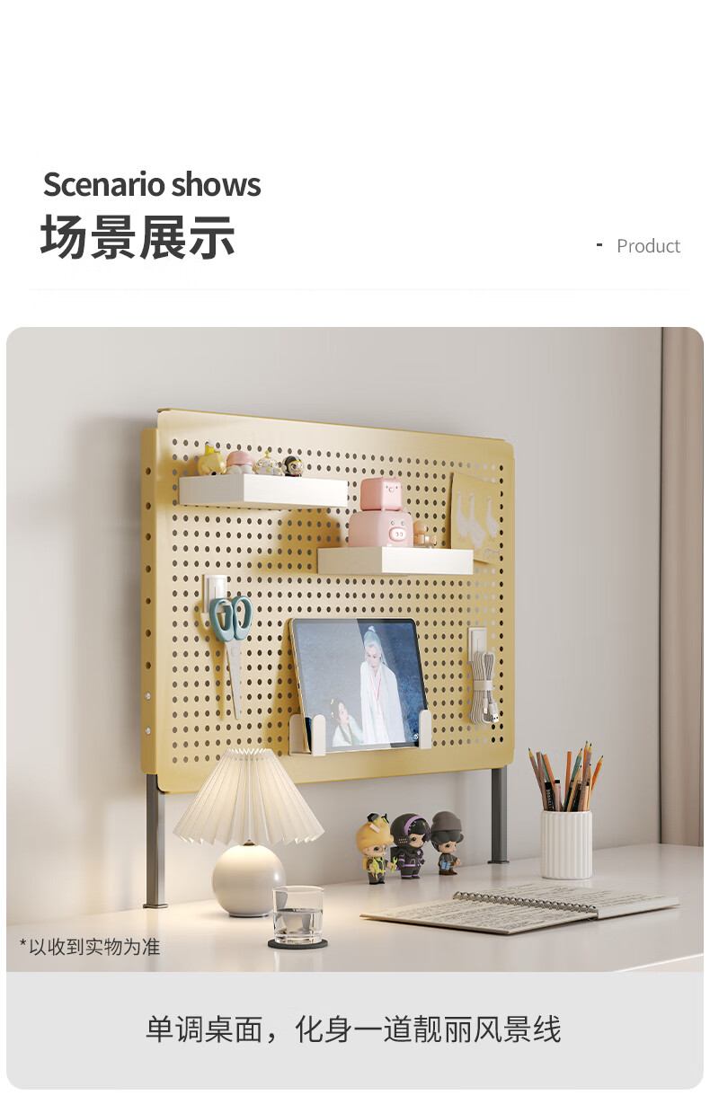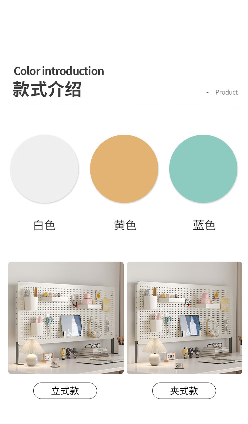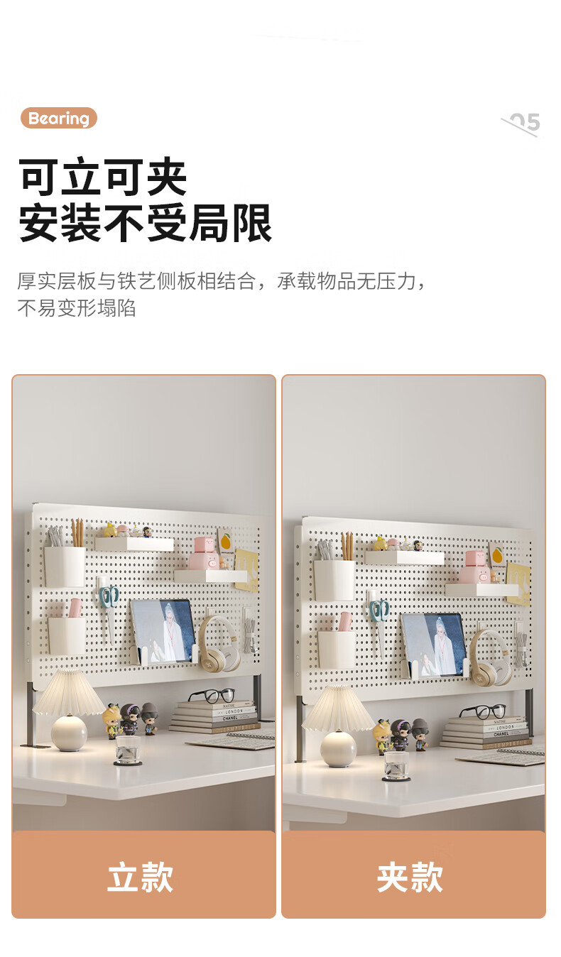 Desktop vertical perforated board storage rack home desk storage student dormitory study table storage rack display rack accessories - white desktop clip-on length 80 height 40