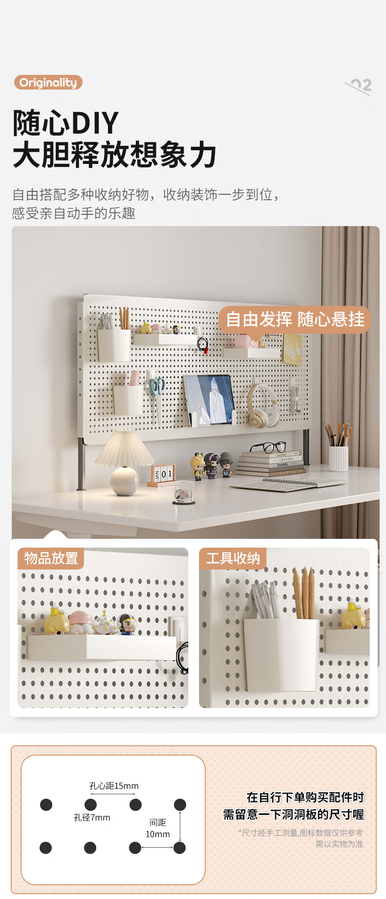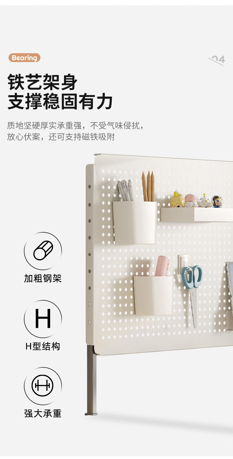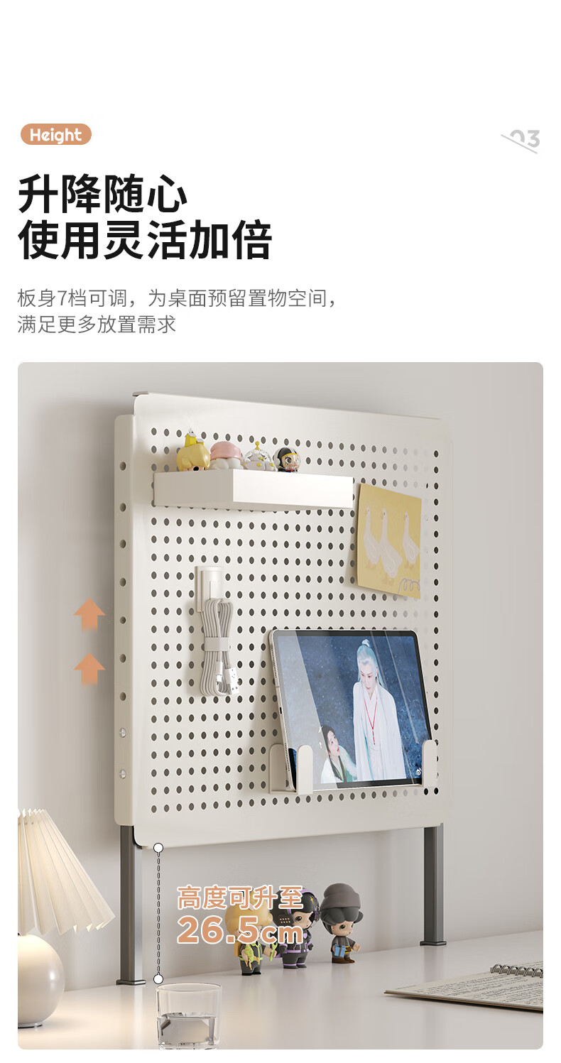 Desktop vertical perforated board storage rack home desk storage student dormitory study table storage rack display rack accessories - white desktop clip-on length 80 height 40