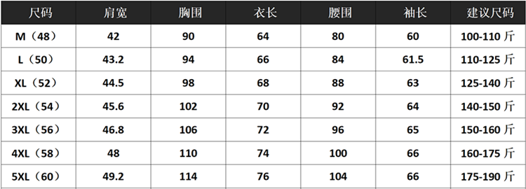 China (cm) 160-165/84-86 165-170 / 88-90 167-172 / 92-96 168-173 / 98-102 170-176 / 106-110
