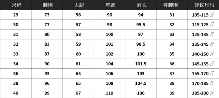 USA(inch) 28-30 30-32 32-34 34-38 38-42