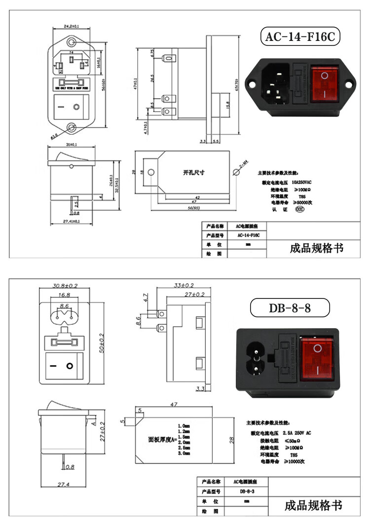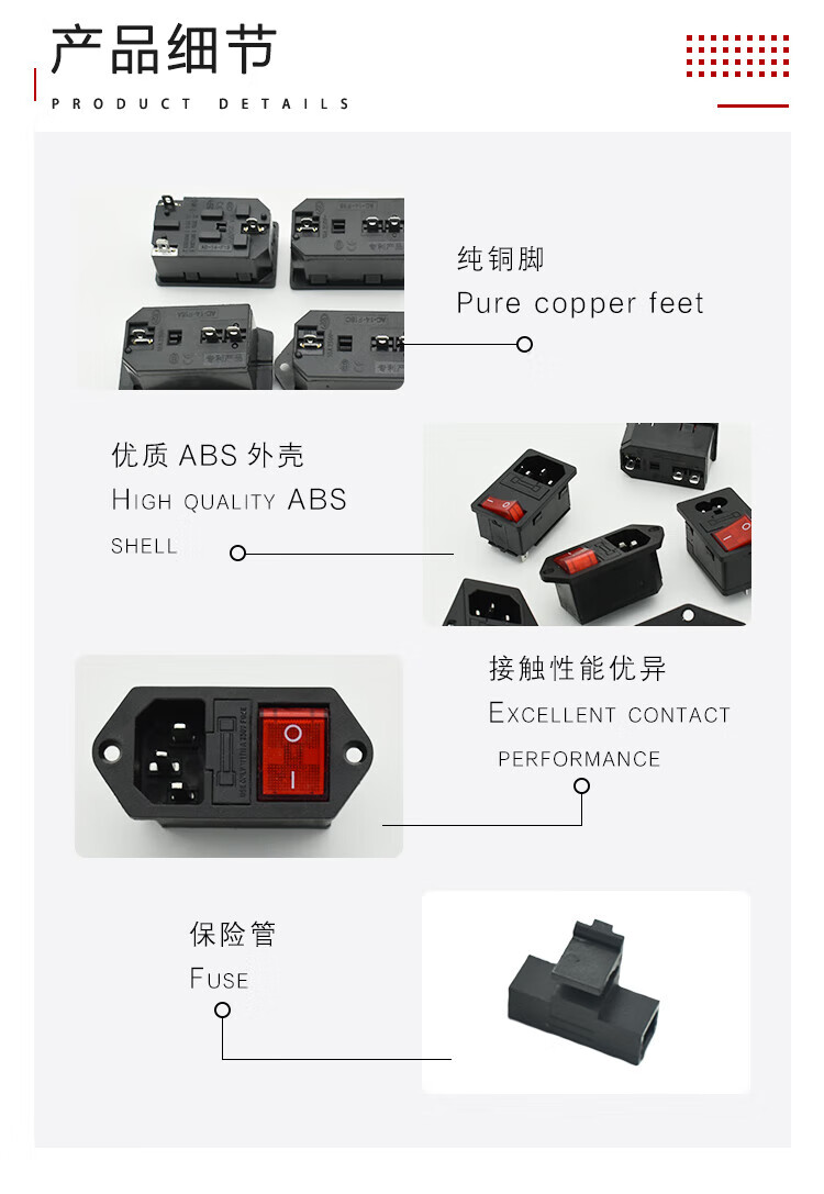 AC-01A wiring integrated power base + KCD3KCD4 switch with fuse three-in-one AC-01 pitch 2.0 + KCD3 switch