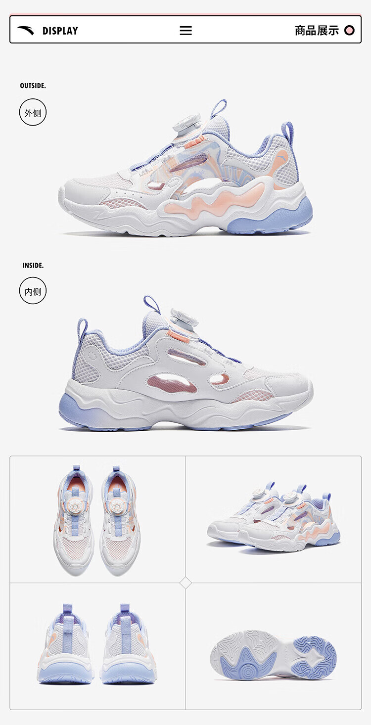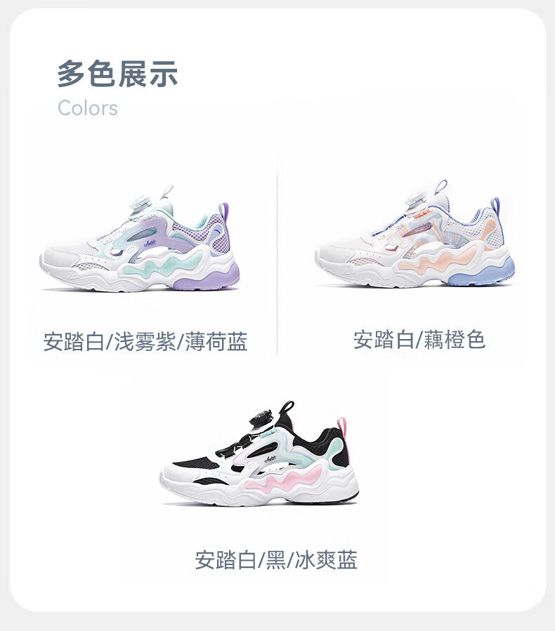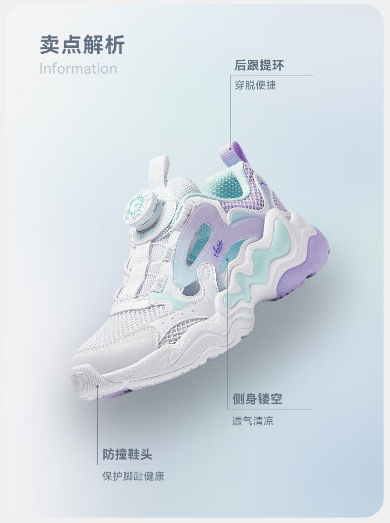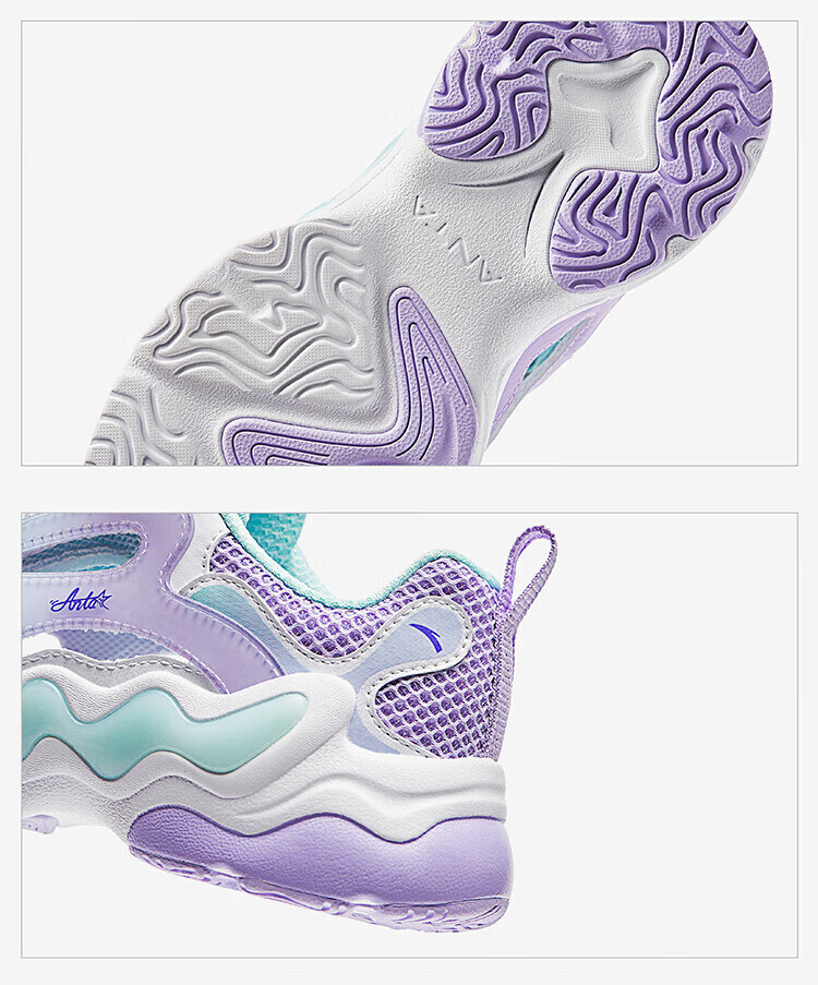 ANTA Children's Sandals, Girls' Shoes, 2025 Summer New Knob Buckle Breathable Frame Shoes, Baotou Beach Shoes Anta White/Light Mist Purple/Mint Blue-1 37