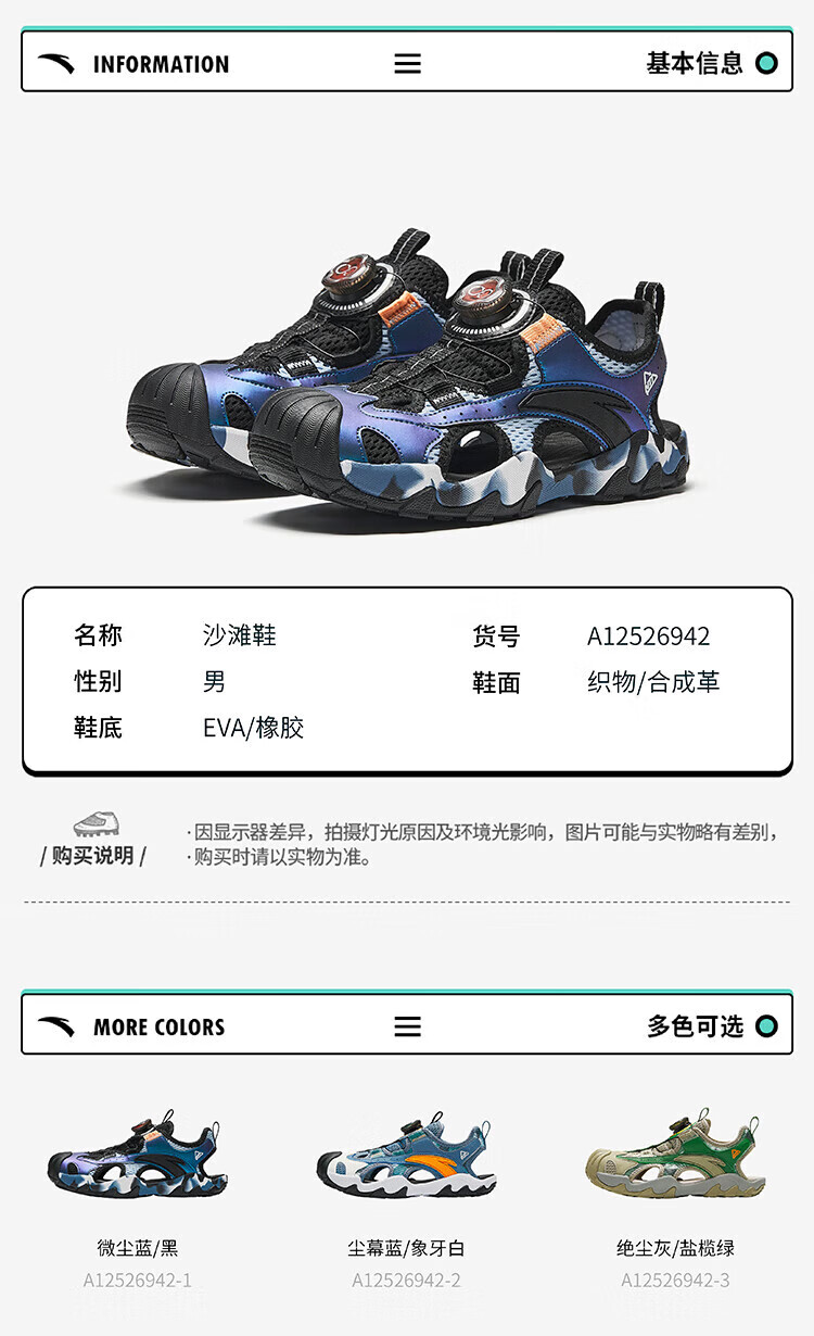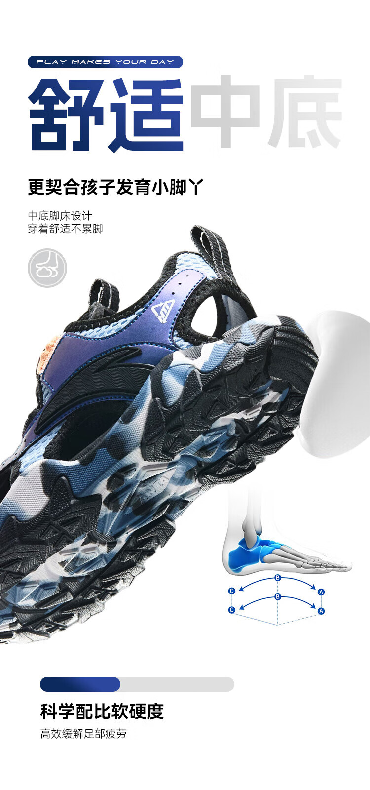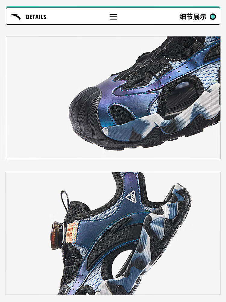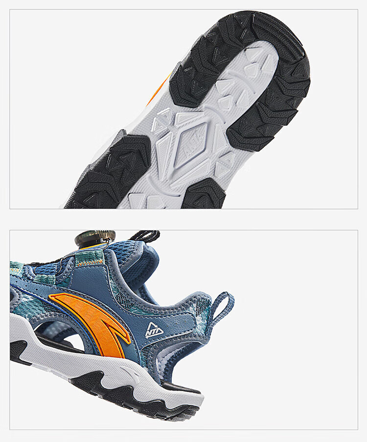 ANTA Children's Sandals Men's Big Children's Shoes 2025 Summer New Product Knob Buckle Outdoor Baotou Sports Shoes Anti-Slip Beach Shoes Dust Blue/Black-1 37