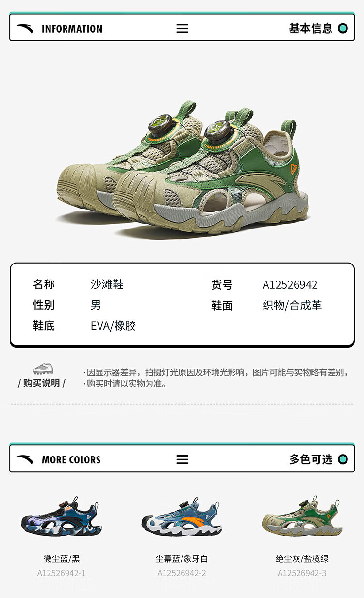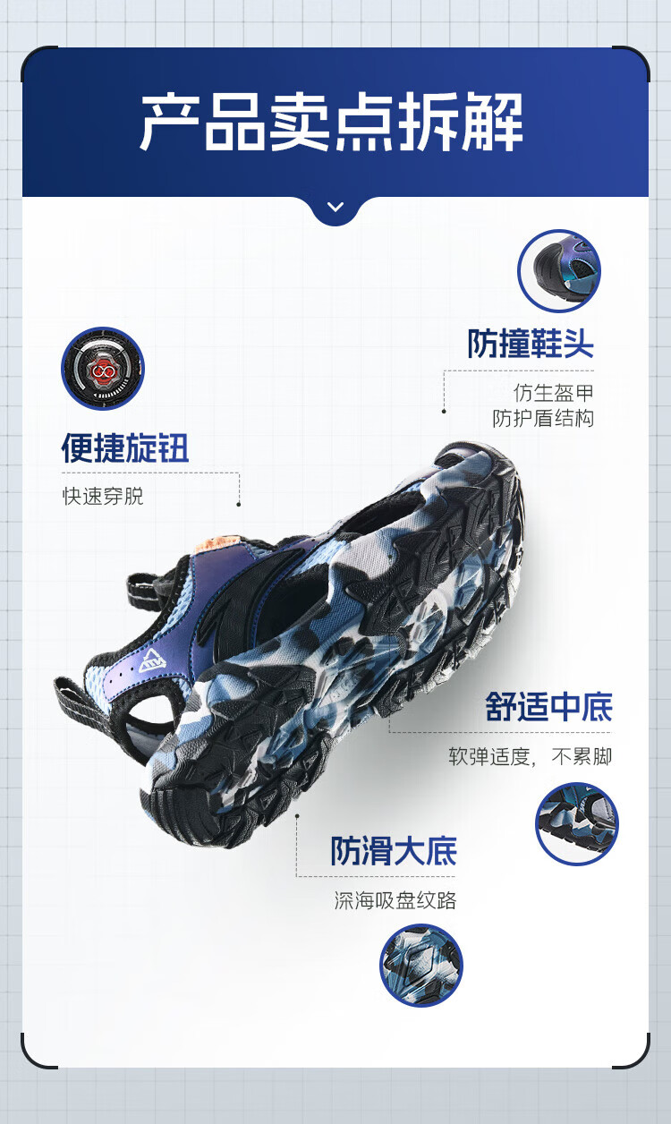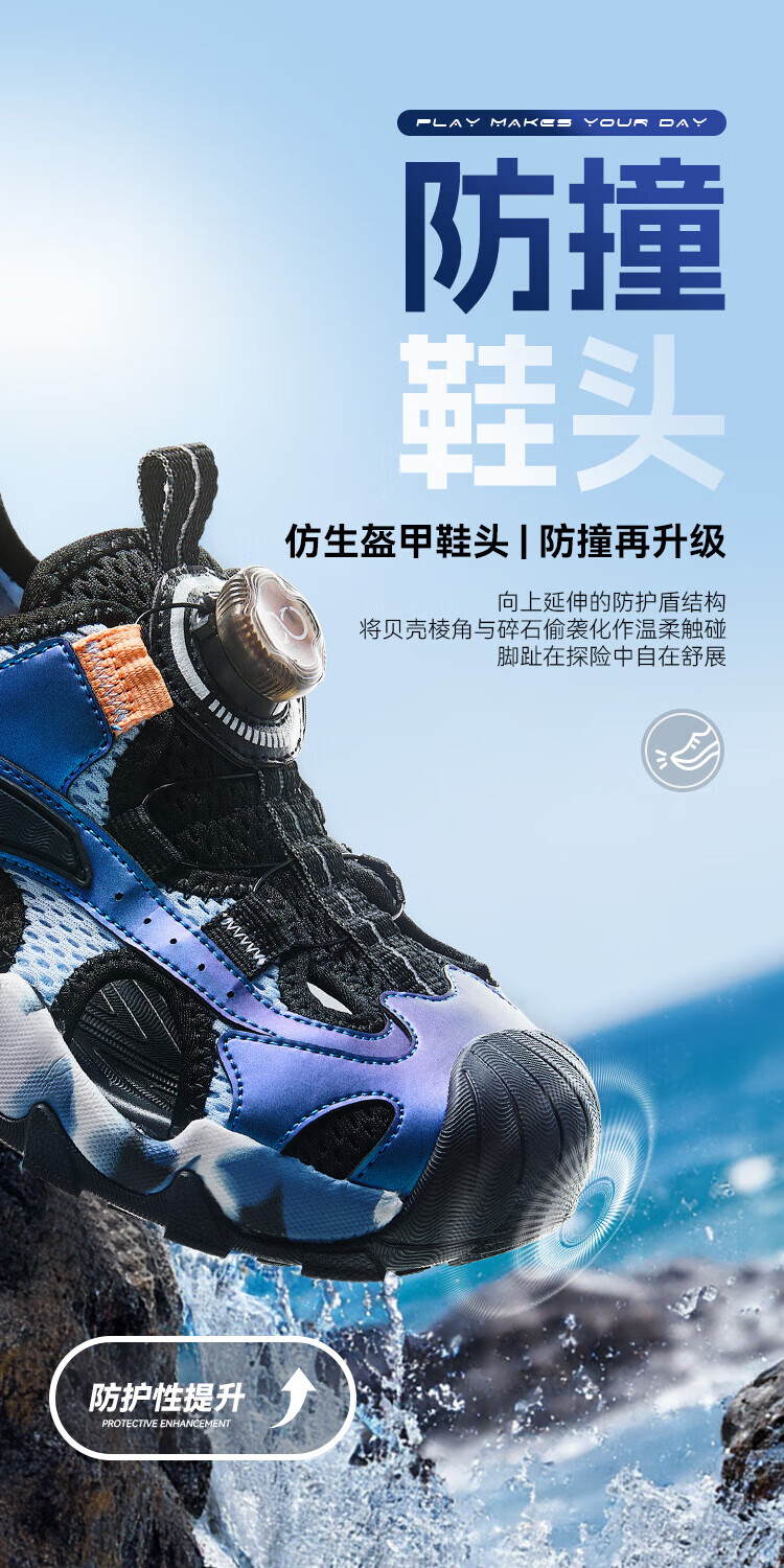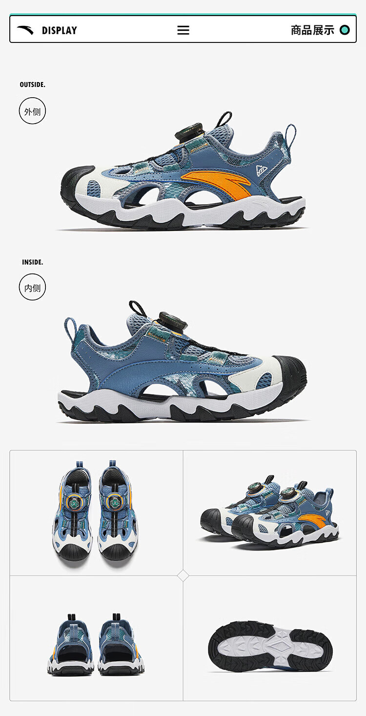 ANTA Children's Sandals Men's Big Children's Shoes 2025 Summer New Product Knob Buckle Outdoor Baotou Sports Shoes Anti-Slip Beach Shoes Dust Blue/Black-1 37