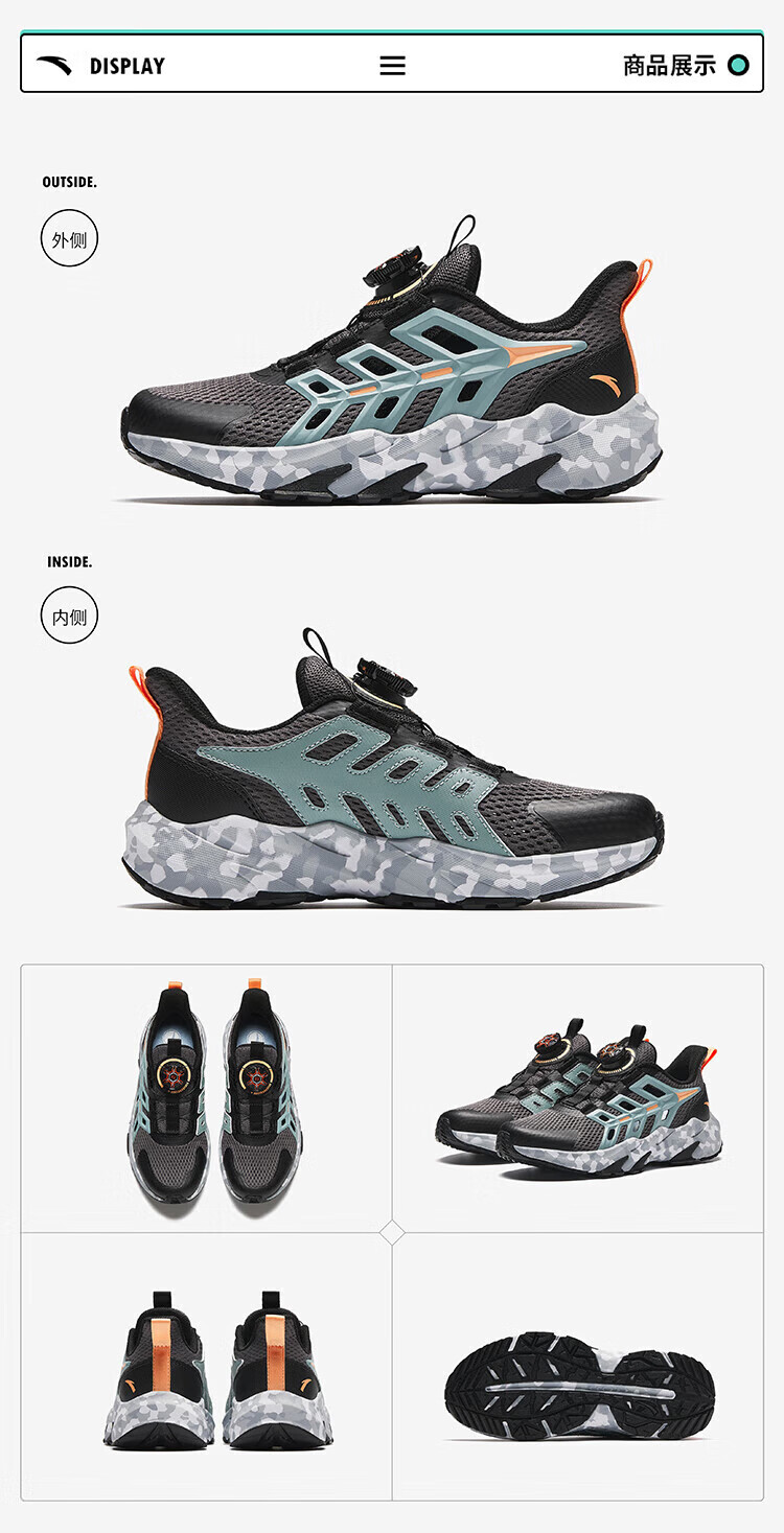 ANTA Children's Sandals Universal Big Children's Shoes 2025 Summer New Product Knob Buckle Mesh Breathable Small Warship Frame Shoes Beach Slate Gray/Black-3 34