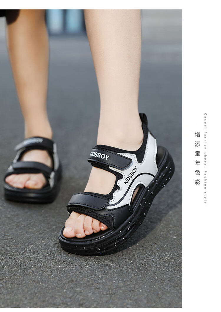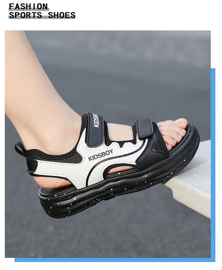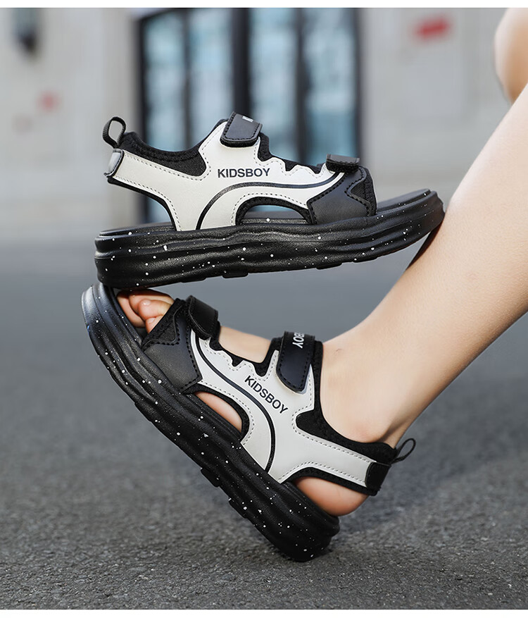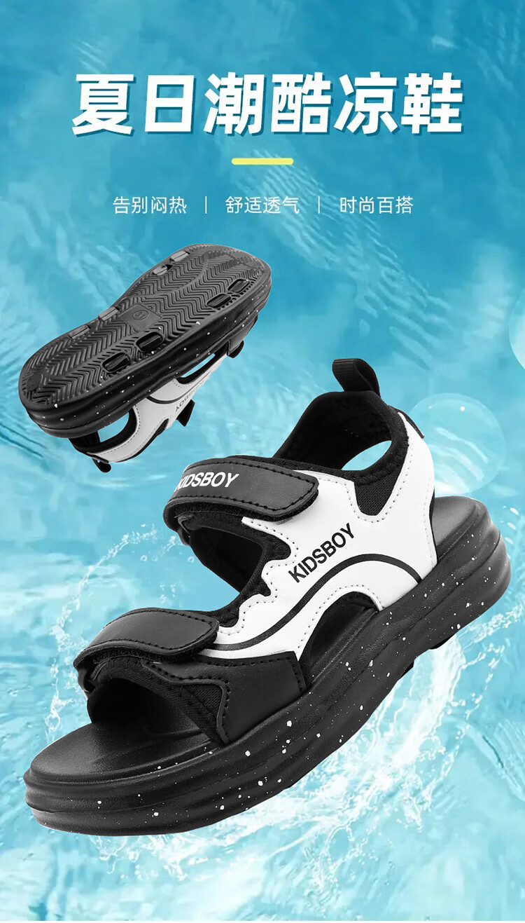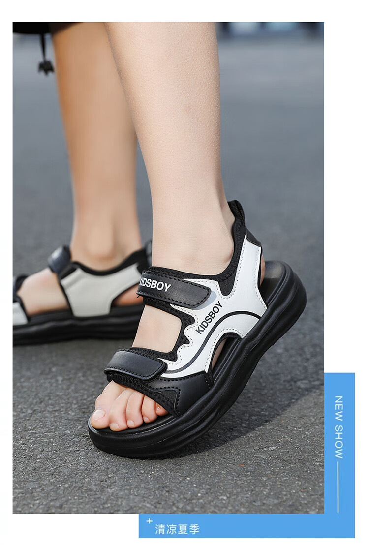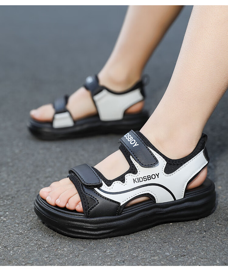 Boys' Sandals 2025 Summer New Hollow Children's Beach Shoes Soft Sole Non-Slip Handsome Middle and Large Children's Open-Toe Sandals HBL2505/Black and White Upgraded Model 31 Size Standard Size