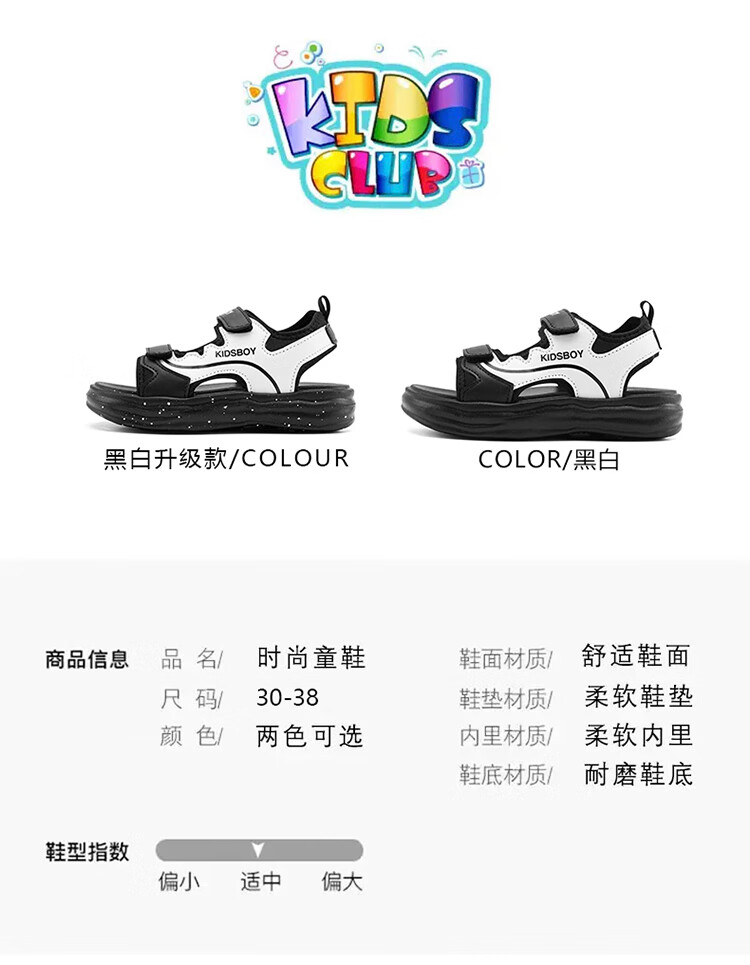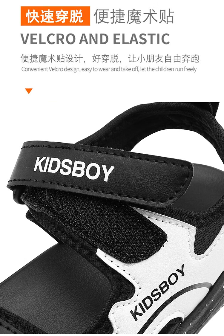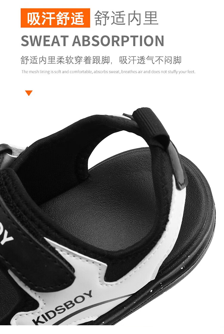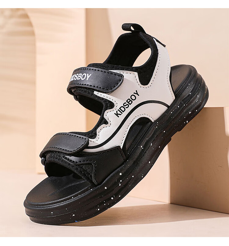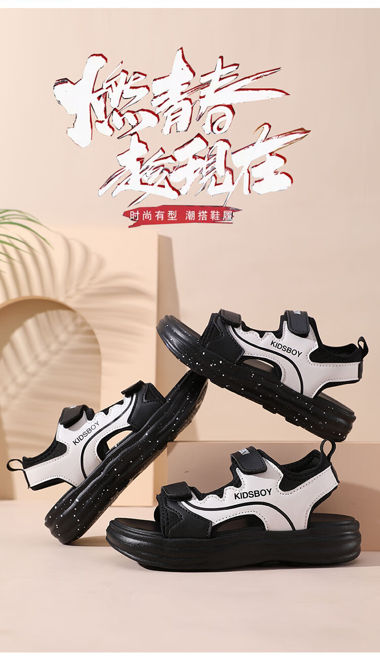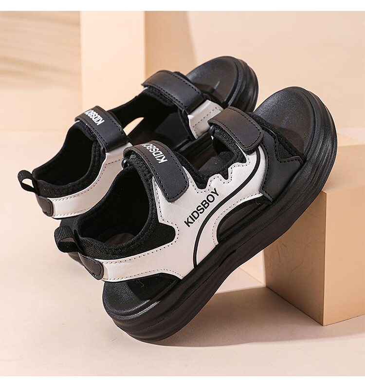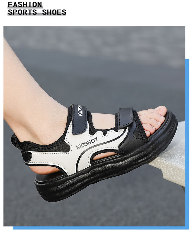 Boys' Sandals 2025 Summer New Hollow Children's Beach Shoes Soft Sole Non-Slip Handsome Middle and Large Children's Open-Toe Sandals HBL2505/Black and White Upgraded Model 31 Size Standard Size