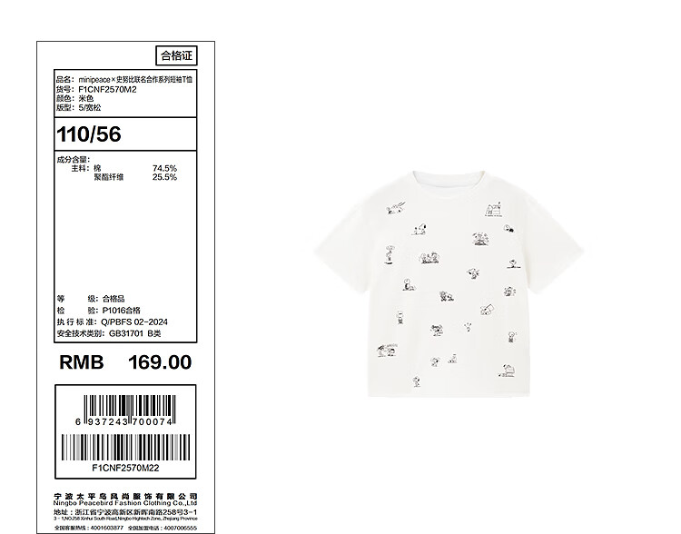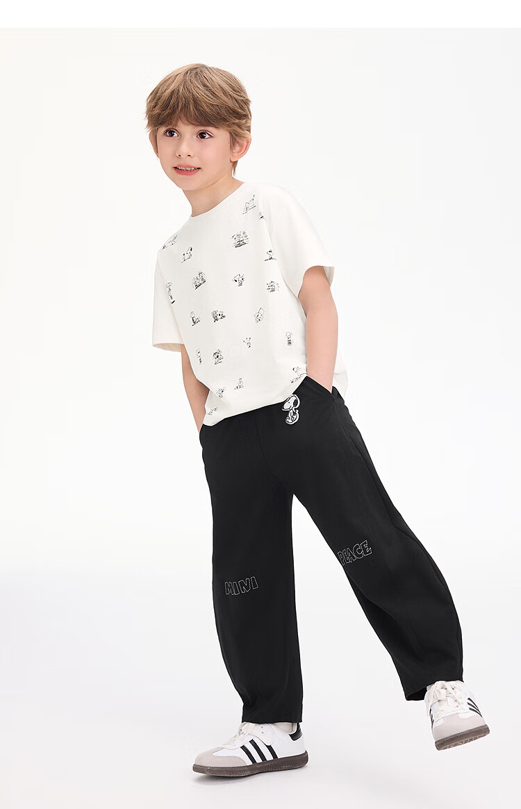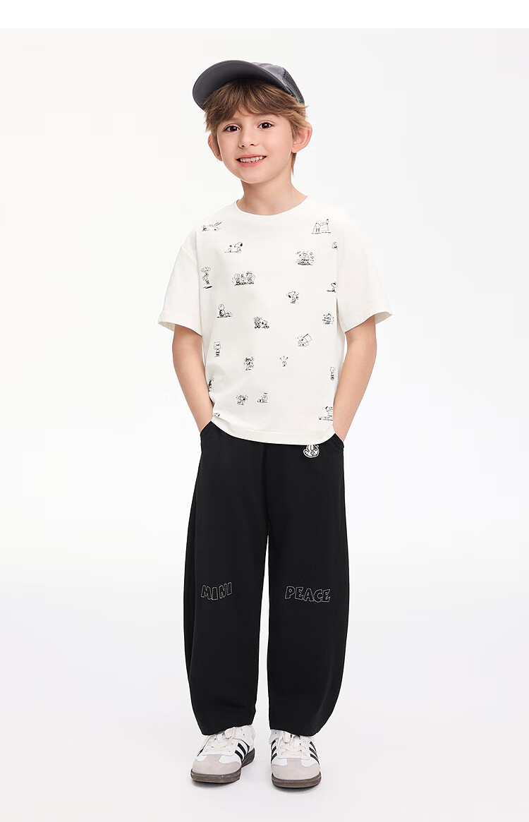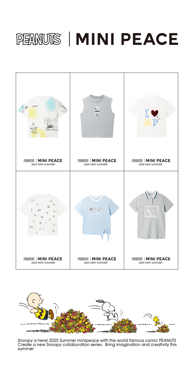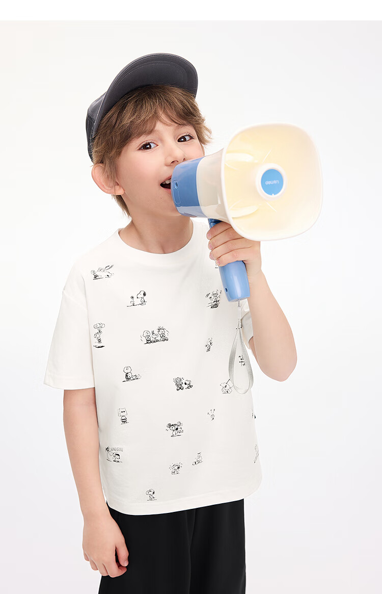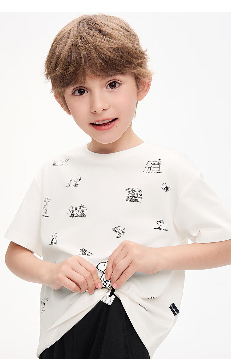 MiniPeace cooling and antibacterial, same style as the counter, Snoopy joint series boys' short-sleeved T-shirt, beige 110