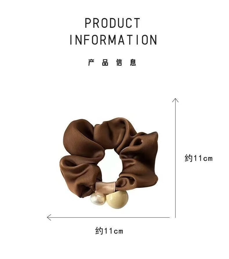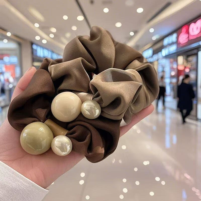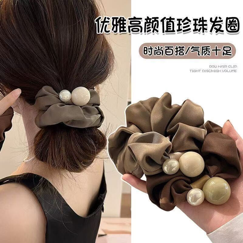 Simple Pearl Large Intestine Hair Tie 2025 New Rubber Band Women's Hair Elegant Leather Case High-Looking Hair Tie Black Dark Coffee Pearl Large Intestine Hair Tie