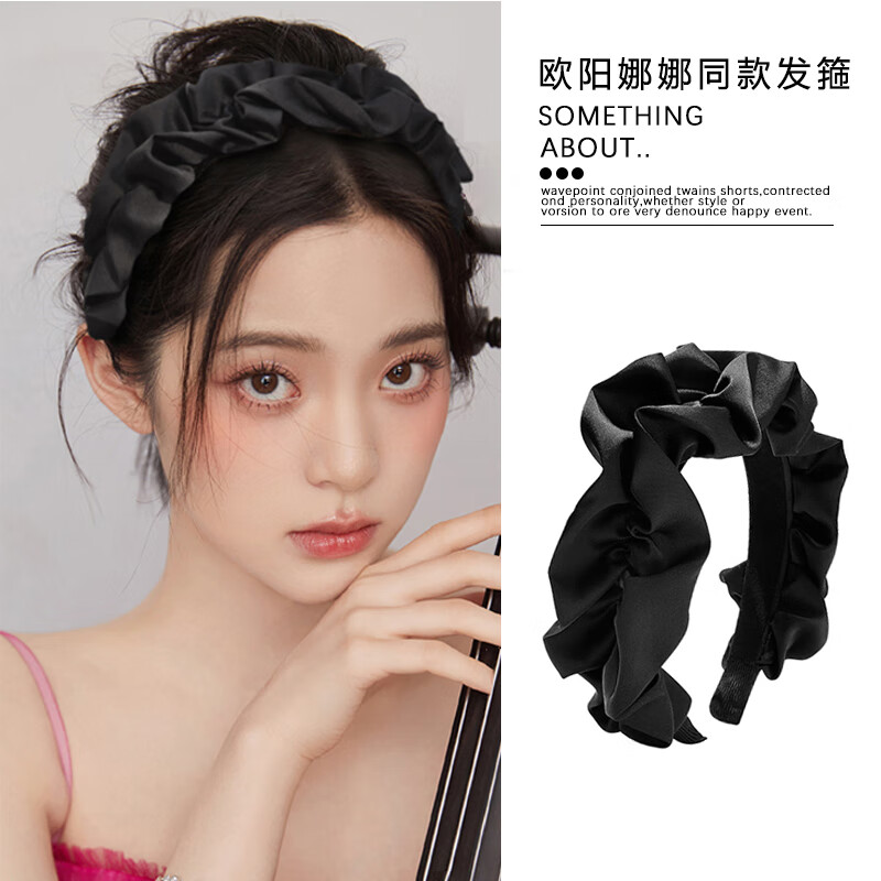 Douyin's popular sweet style high cranial pleated headband headband for women autumn Maybelline large intestine headband pressure hairpin black pleated headband one pack