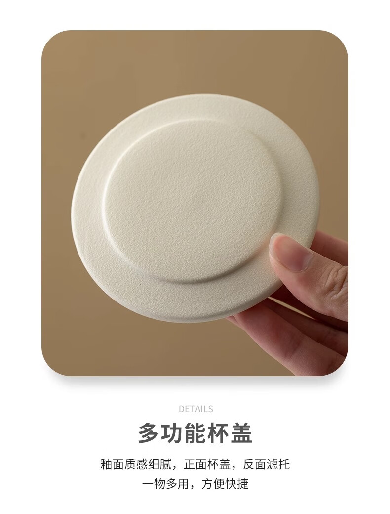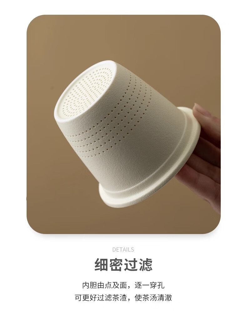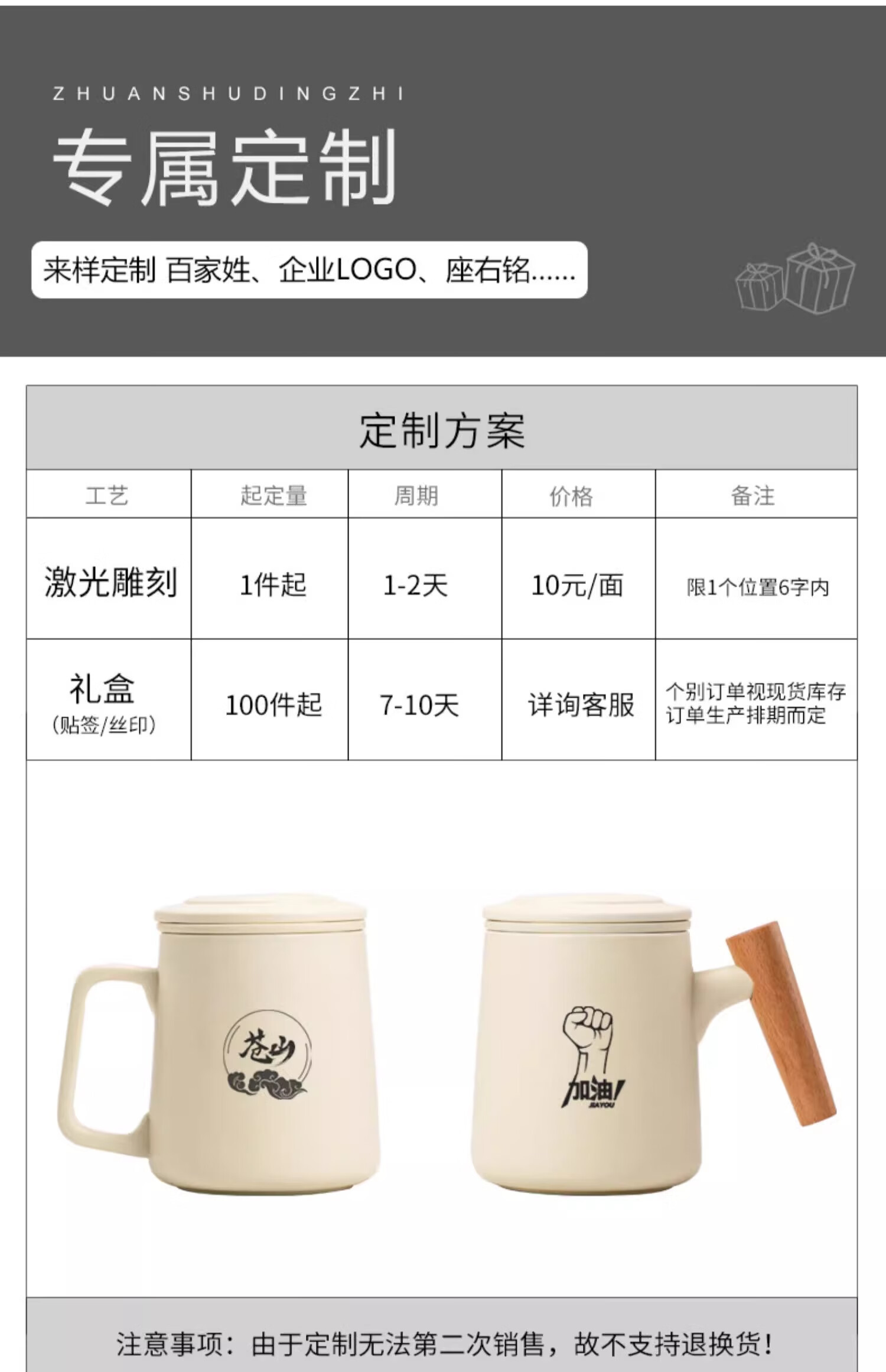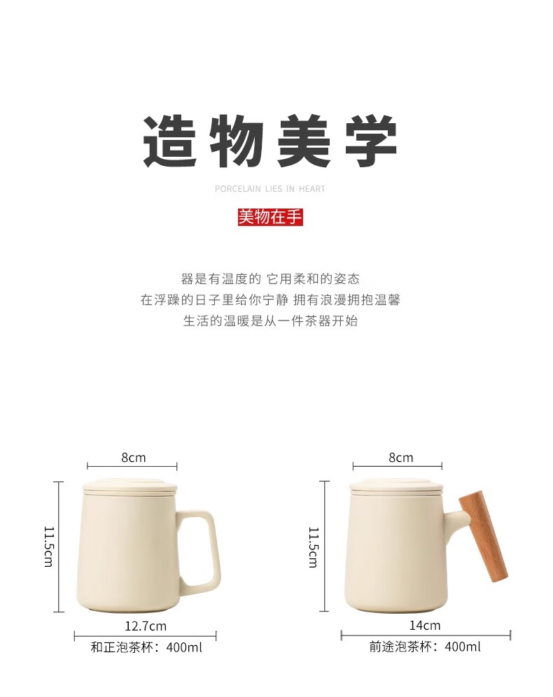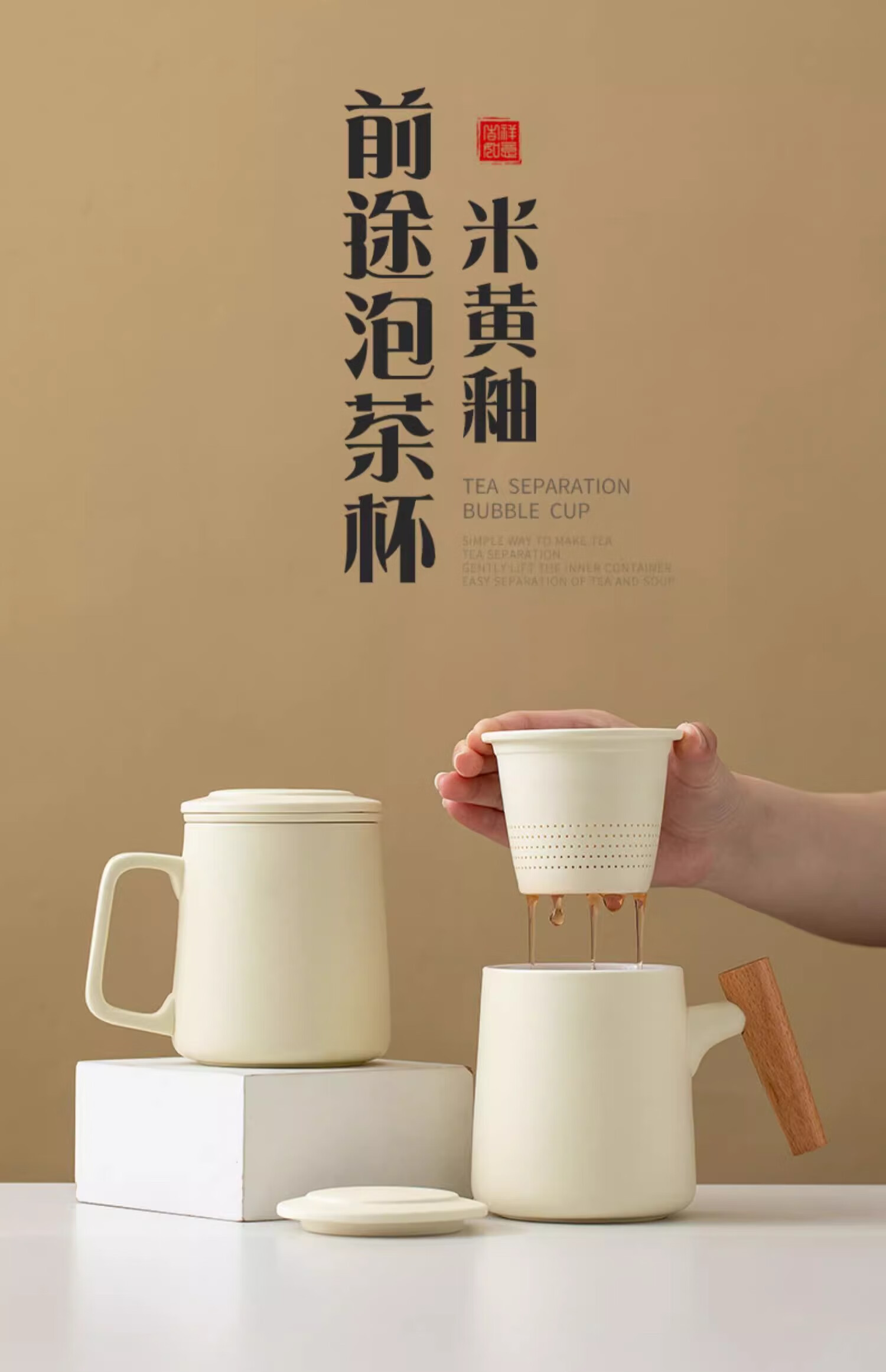 Simple ceramic tea cup, tea water separation cup, personal home office filtered water cup with lid, mug cup, customized wooden handle office cup, beige glaze