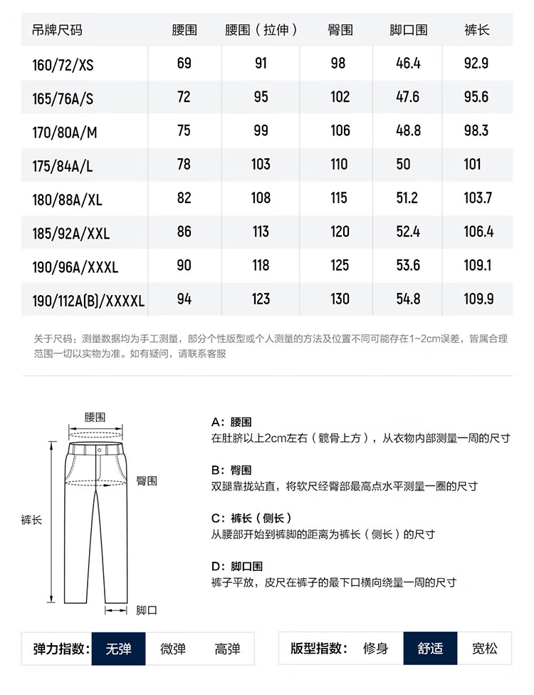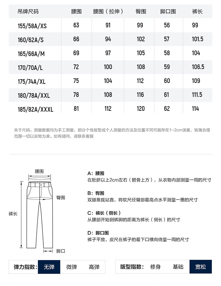 Outseam (cm) 99 cm 101.5 cm 104 cm 106.5 cm 109 cm