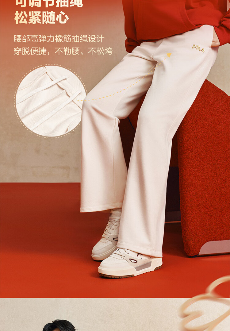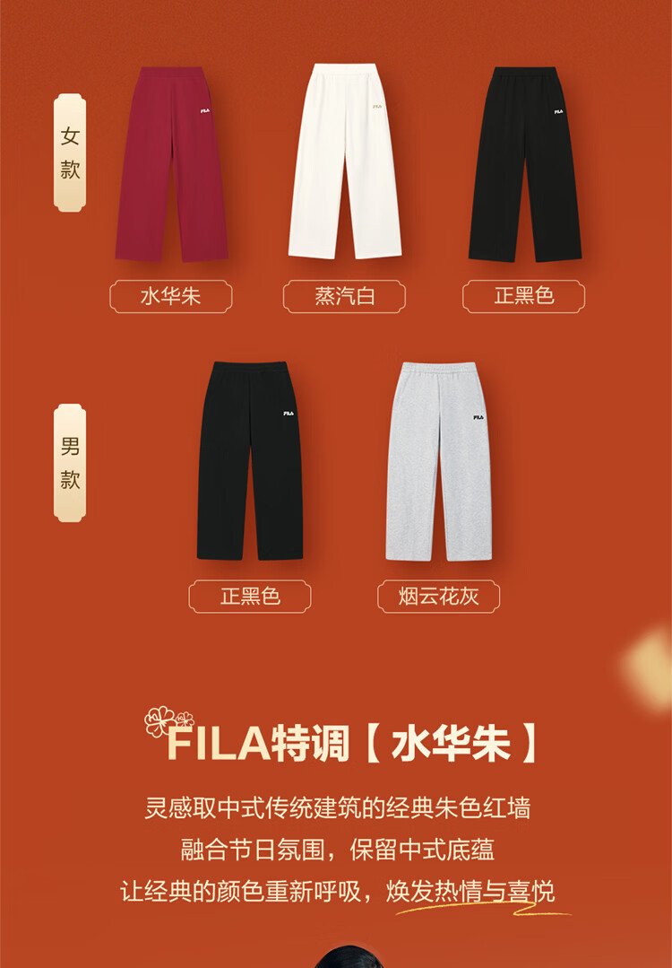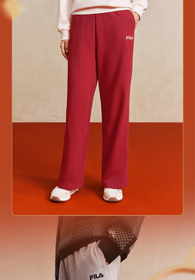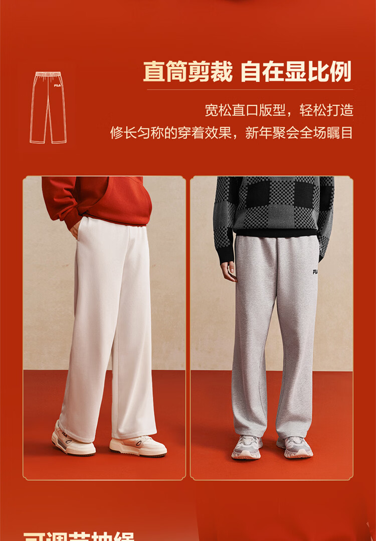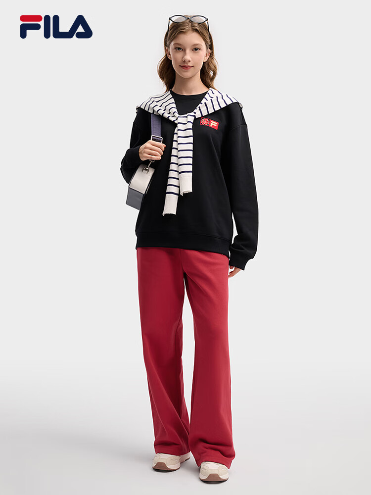 FILA men's and women's couple's trousers 26 spring new casual sweatpants loose sports straight pants New Year's trousers cuffed trousers without velvet dark elegant blue-DB L