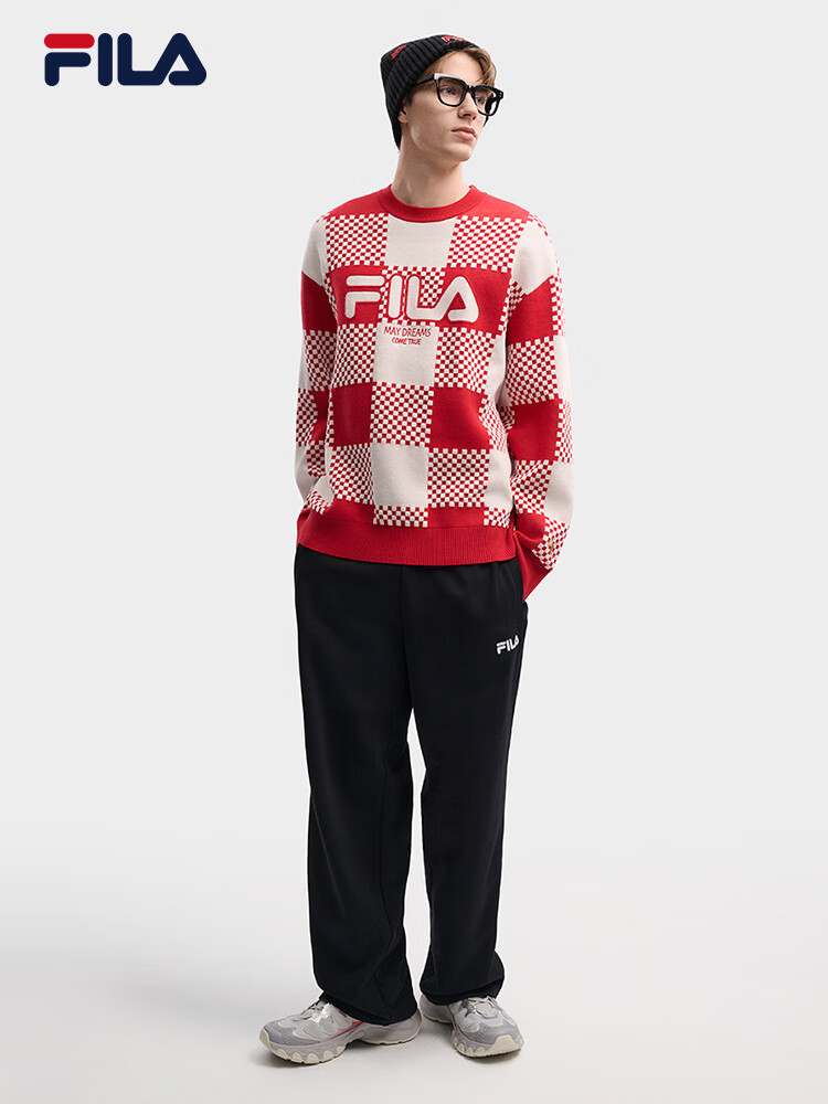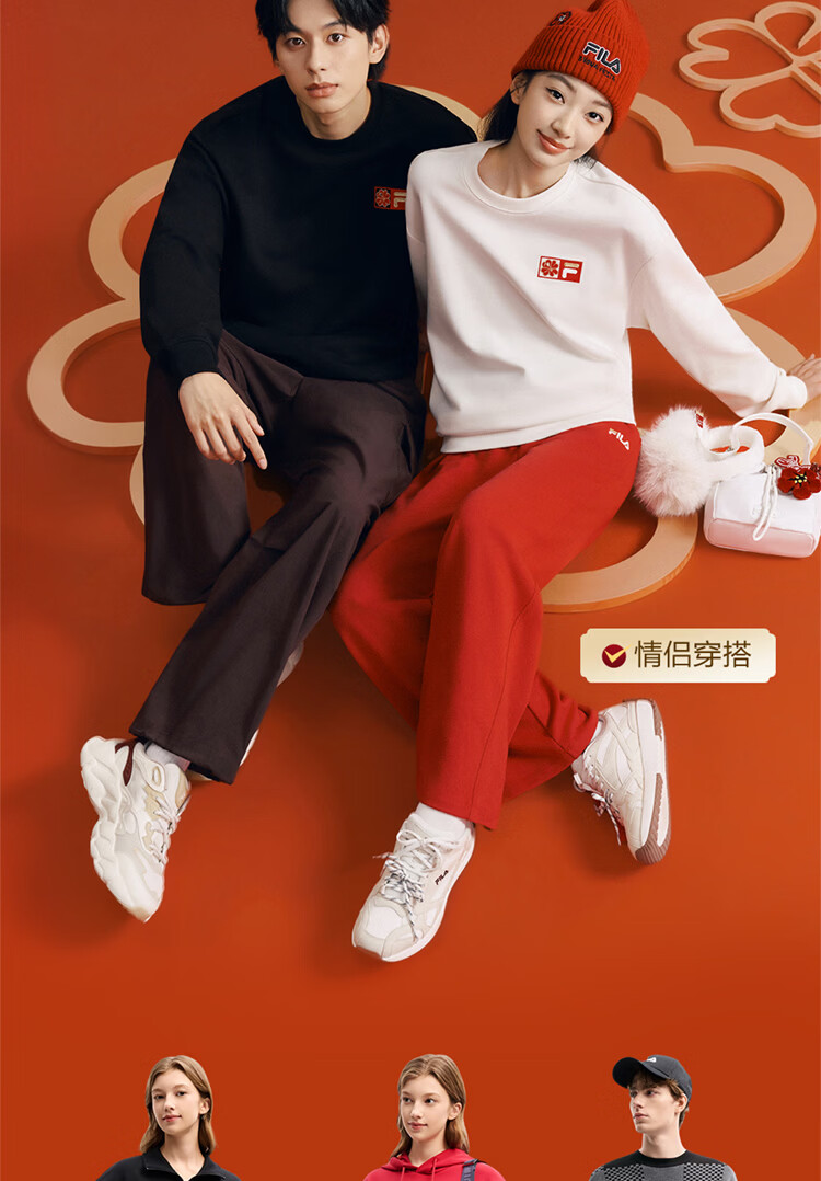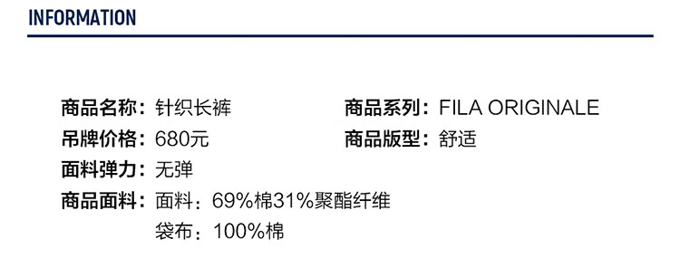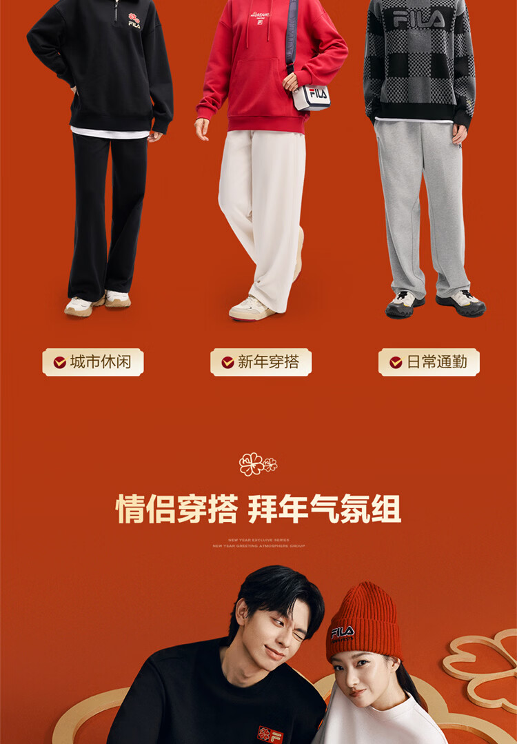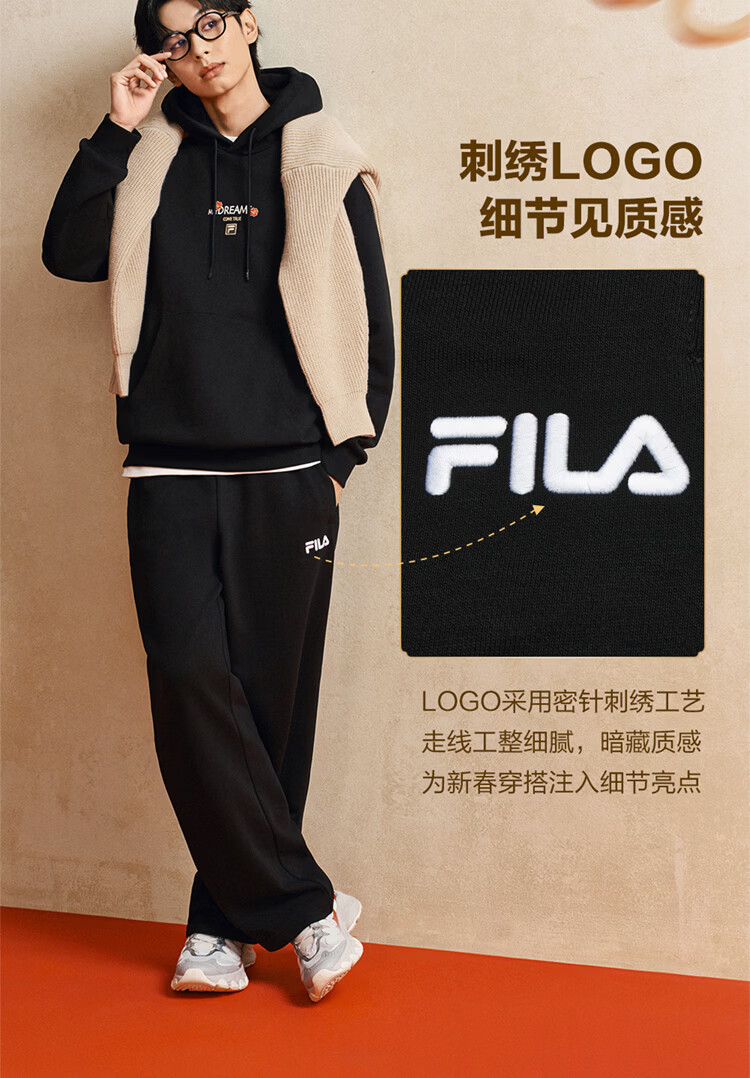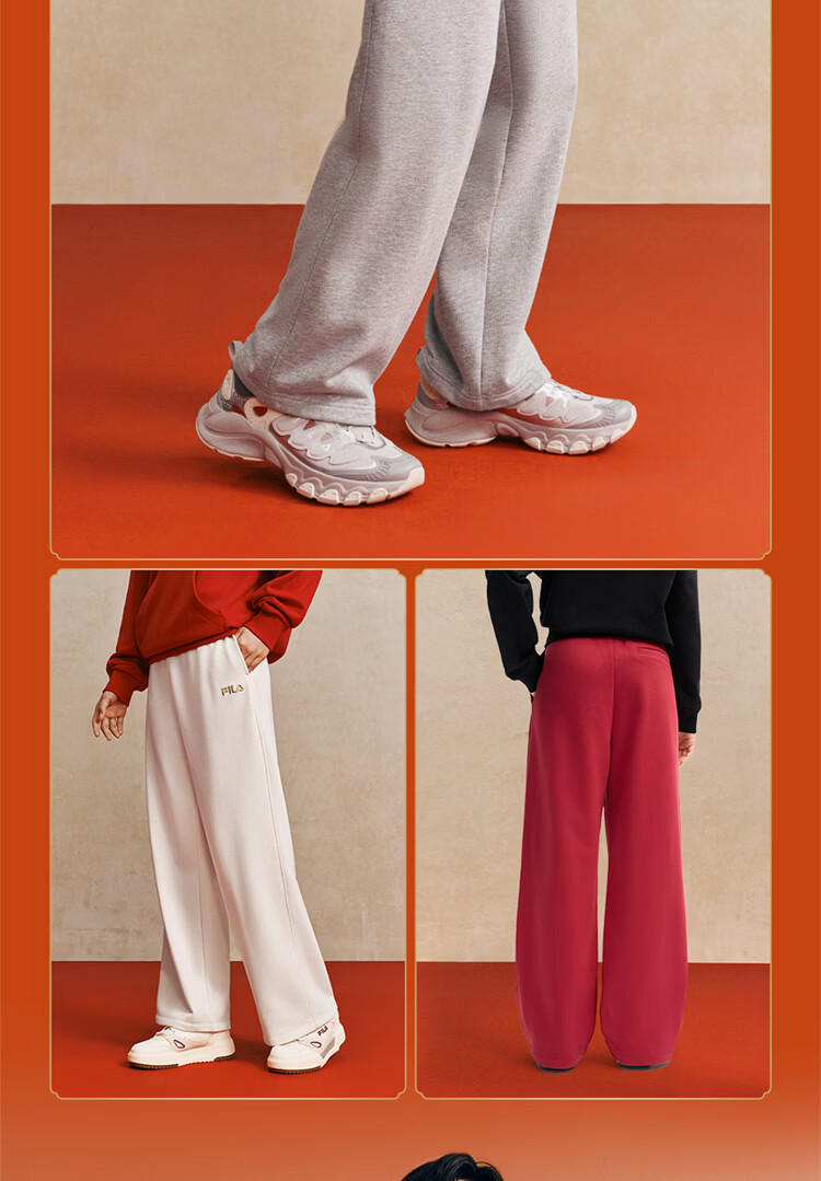 FILA men's and women's couple's trousers 26 spring new casual sweatpants loose sports straight pants New Year's trousers cuffed trousers without velvet dark elegant blue-DB L