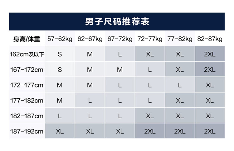 China (cm) 165 / 88-90 170 / 96-98 175 / 108-110 180 / 118-122 185 / 126-130