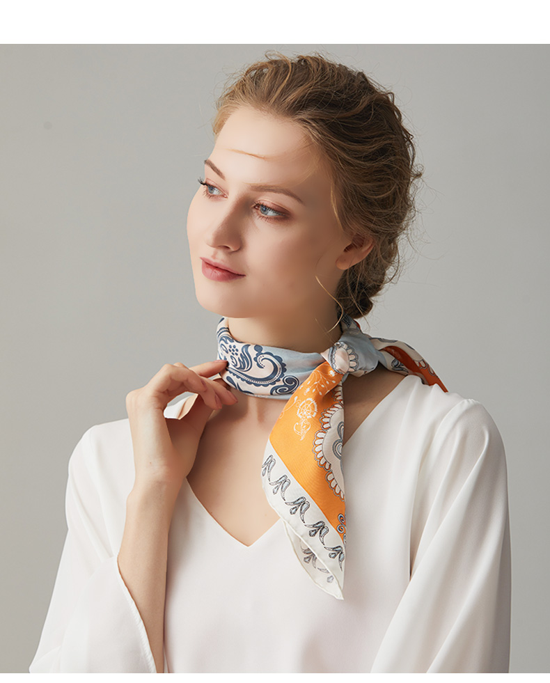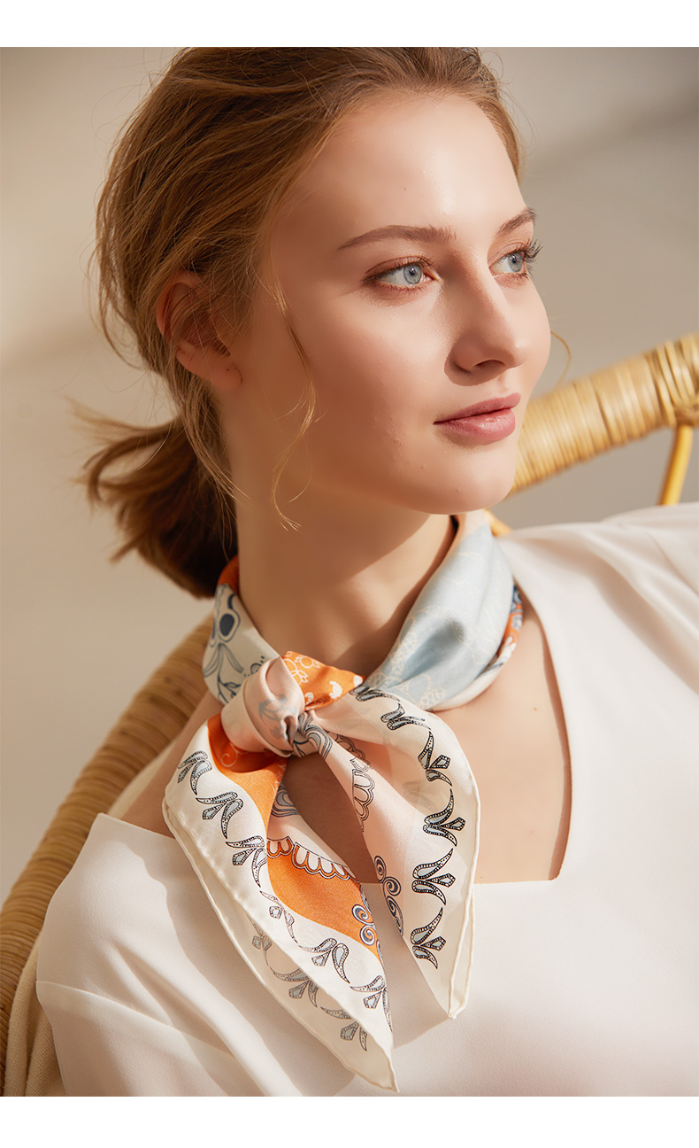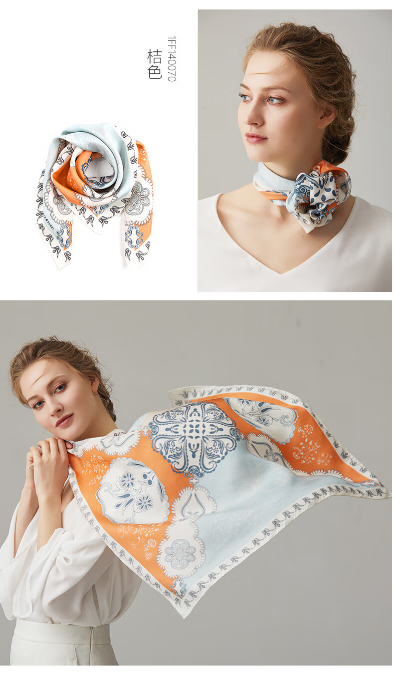 Maria Gucci (MARJA KURKI) Silk Scarf Women's Square Scarf for Lover Small and Medium Silk Square Scarf Mulberry Silk Gift Box for Mom Qingmeng Galaxy Orange Silk Scarf Button Set Box