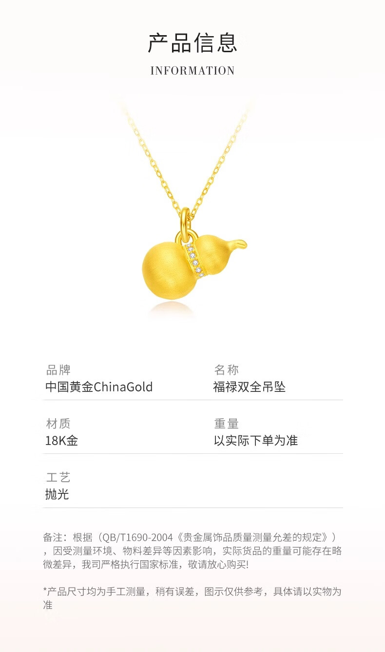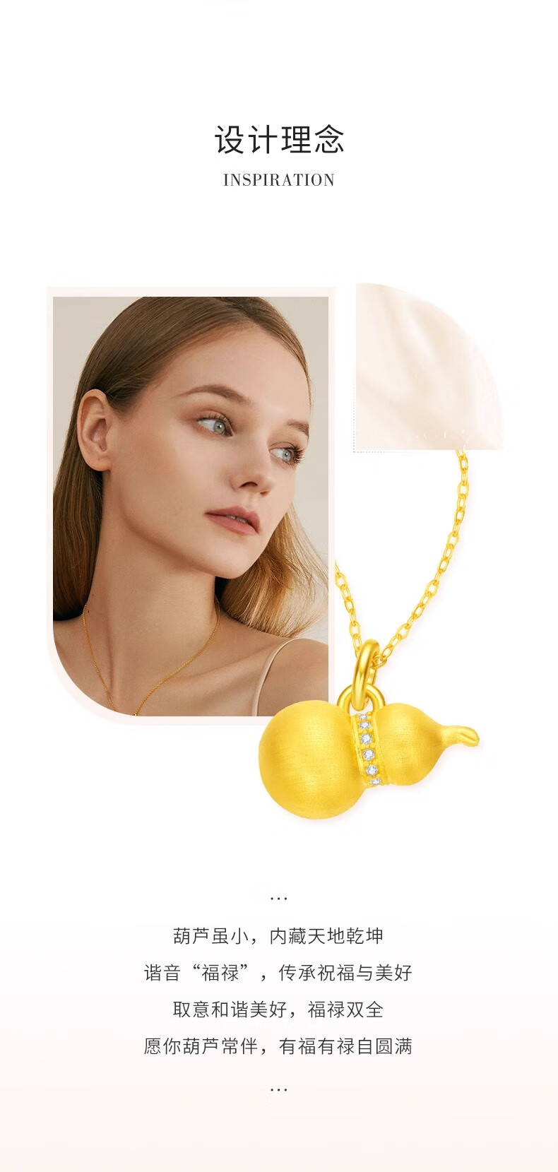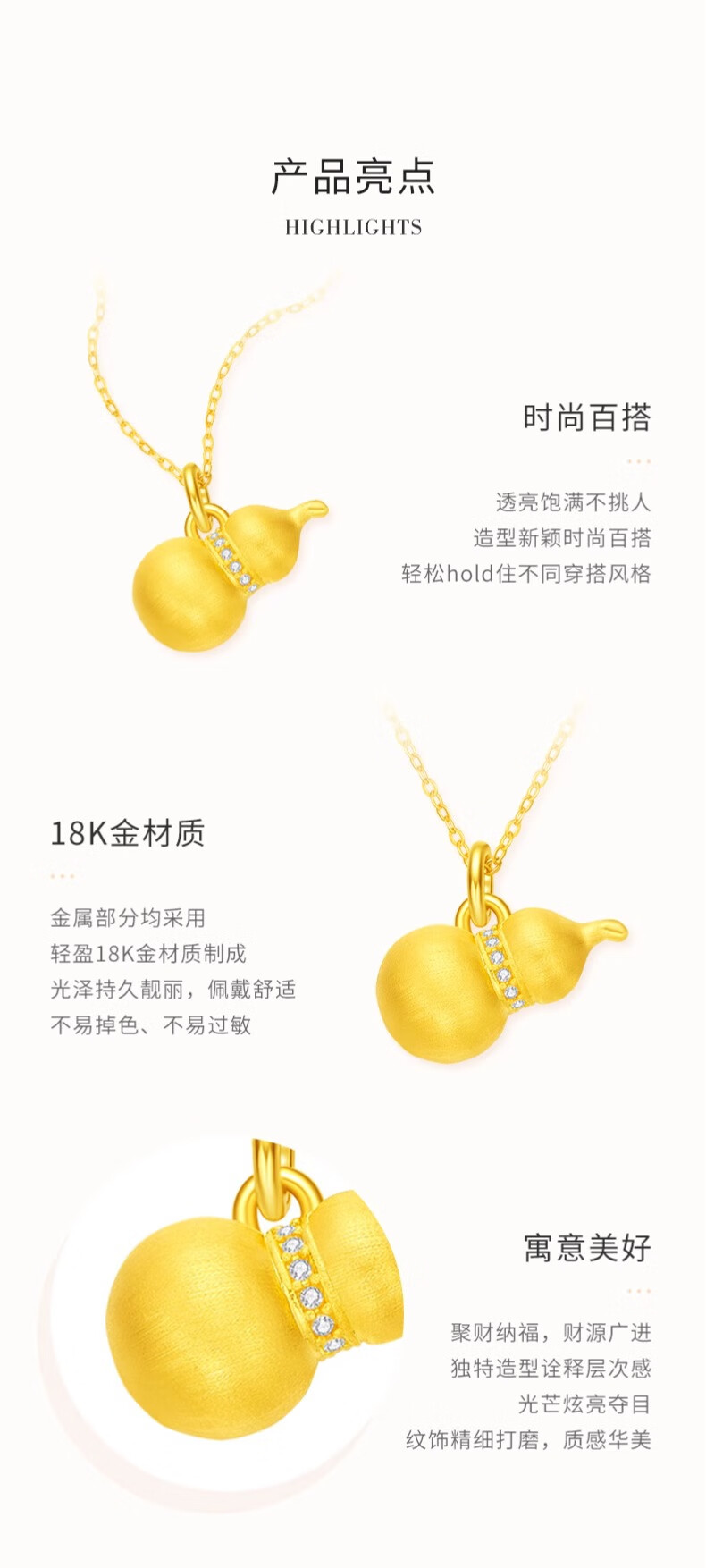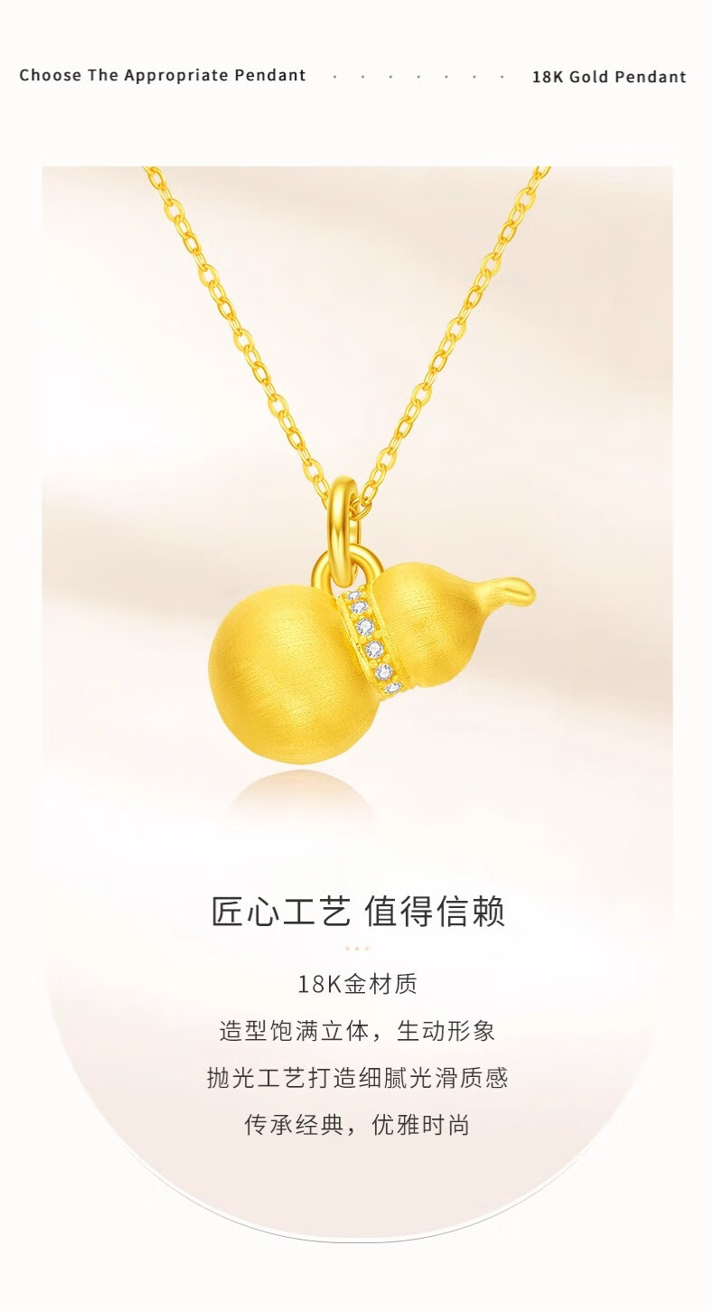 China Gold (CHINA GOLD) 18K gold brushed gourd pendant for women, versatile K gold necklace, practical birthday gift for girlfriend and wife on Valentine's Day, 18K gold brushed gourd pendant, free sterling silver chain, about 0.2g, gram weight is the total weight of the product, K gold weight + topaz/others