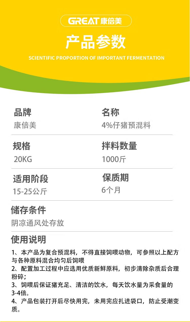 4 Premix for piglets, pig feed for fattening and breeding, special for veterinary use, livestock use, no diarrhea