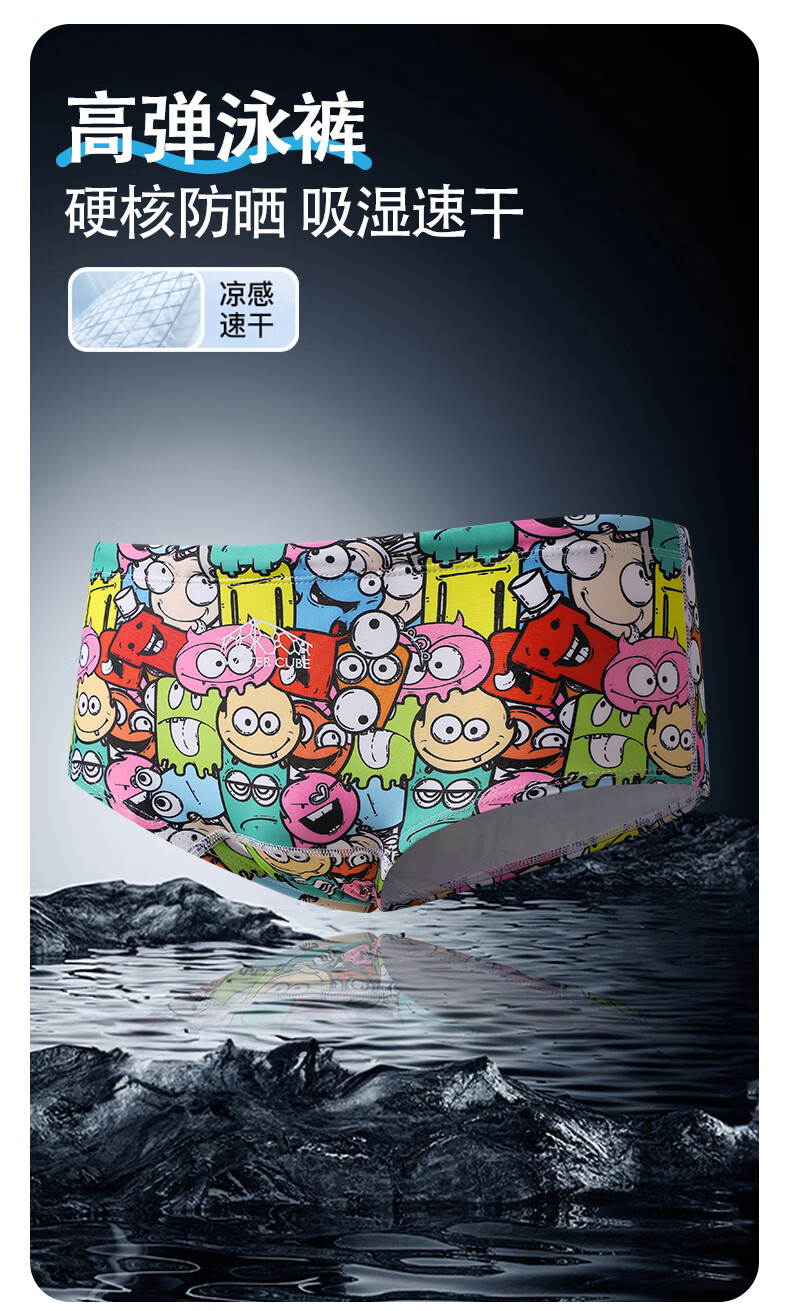 Water Cube (WATER CUBE) competitive swimming trunks, small boxer men's training competition, new style for children, students, adults, racing without water, yellow M