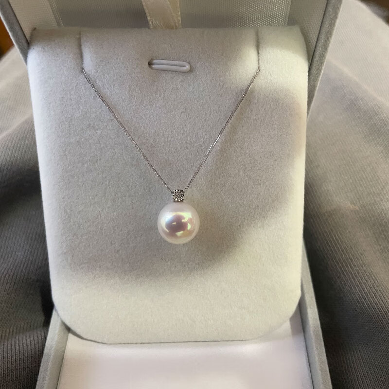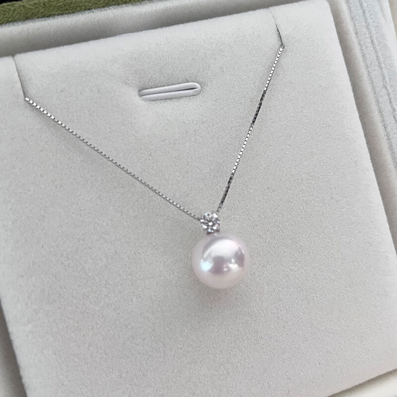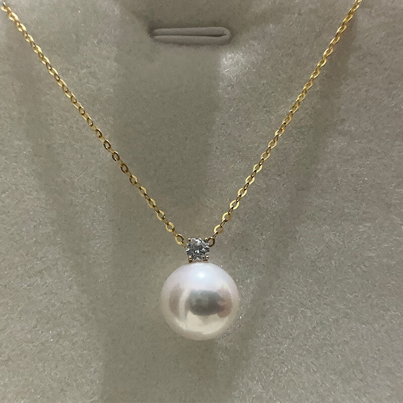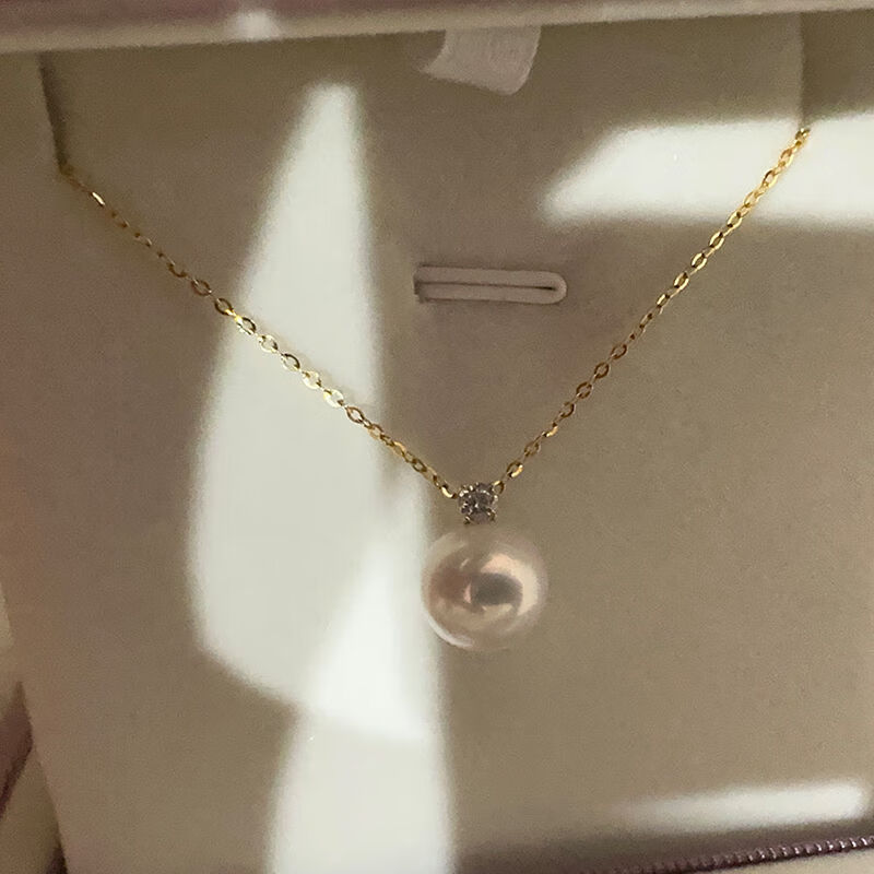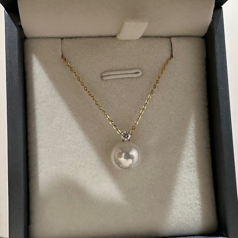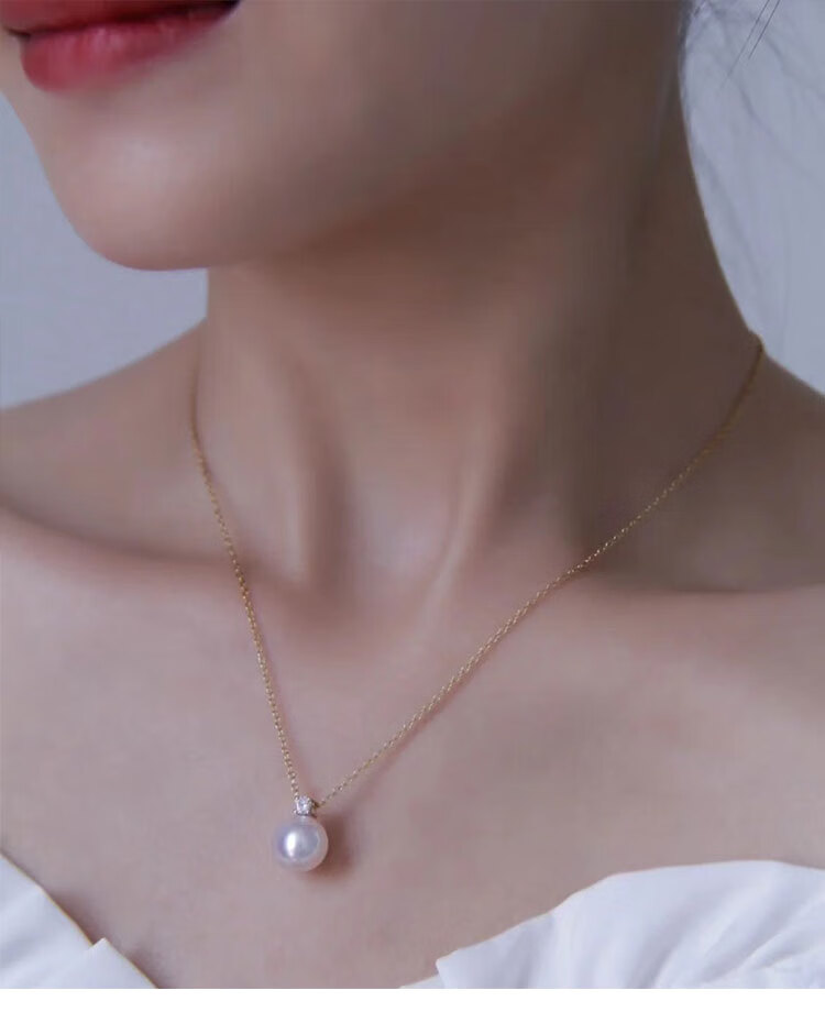 Libiao Natural Freshwater AKOYA Pearl Pendant Princess Diana Necklace Edison Neck Jewelry 18K Gold Gift Zhuji DIY 18K Gold Zircon Pendant Holder Gift S925 8-9mm45cm