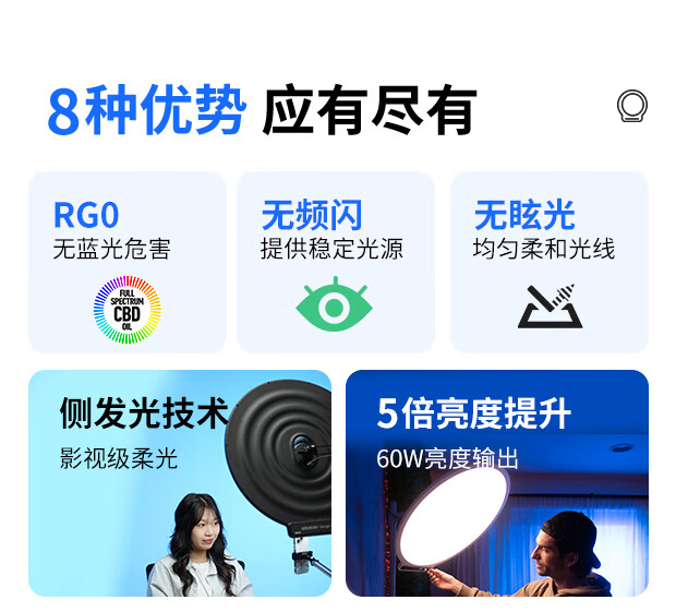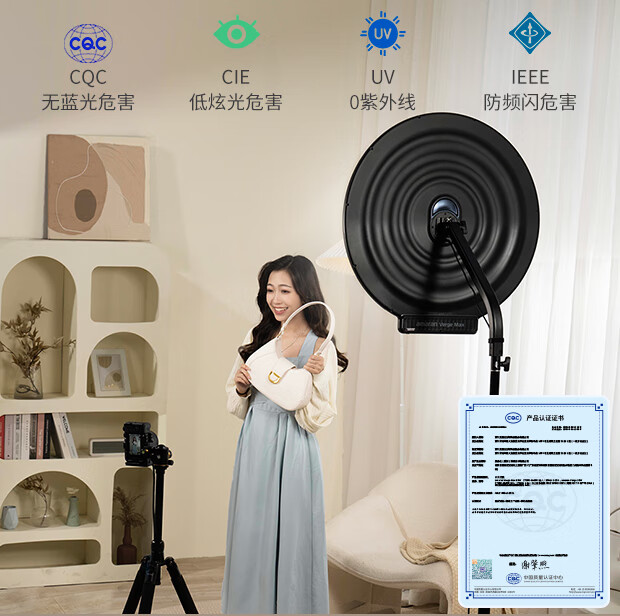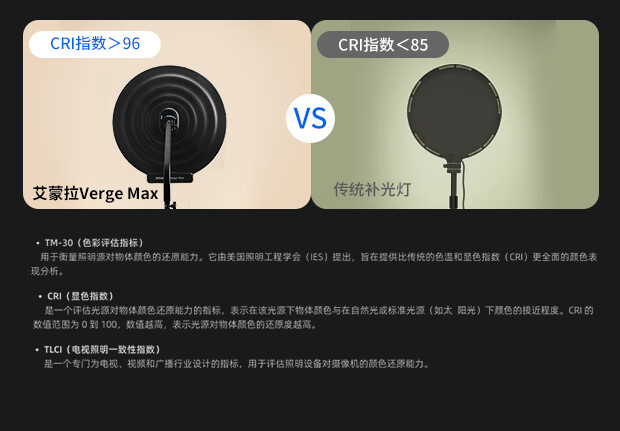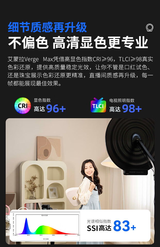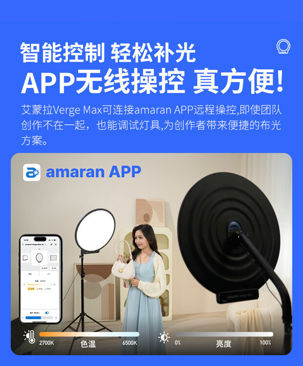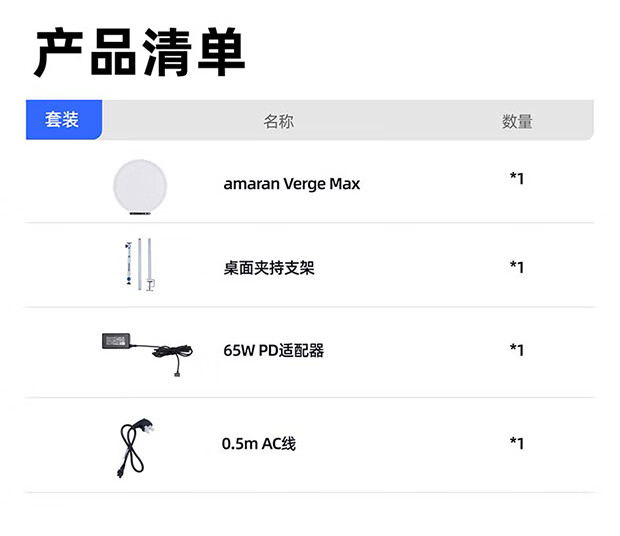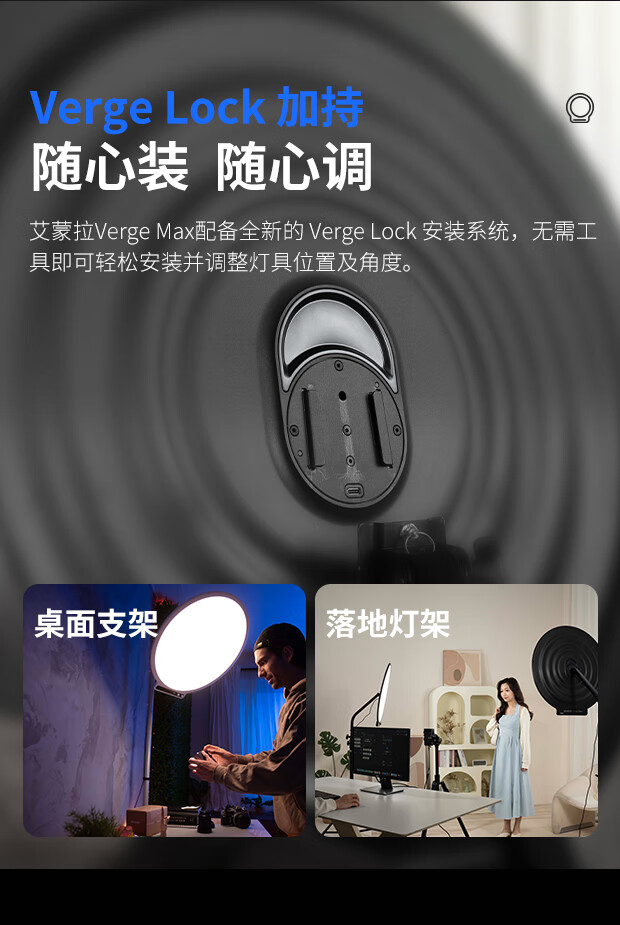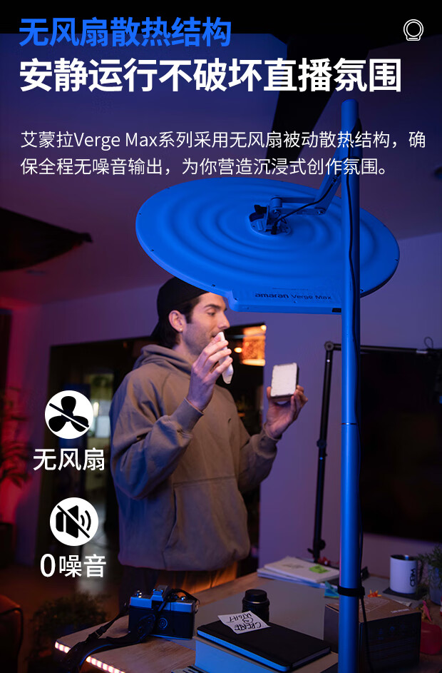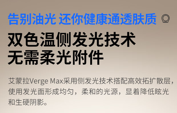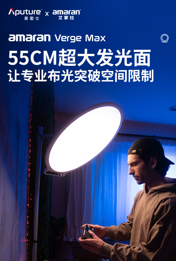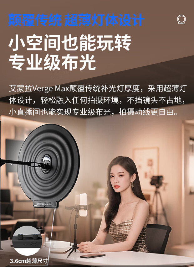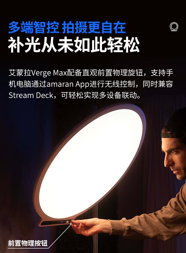 Aputure amaran Verge Max round side-emitting beauty desktop tablet lamp RG0 certified eye protection lamp dual-color temperature live video photography fill light Amaran Verge Max dual-color desktop stand set-white amaran VergeMax