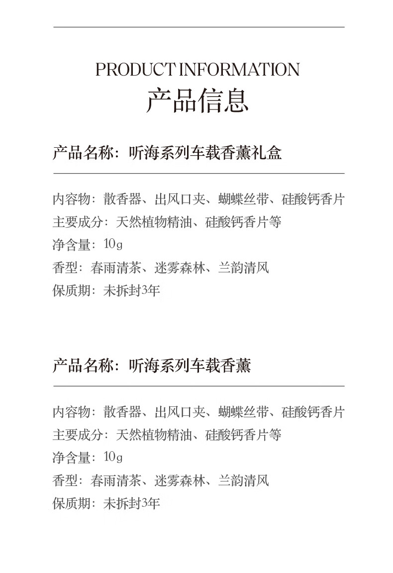 Song Dynasty Tinghai Mist Forest Car Aromatherapy Gift Box Car Air Outlet Car Perfume Fragrance Air Purification Gift Spring Rain Tea Gift Box, 2 Fragrance Tablets