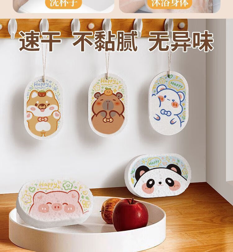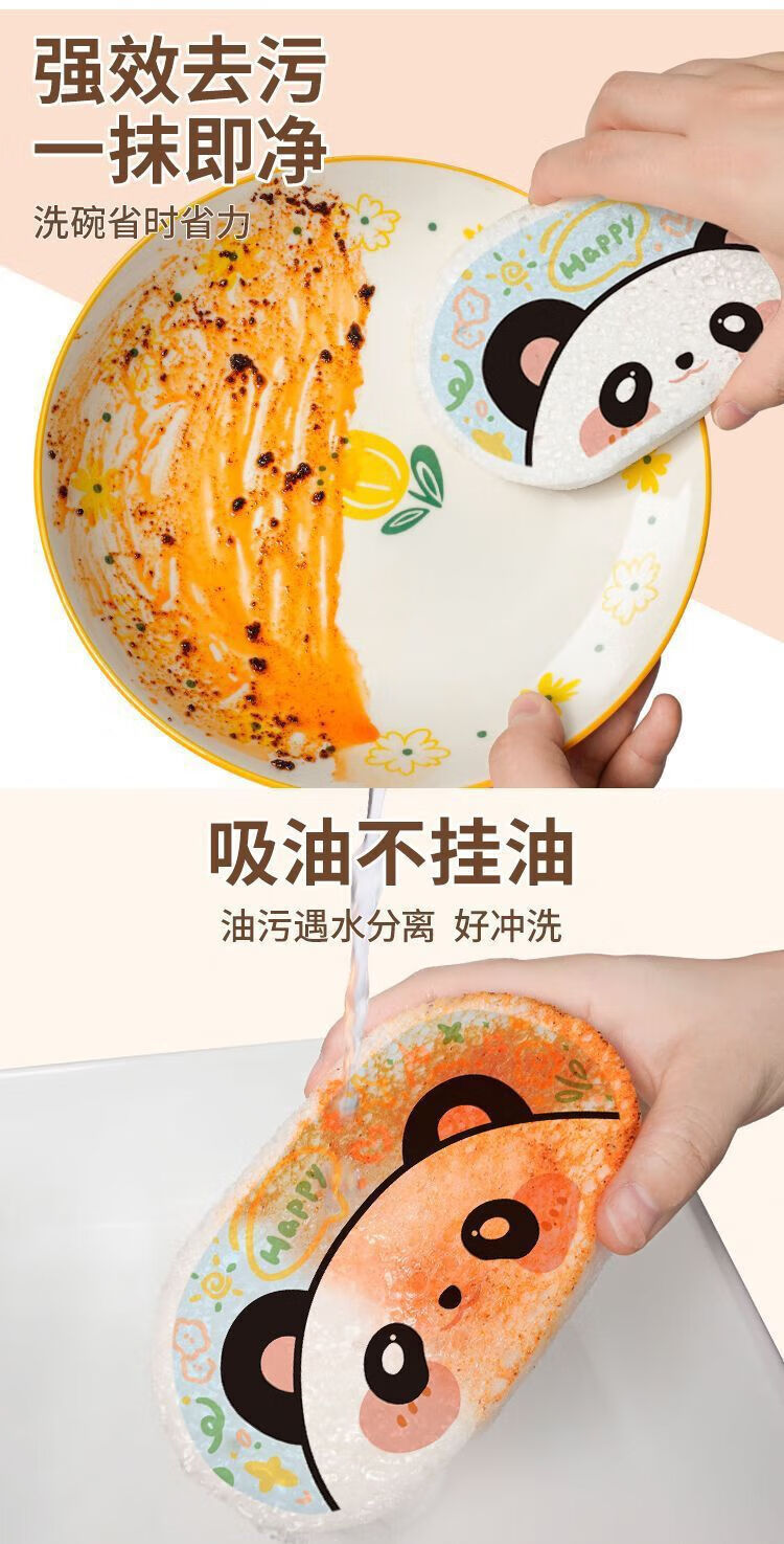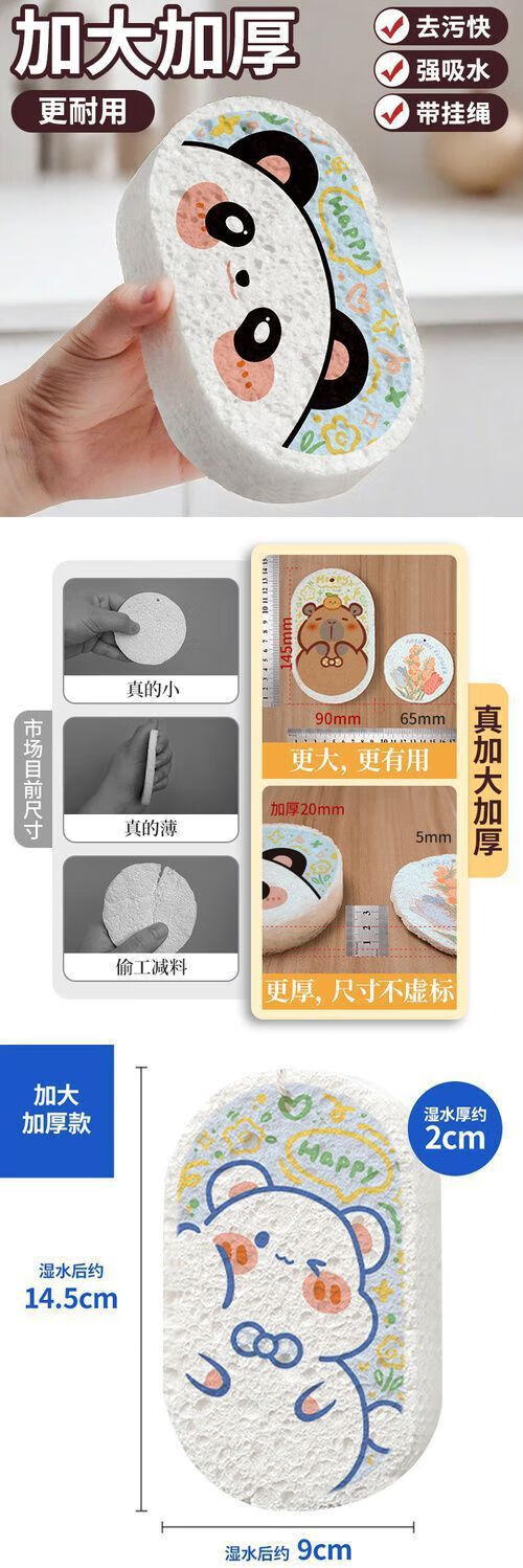Jingxianju dishwashing sponge, scouring pad, dishwashing artifact, sponge block, dishwashing cloth, scouring pad, wood pulp cotton compressed sponge wipe, thickened 2 pack