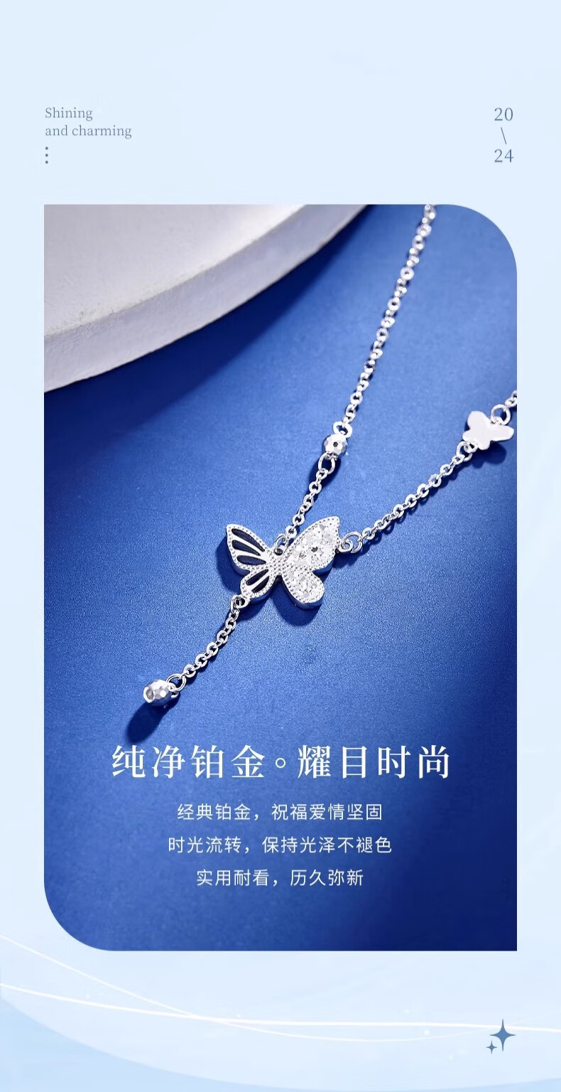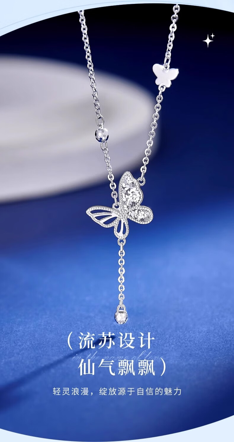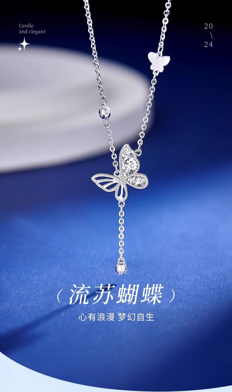Chinese jewelry SINO GEM butterfly tassel PT950 platinum necklace pendant jewelry Valentine's Day 520 gift for girlfriend PT950 platinum butterfly tassel necklace about 4g
