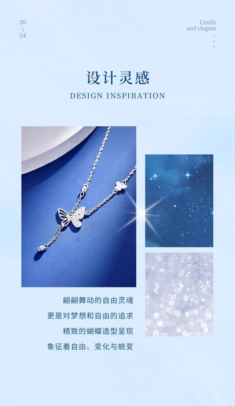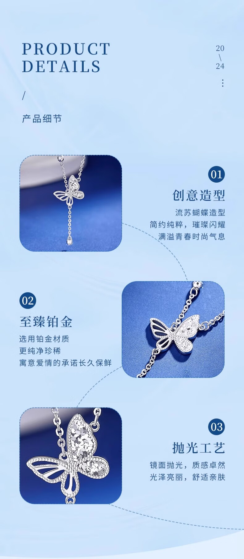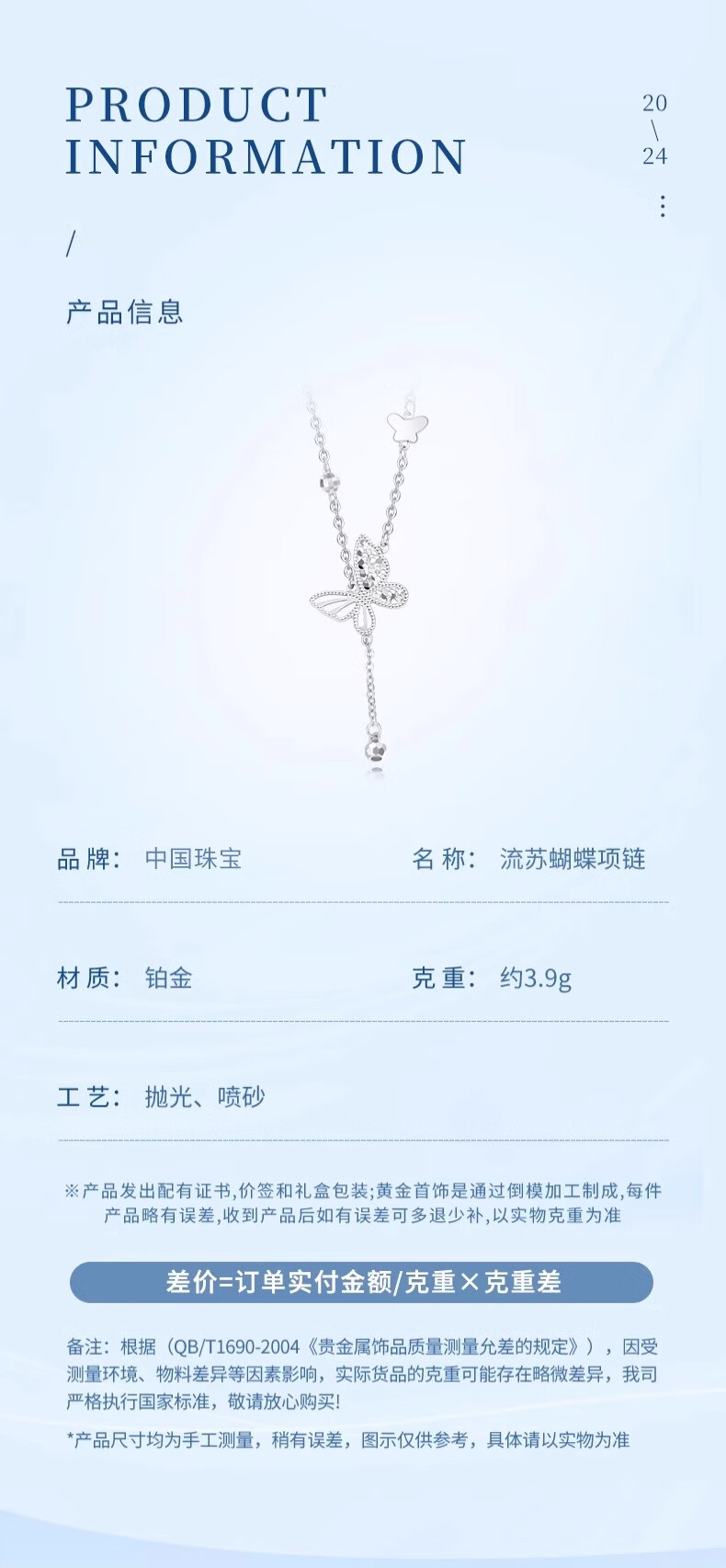Chinese jewelry SINO GEM butterfly tassel PT950 platinum necklace pendant jewelry Valentine's Day 520 gift for girlfriend PT950 platinum butterfly tassel necklace about 4g