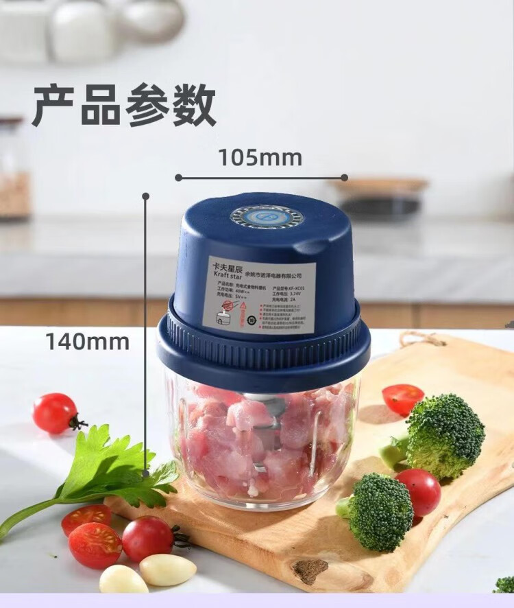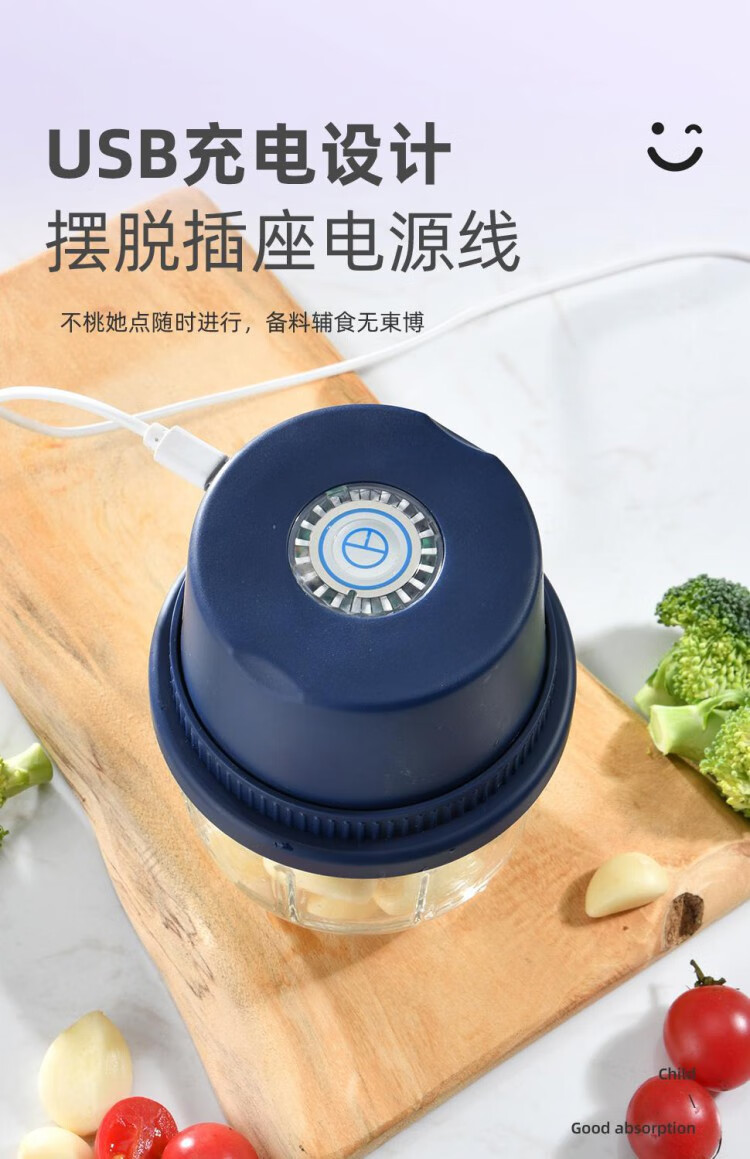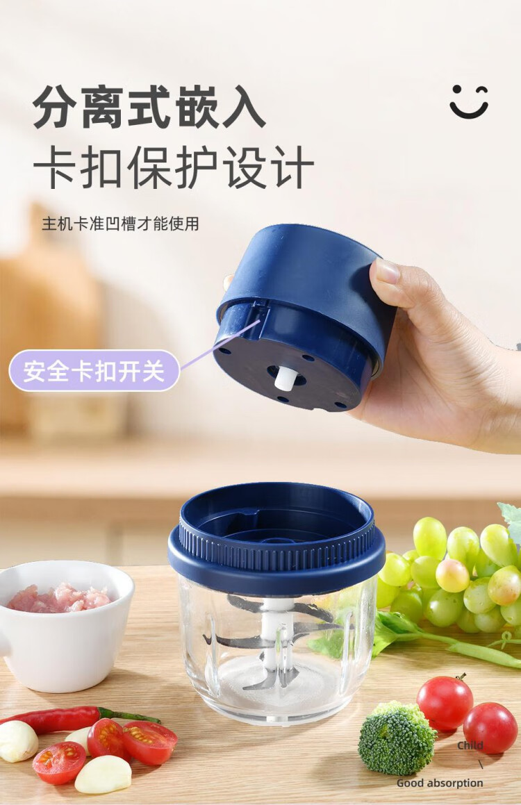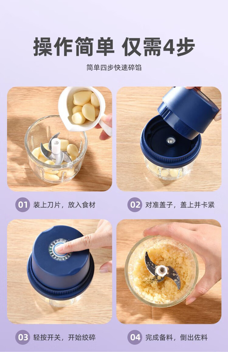 Miaopule Japanese brand imported electric glass garlic machine garlic machine upgraded six-blade twist Kraft Star Wireless Small Blue Glass Model (6-blade high power)
