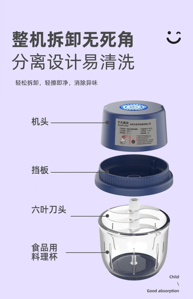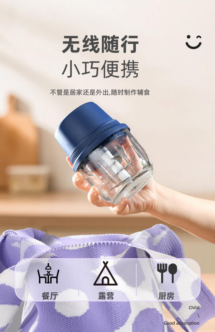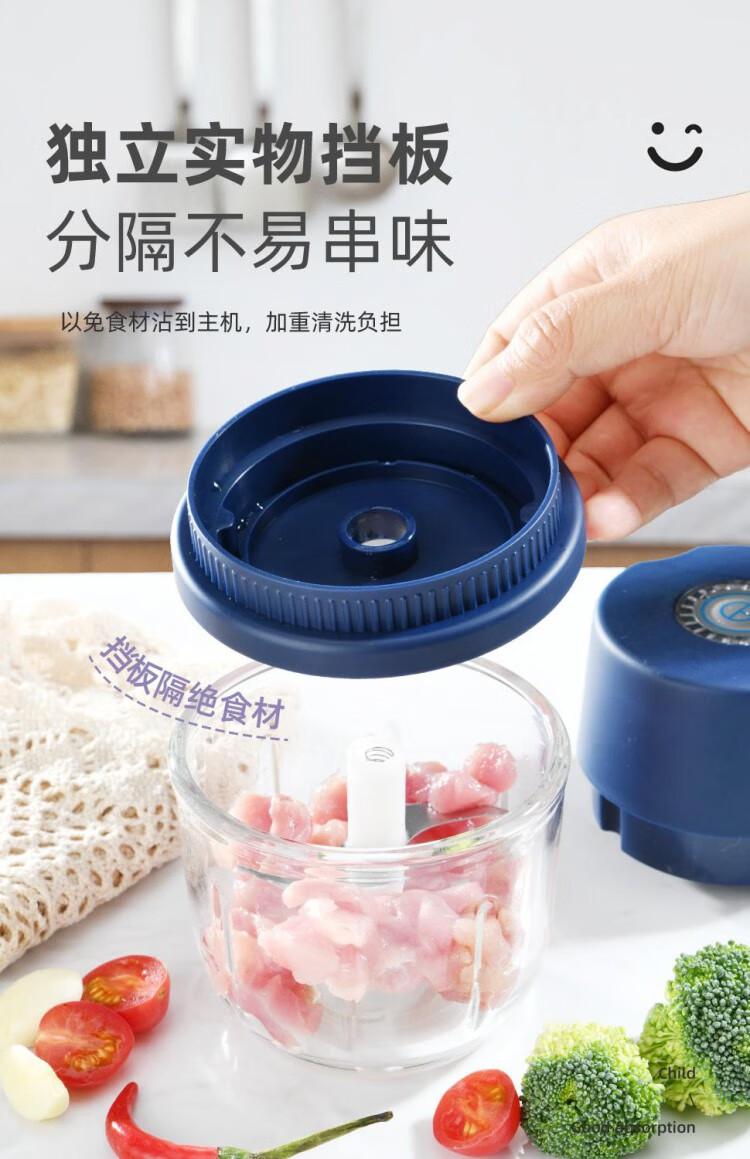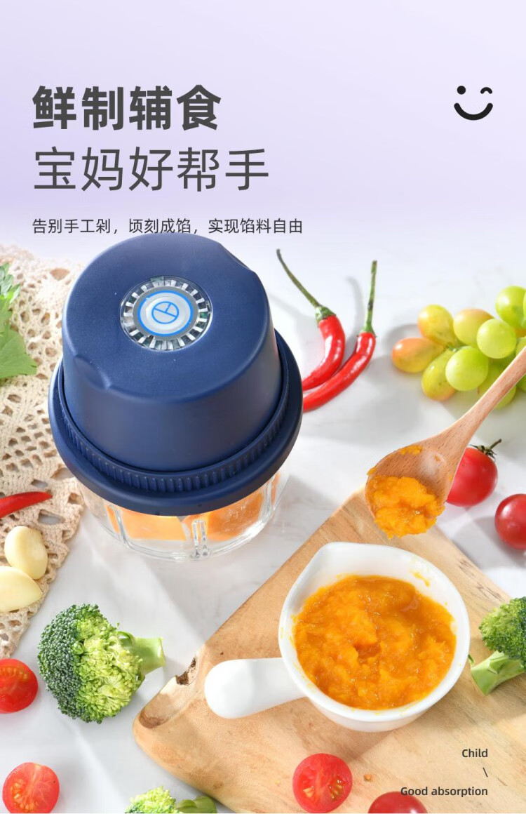 Miaopule Japanese brand imported electric glass garlic machine garlic machine upgraded six-blade twist Kraft Star Wireless Small Blue Glass Model (6-blade high power)