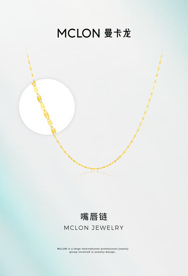Mankaron 18k gold necklace lip chain clavicle chain plain chain simple diy pendant gift 0.79-0.82g