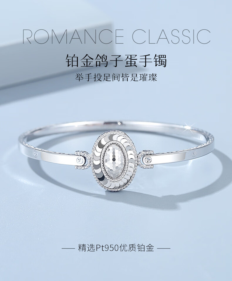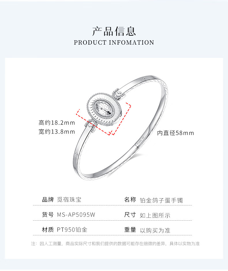 Misu pt950 platinum pigeon egg concubine bracelet for women new fashion platinum sparkling bracelet live mouth bracelet birthday gift concubine bracelet weight 17.1-17.3 grams inner diameter 58mm