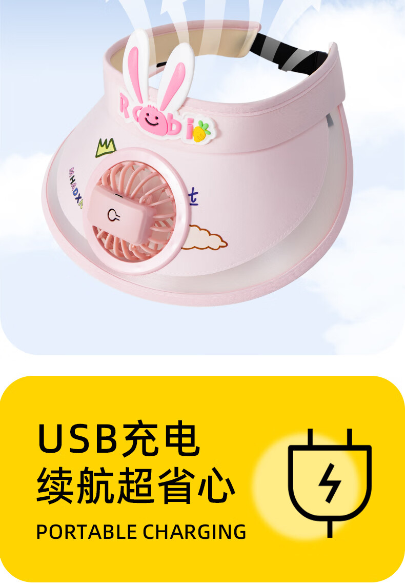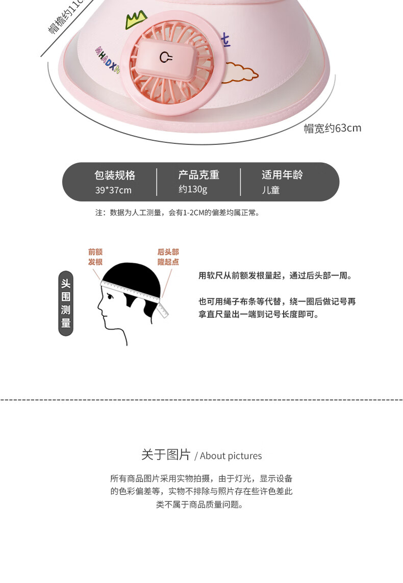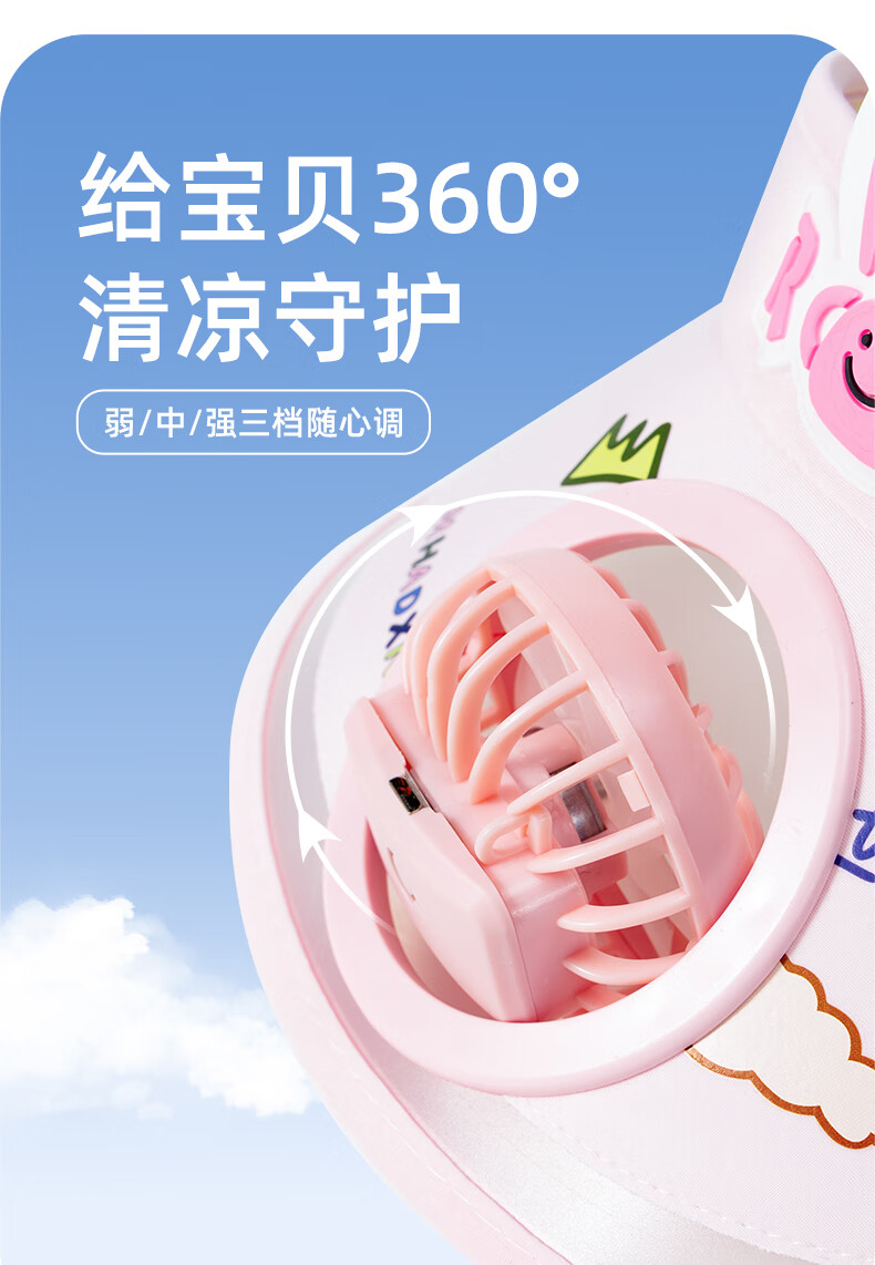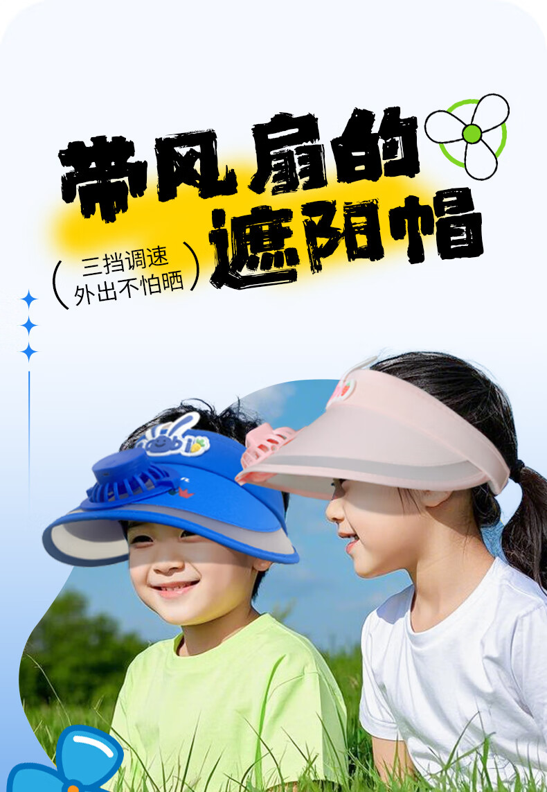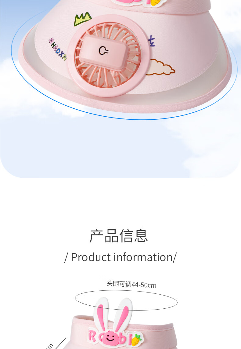 COZY JIEHUI new children's sun hat with charging fan hat summer sun hat girls fashionable break dark blue
