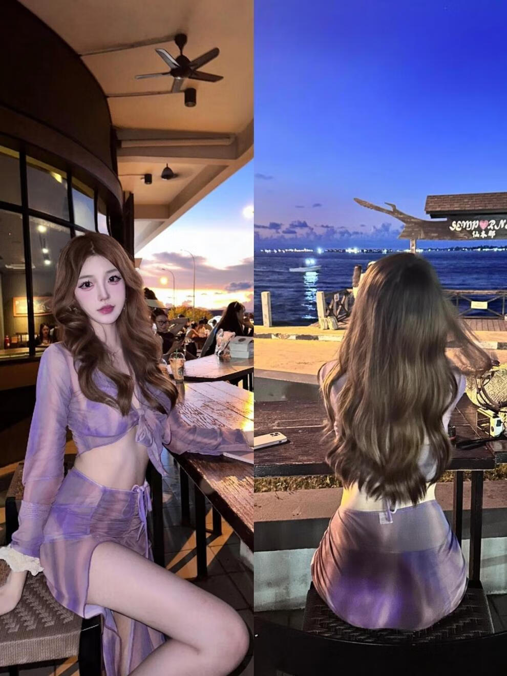 Chaosihui mosricci2025 new split bikini four-piece set purple charm hot spring resort swimsuit for women purple (style) XL (130-145) Jin Jin equals 0.5 kg