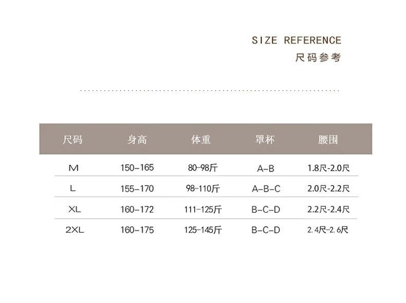 China (cm) 160-165/84-86 165-170 / 88-90 167-172 / 92-96 168-173 / 98-102 170-176 / 106-110