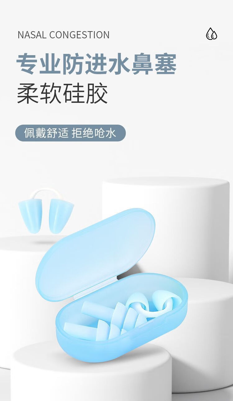 Chaosihui nose plug anti-choking swimming special waterproof nose clip mermaid performance diving silicone nose plug earmuff set blue super waterproof nose plug + Christmas tree earplugs for children