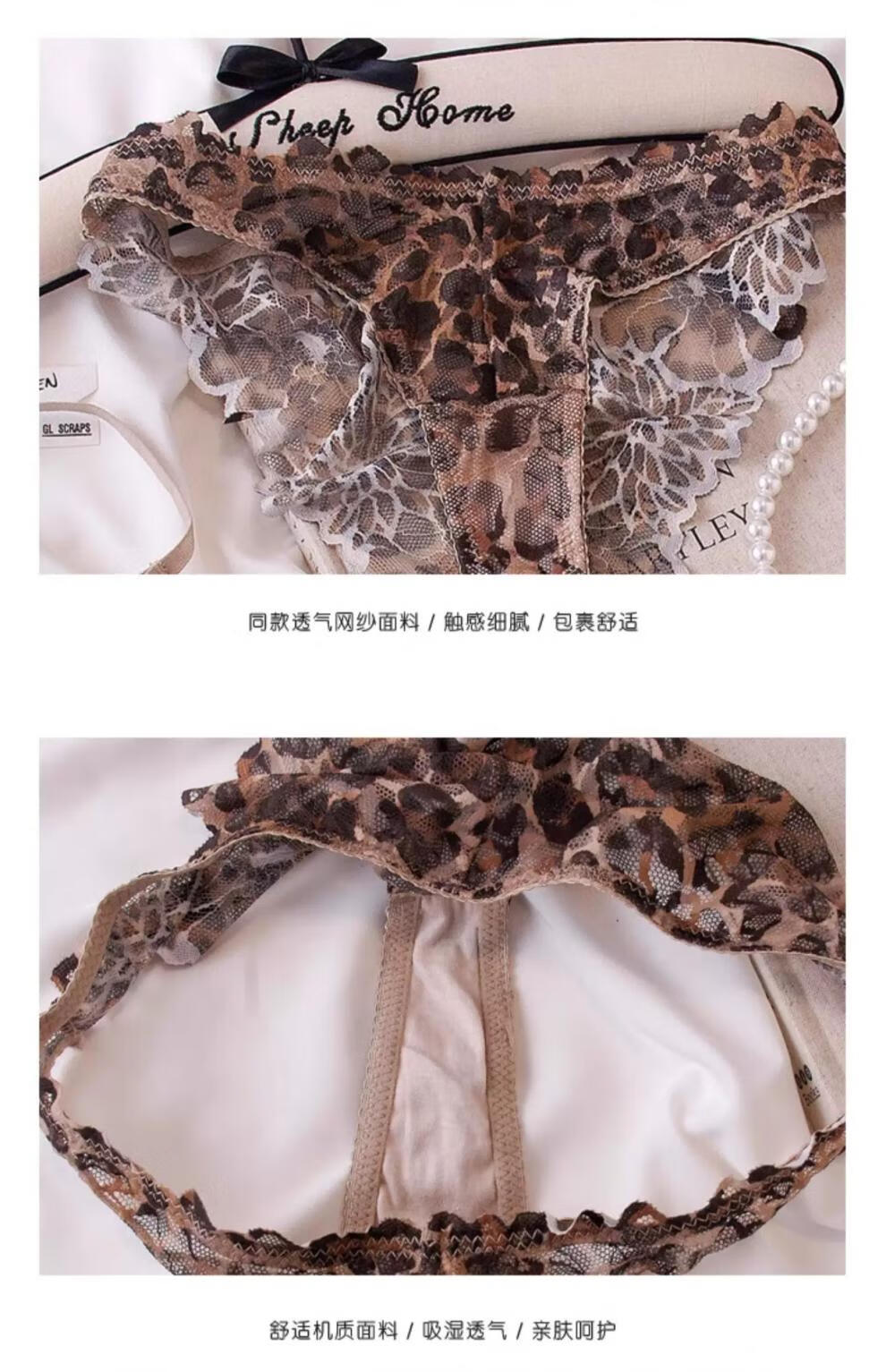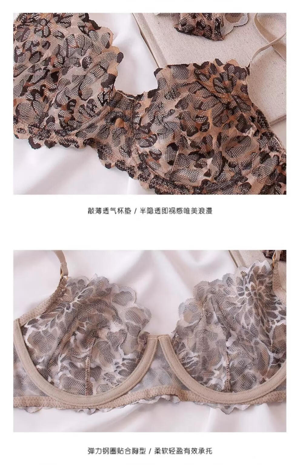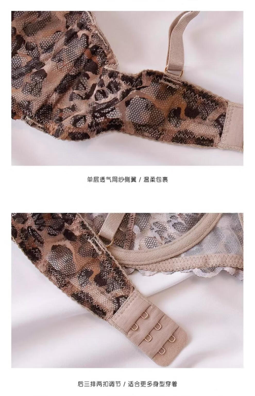 Victoria's style sexy secret sexy French style lace bra set for large breasts to look smaller and prevent sagging for fat mm in large size leopard print M (suitable for 34/75ABC)
