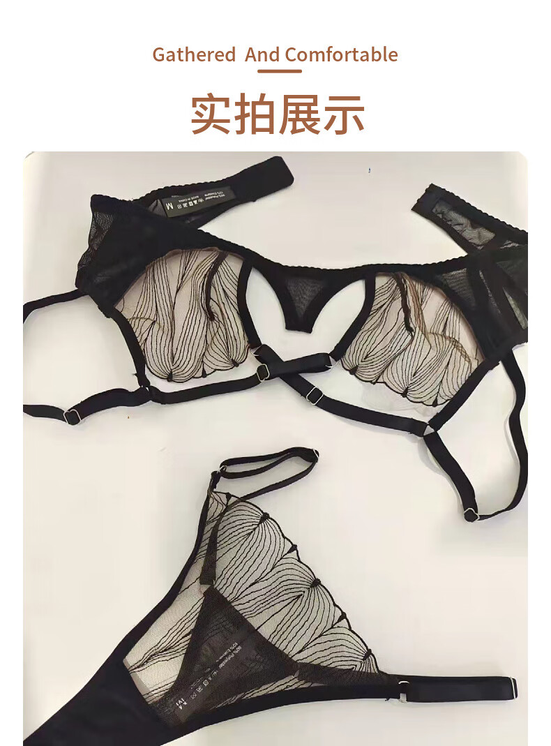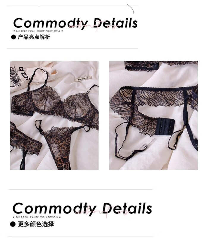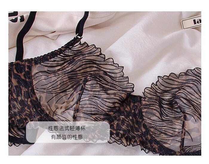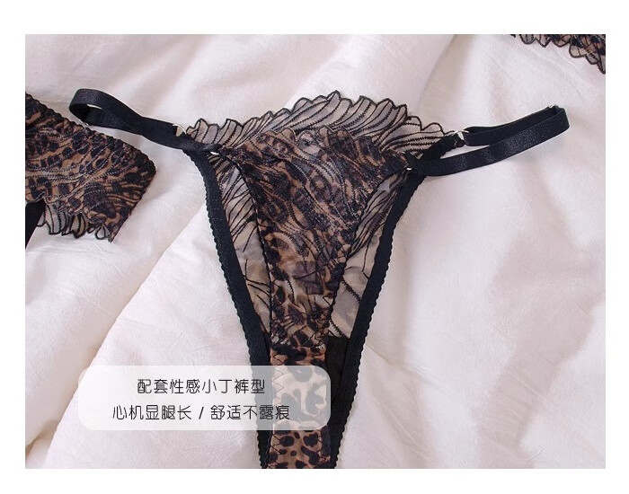 Victoria's style丨Sexy leopard print thong suit with big breasts and large size lace underwear leopard print suit transparent pure desire M (85-105Jin Jin equals 0.5kg) 34/75ABC