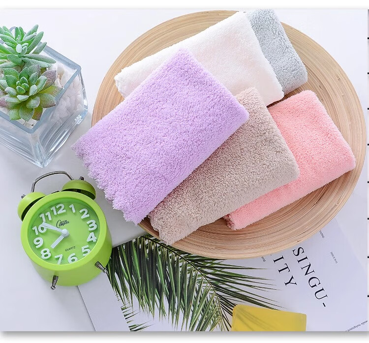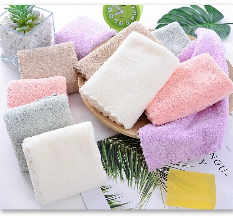 Face towel small coral velvet square small fiber absorbent quick-drying cheap square towel cleaning handkerchief random color 1 pack