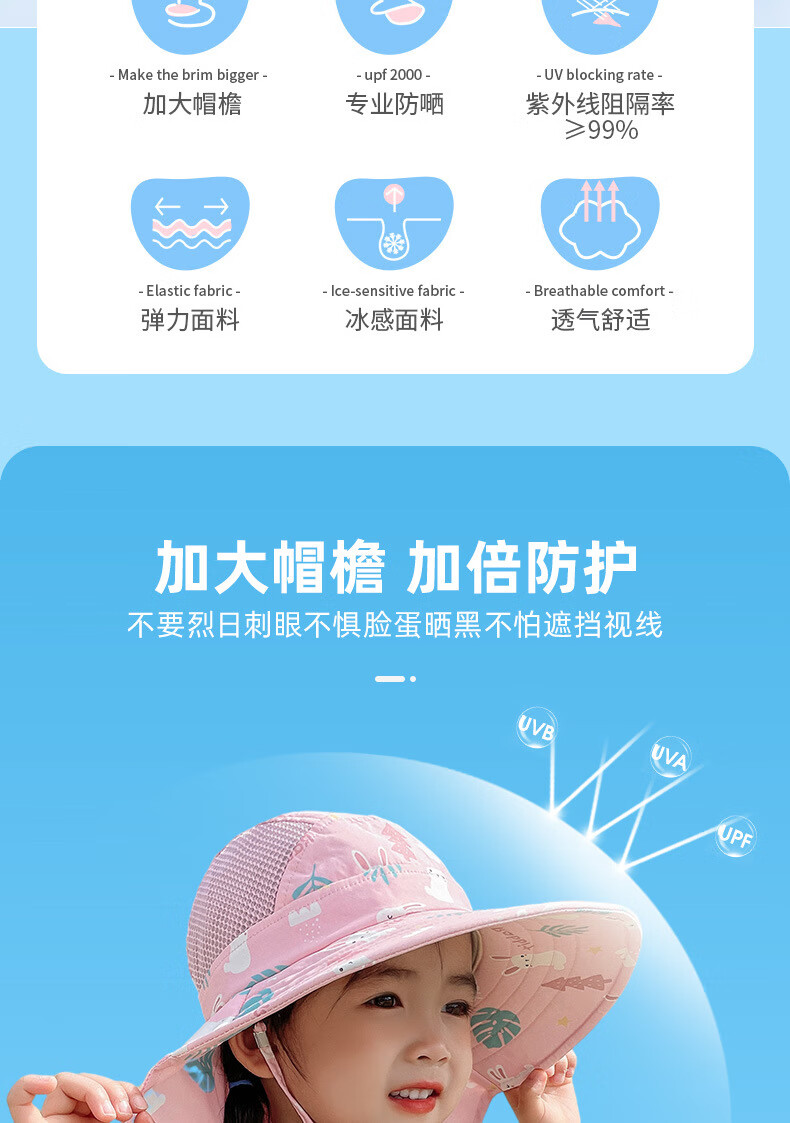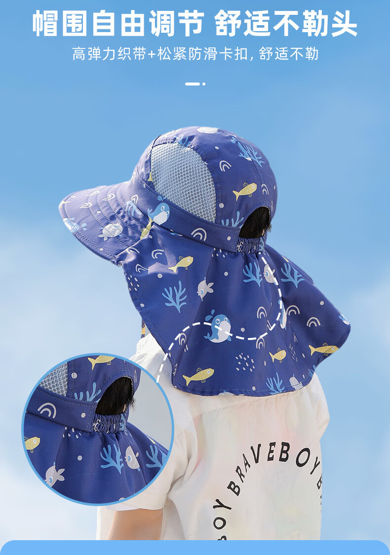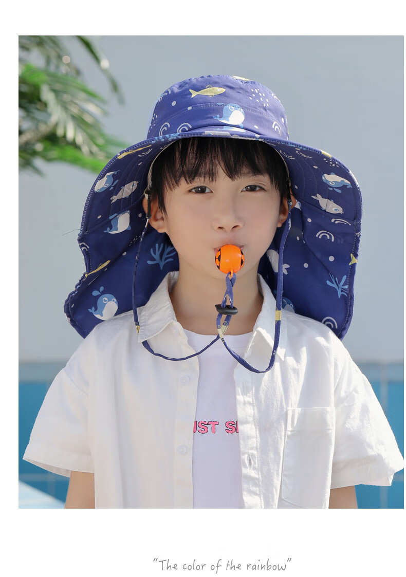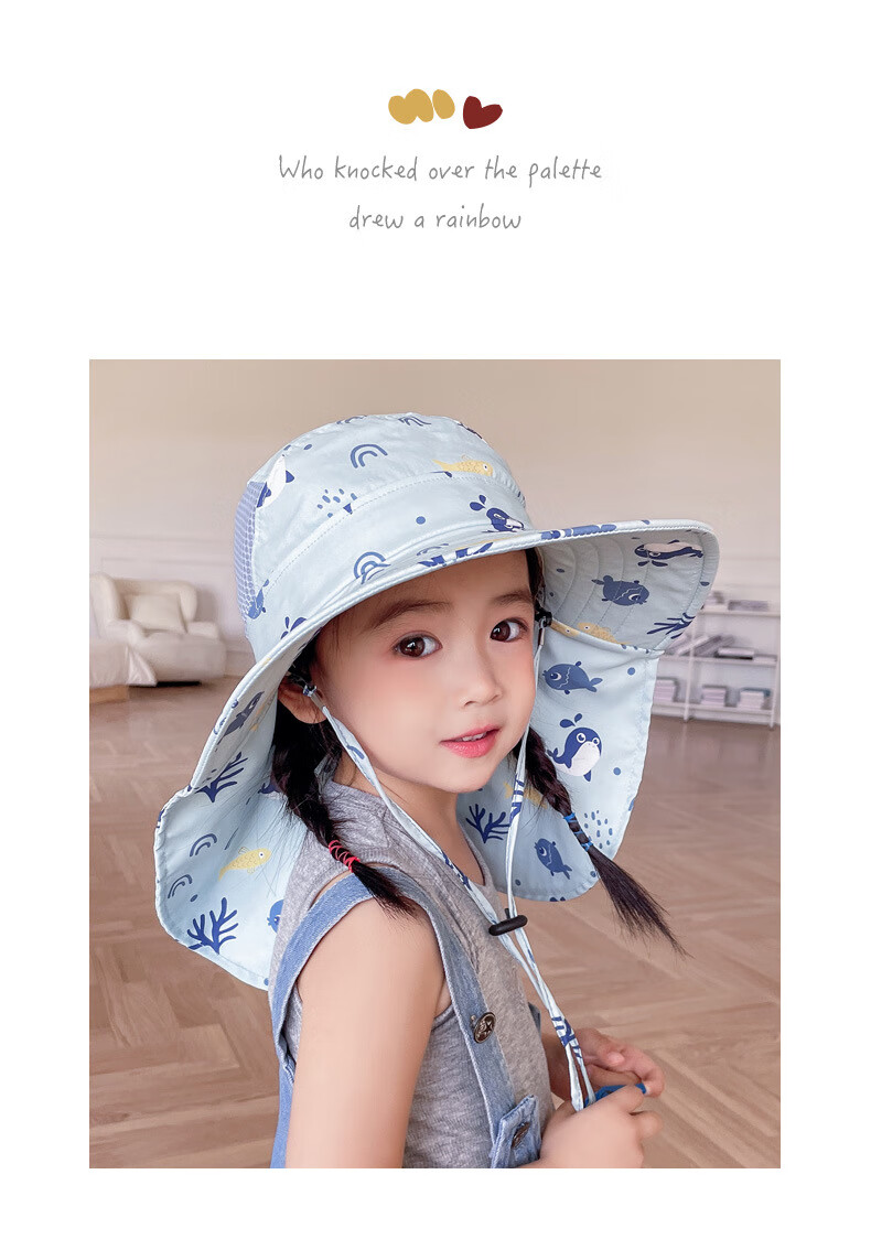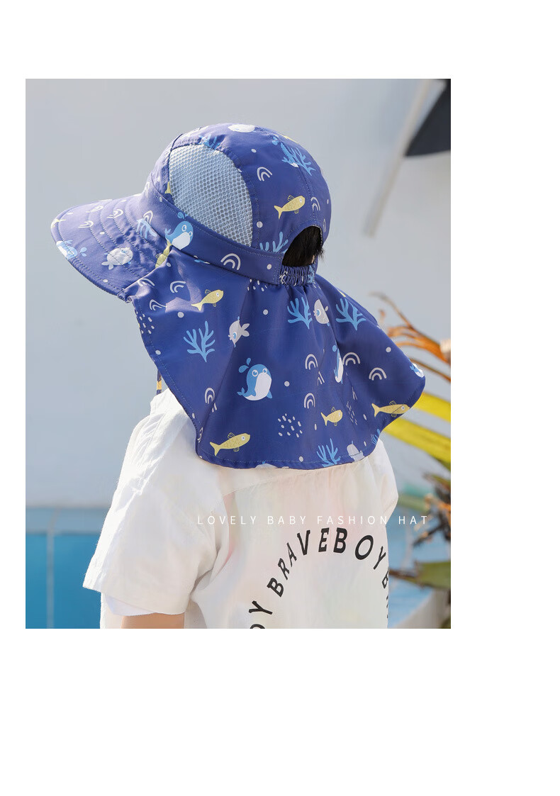 Children's sun protection hat spring and summer new seaside thin big brim breathable fisherman sun hat for boys and girls spring outing sun hat blue