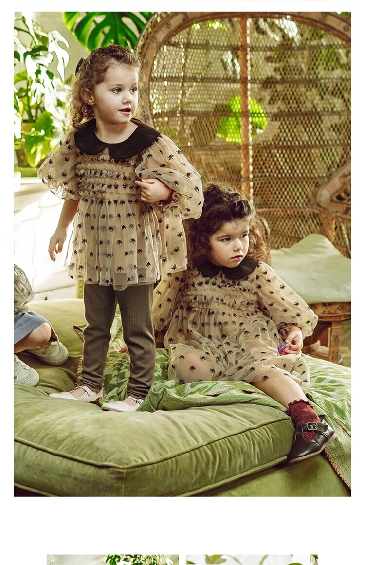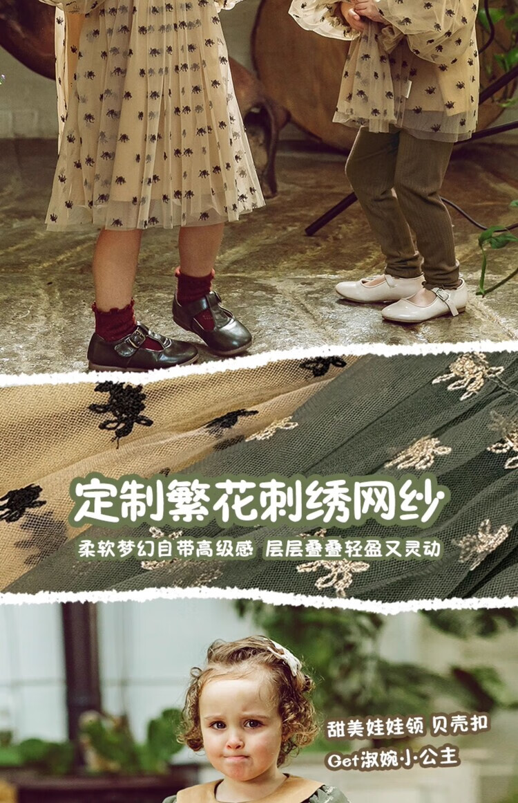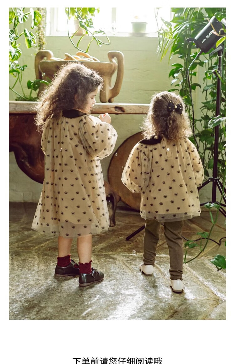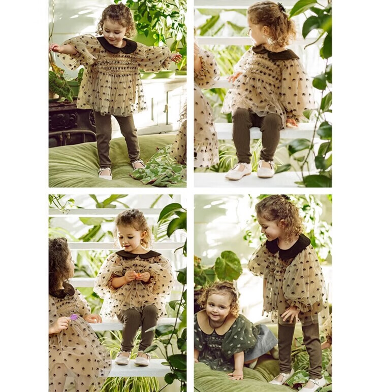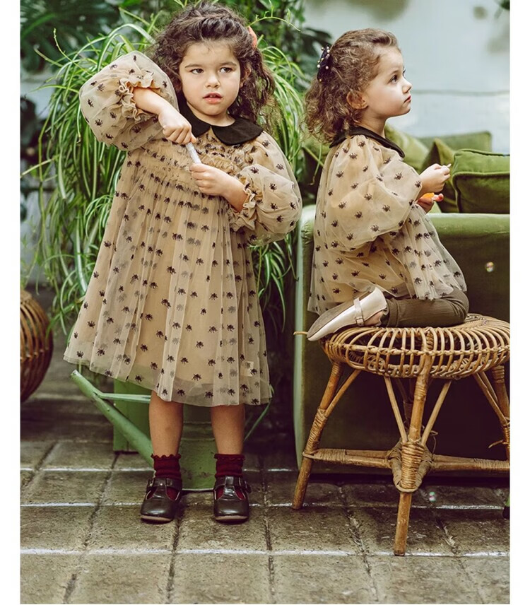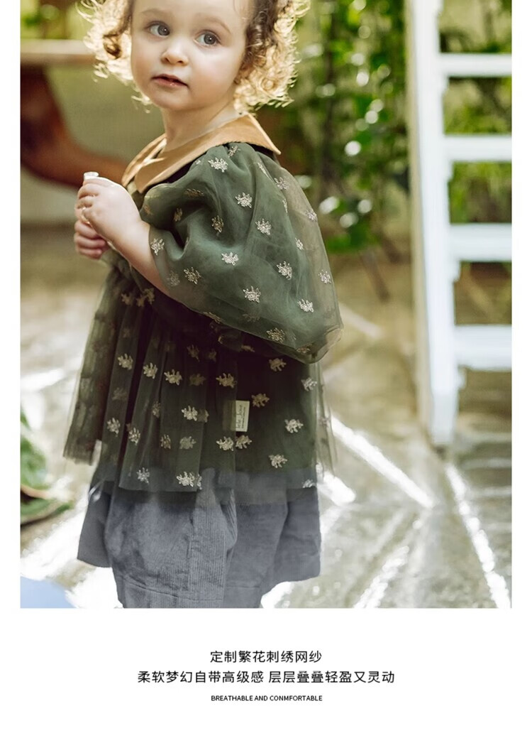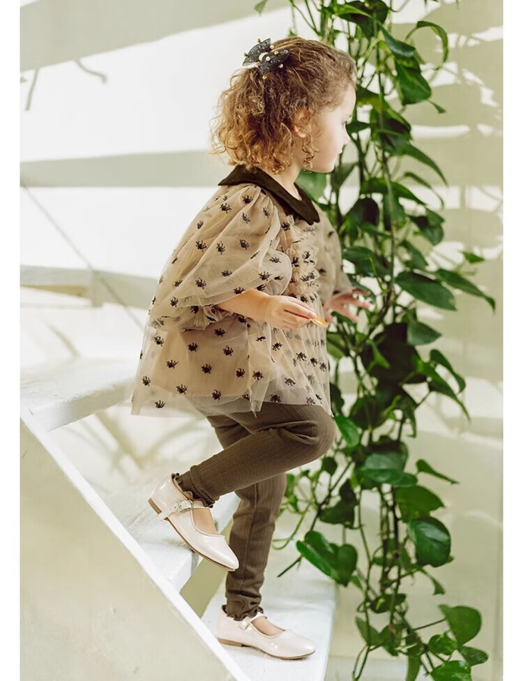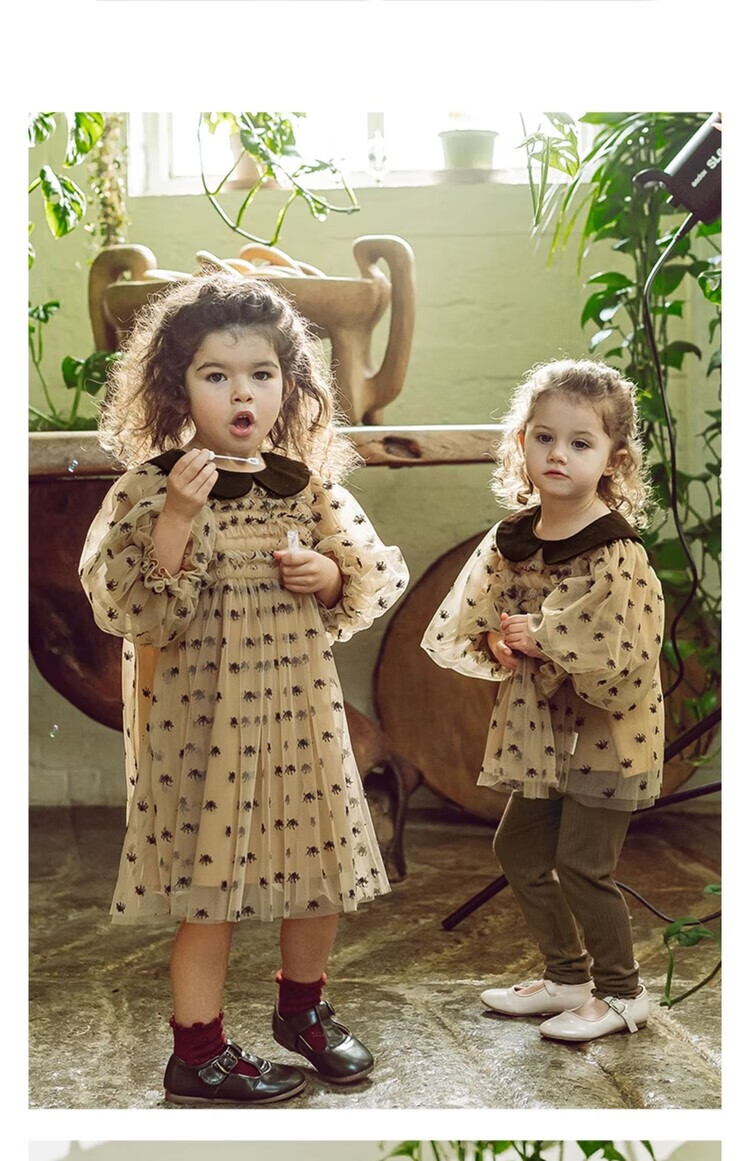 LELE JOV Elelejove Nordic style girls' crew neck shirt spring and autumn style princess mesh top baby girl sweet baby doll shirt light golden brown 90 cm