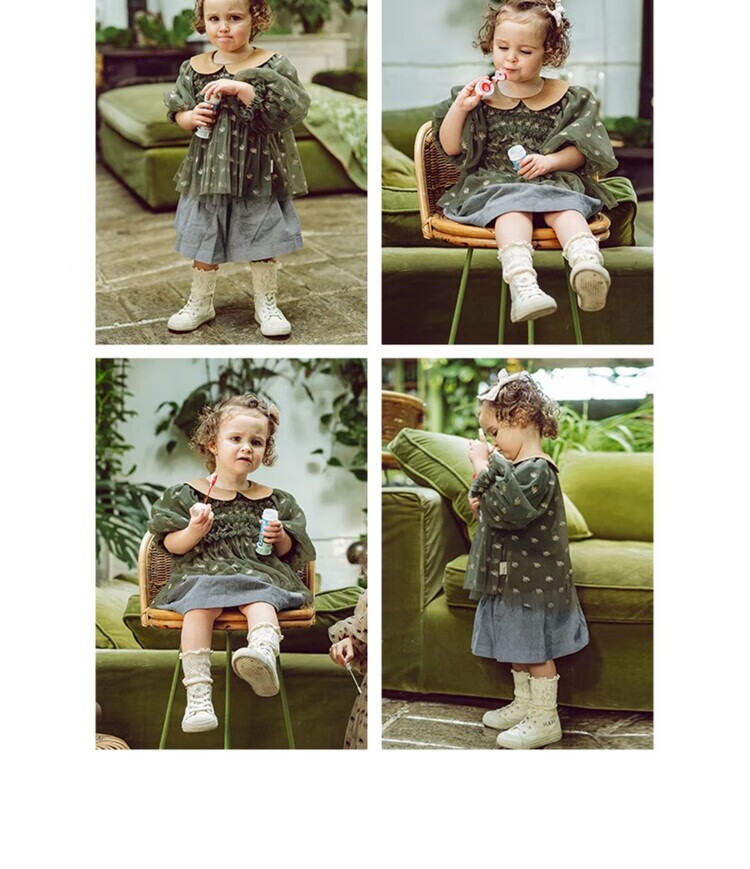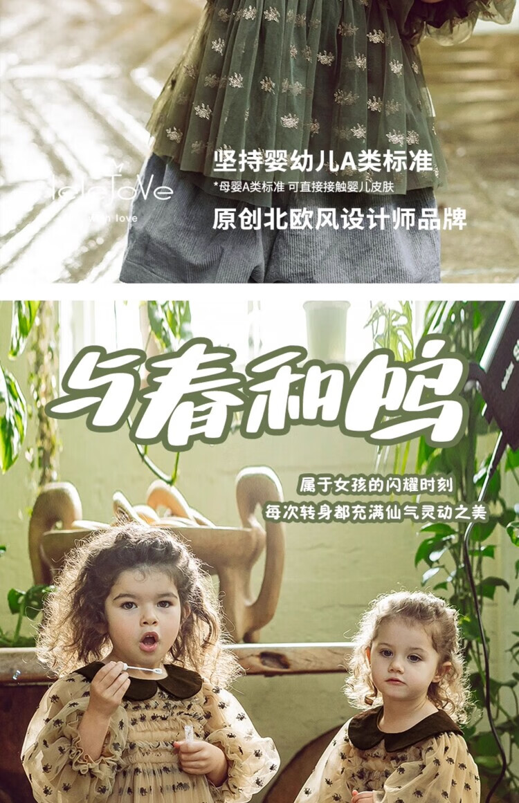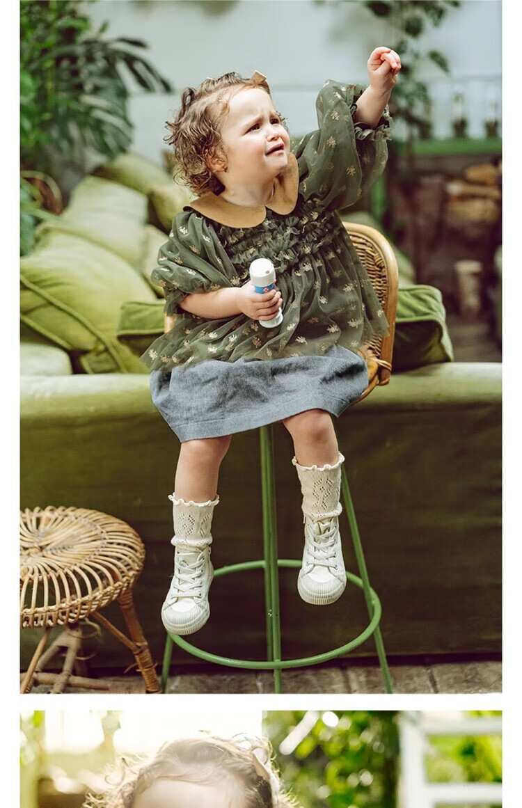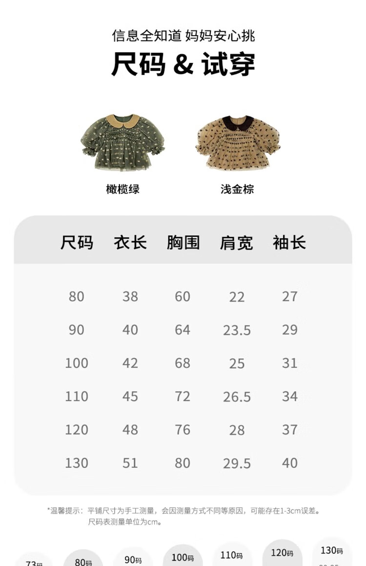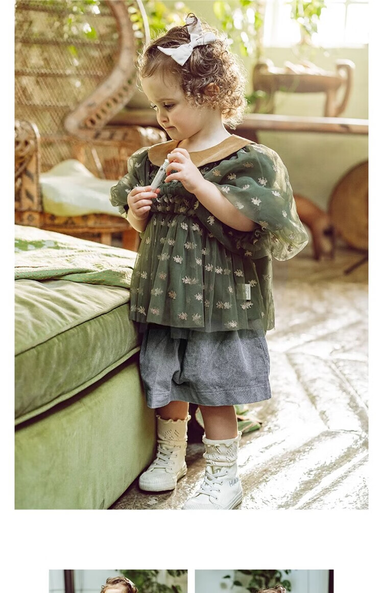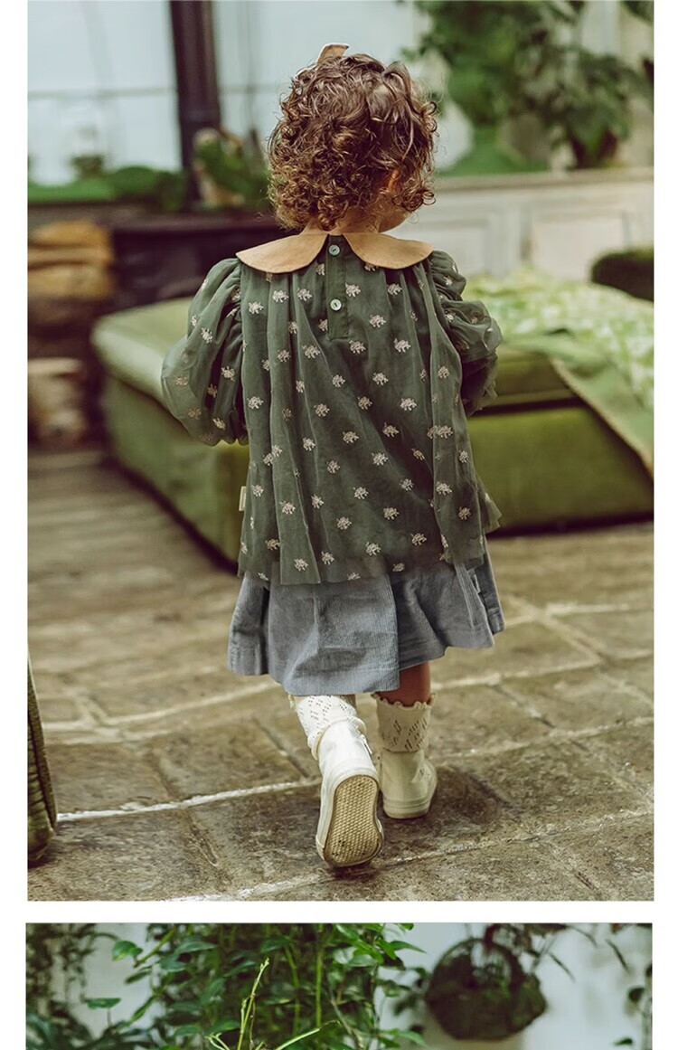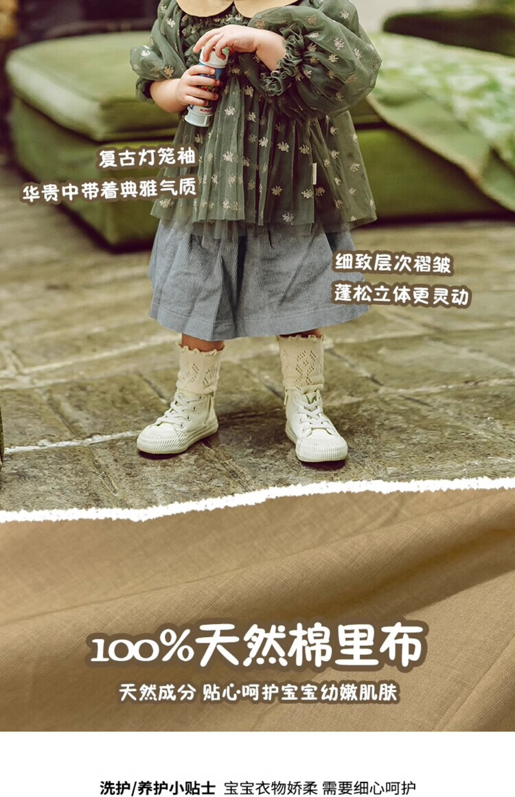 LELE JOV Elelejove Nordic style girls' crew neck shirt spring and autumn style princess mesh top baby girl sweet baby doll shirt light golden brown 90 cm