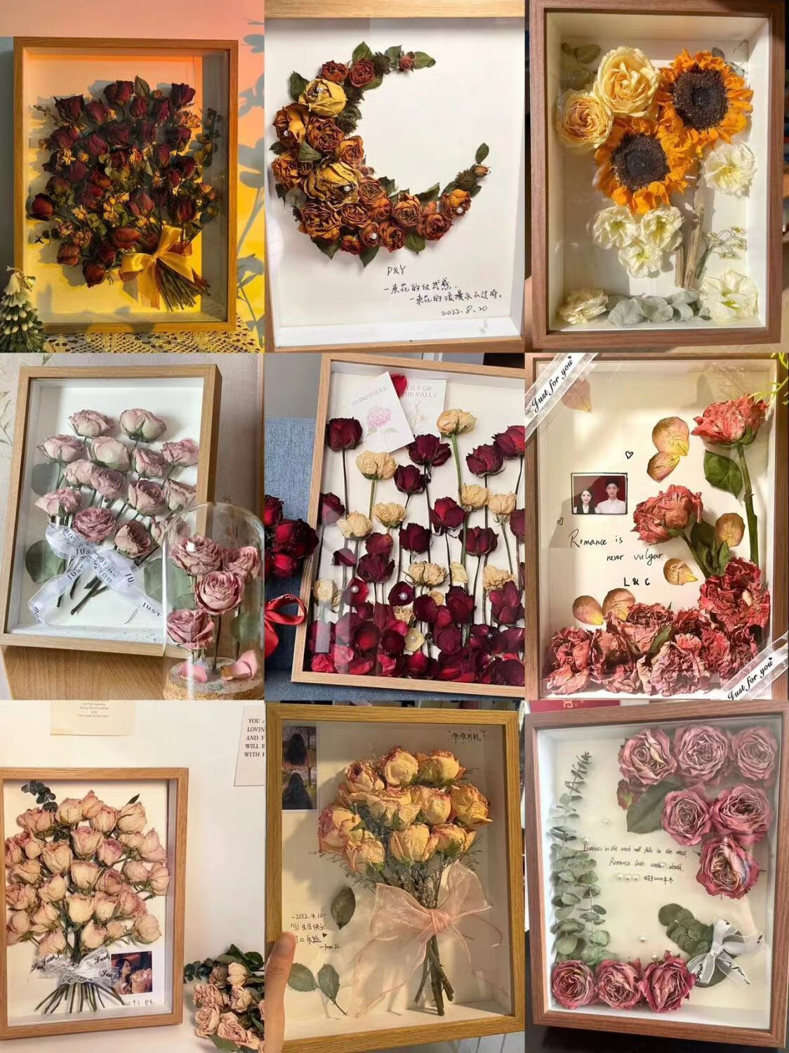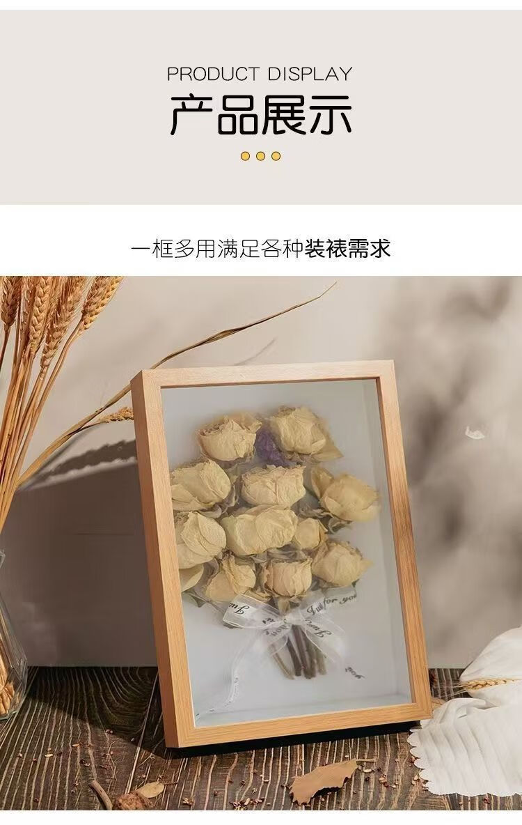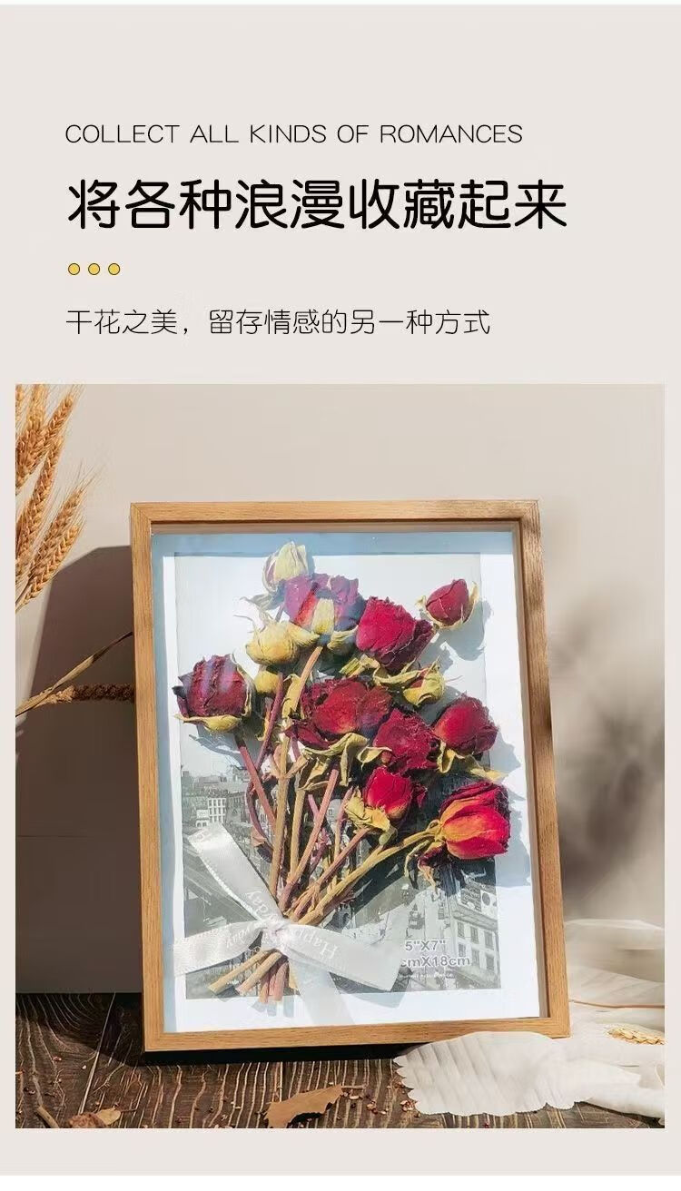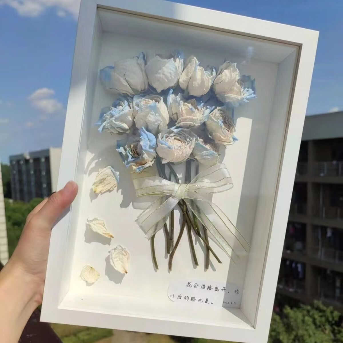 Valentine's Day Gift Hollow Three-dimensional Photo Frame Dried Flower Preservation Handmade DIY Picture Frame Eternal Rose Specimen Setting White + Ribbon + Glue + Backing Paper + Lantern A4 Suitable for 10-20 Flowers