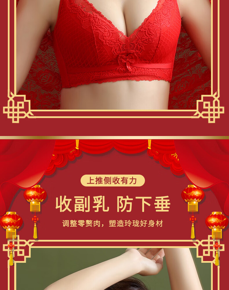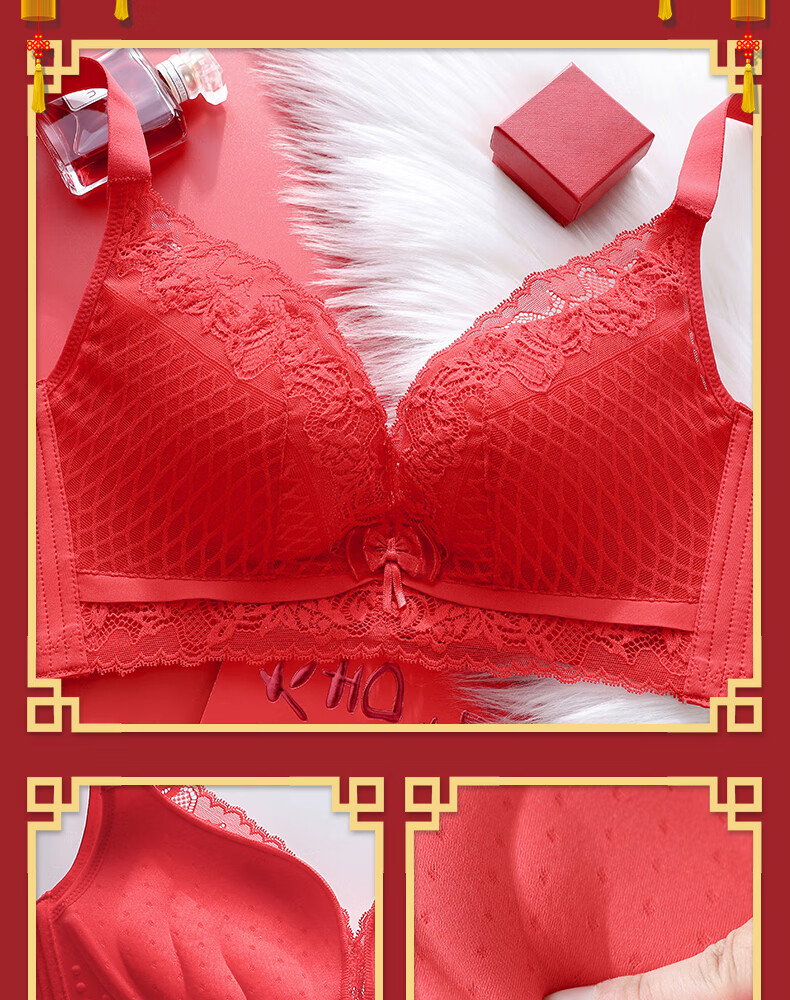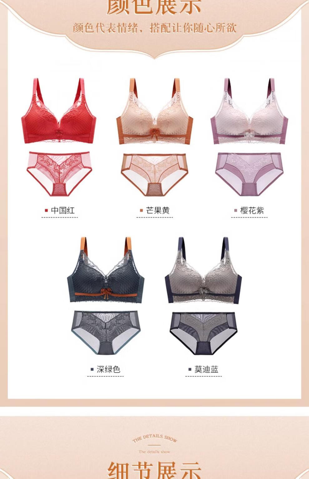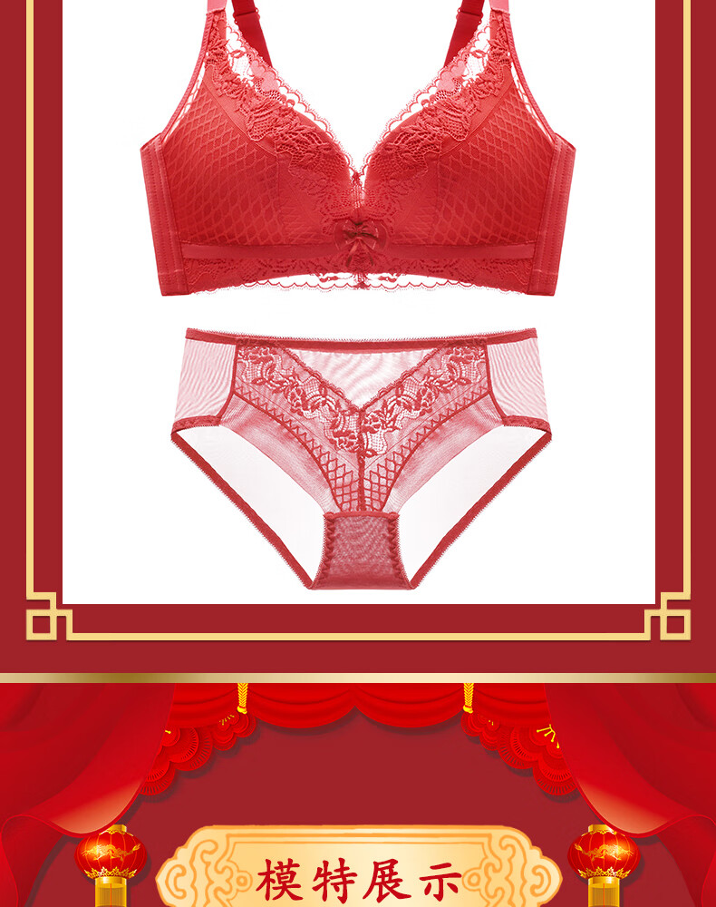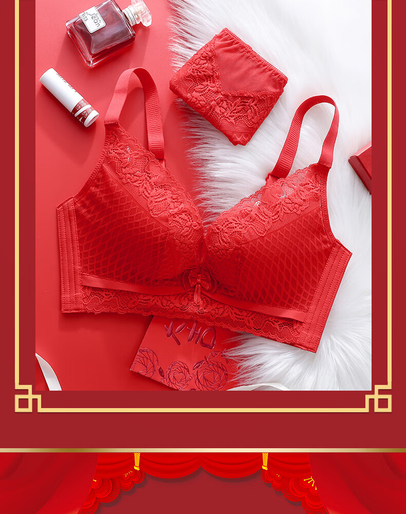 Victoria's style sexy secret red underwear set for women's birth year, small breasts, push-up, no wire underwear bra, multi-color 6812 suit black 80B 36, thickness can be noted